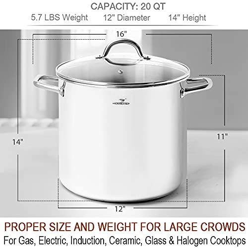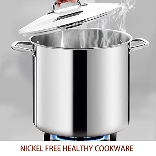 Return Policy Fast Delivery Trusted seller Commercial Grade LARGE STOCK POT 20 Quart With Lid - Nickel Free Stainless Steel Cookware Stockpot 20 Quart - Healthy Cookware Polished Stockpots - Heavy Duty Induction Pot Soup Pot With Lid Product Description THIS 20QT STOCKPOT IS A NECESSARY ADDITION TO YOUR KITCHEN - This large 20QT stockpot features the timeless French kitchen elegance design; cuts a fine figure both in the kitchen and at the dining table - Made of food grade NICKEL FREE stainless steel for better health and better nutrition - 7MM in base thickness and 5.7LBS in weight - Great for boiling lobster, crab, or simmering stocks, soups for large crowds - Discover the gourmet chef in you with this beautiful and efficient stockpot. NICKEL FREE HEALTHY COOKWARE - Made of food grade NICKEL FREE stainless steel, non-toxic, non-allergic & more energy savings. - Japanese standard JYH21CT SS (21/0) for the pot body & the inner base; 430 (18/0) for the outer base - Nickel-bearing stainless steel (e.g., 304 SS) is commonly used for cookware, BUT nickel is high up on the ATSDR list of priority toxins and it LEACHES under regular cooking conditions! - Nickel free stainless steel is also more heat-conductive than nickel bearing SS. QUALITY BUILD & ELEGANT APPEARANCE - Look noble & elegant: mirror polished exterior, matte polished interior, see-through clear tempered glass lid with steam vent, and ergonomical stainless steel handles - These pots are beautifully engineered by 's own in house manufacturing facilities at the world top quality - Compatible with gas, electric, induction, ceramic, glass and halogen stovetops. ADDITIONAL FEATURES - 3-Ply construction in the 7MM thick base (one layer of pure aluminum core sandwiched between two stainless steel layers) eliminates warping and hotspots effectively and ensures optimal thermal absorption and transmission, thus faster cooking and more energy saving - Solid riveted stainless steel handles stay cool on stovetops - Tempered glass lid is specially designed to release excess vapors while efficiently circulating heat & moisture, preserving flavors & nutrients. DEVOTED CUSTOMER SERVICE - Genuine healthy stainless steel cookware products, certified by ISO9001, BSCI, etc. - TRADEMARK filed in U.S.A. - In business since 1998 - This product comes with 1-MONTH full refund trial period & 6-YEAR Warrantv & LIFE-TIME Customer Service - You can always come to us for discounted parts, cooking consultations, and customer service at store on . Shipping Returns Payment Shipping Shipping is FREE to all addresses other than APO/PO boxes in the lower 48 states. All our stock ships from US-based warehouses. Shipped via USPS or UPS (depending on location and package weight) Unless stated otherwise, all orders will ship within 24-72 hours of your payment being processed. Check our feedback to see the great reviews of FAST shipping we offer. Returns Seller does not accept returns Payment We currently accept payment via eBay managed payments only. Once payment is cleared, we will dispatch your shipment within 1-3 business days. Please refer to the "Shipping" tab for more information regarding shipping speed to your destination.