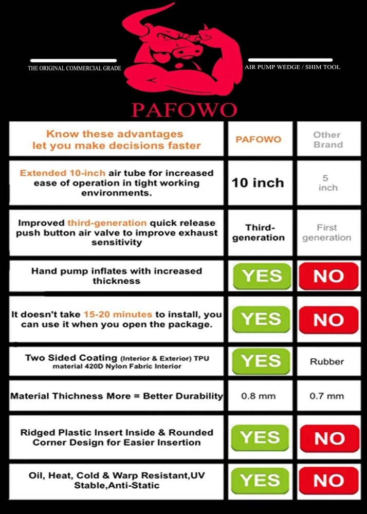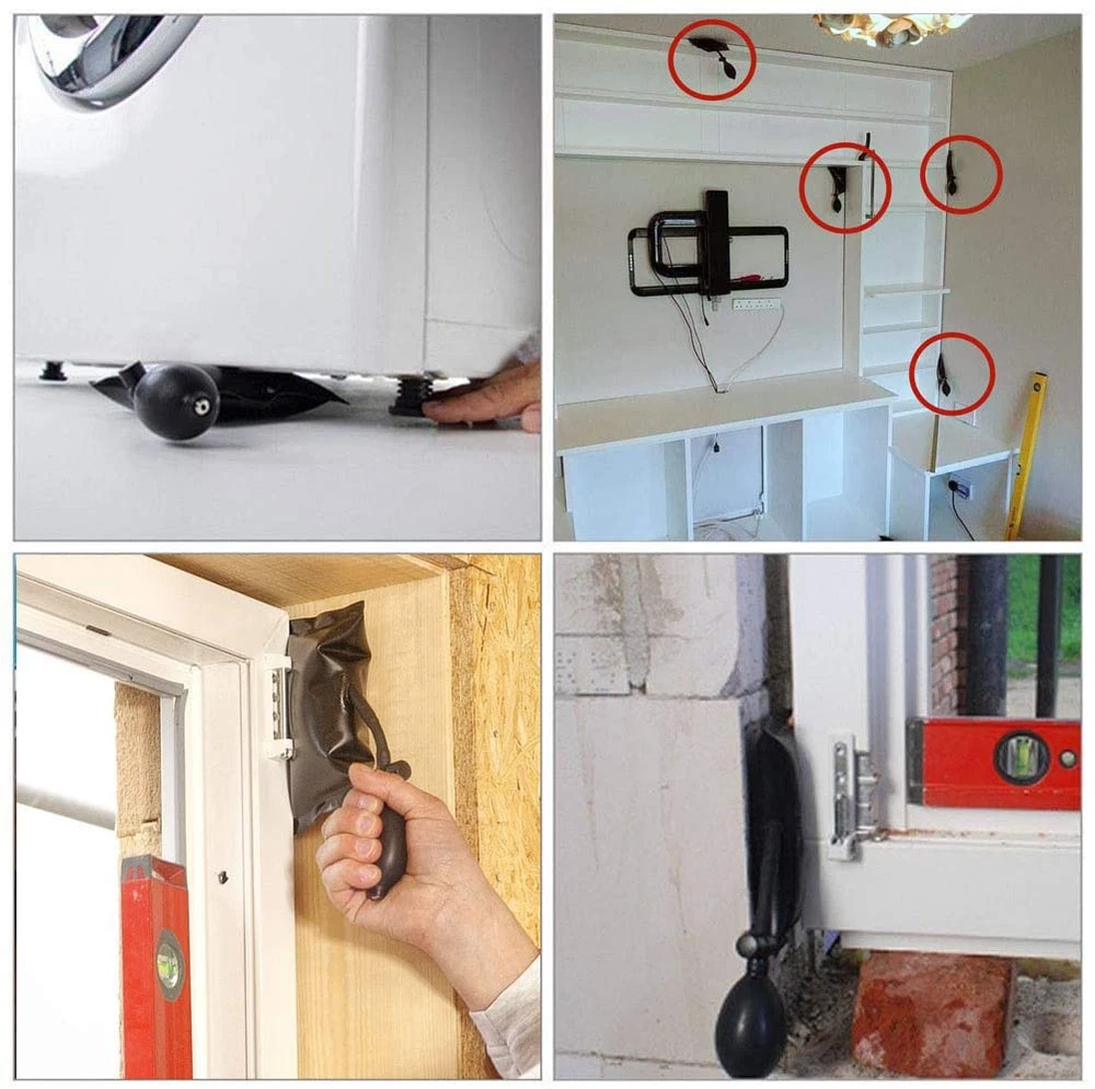 Commercial Grade Air Wedge Bag Pump Professional Leveling Kit & Alignment Tool DESIGN IMPROVEMENT - 300 POUND load rating ↑ Material thickness improved to 0.8mm ↑ Two side coating (interior & exterior)TUP durable material ↑ With rounded corners, stiff durable edges, smooth exterior and INTERNAL STIFFENER for easier insertion ACCESSORY IMPROVEMENT - 2 Piece non scratch pry tool ↑ Hose lengthened to 10 inches ↑ Upgrade the 3rd generation push button air valve, thicker and more durable, precise leveling SAVE TIME,EFFORT - 3 sizes to meet a variety of work needs. Work done by many people may only need one person to complete.A variety of purposes, including moving and adjusting the level of. Air regulate shim for window, cabinet, door, installations, appliances! PROTECT THE MATERIAL - Unlike other tools or wood shim, it will not damage or wear and contact the surface of the object during use. SO MANY USES -- Appliances, Beams, Cabinets, Doors, Equipment, Furniture, HVAC, Plumbing, Joists, Countertop, Mantels, Bathroom Fixtures, Curtain Walls, Flanges, Windows, and more! 7.17 inches x 10.55 inches x 2.68 inches. Weight: 9.6 oz Power Source Handheld Material Rubber Material Type Rubber Item Weight 9.6 ounces Operation Mode Manual