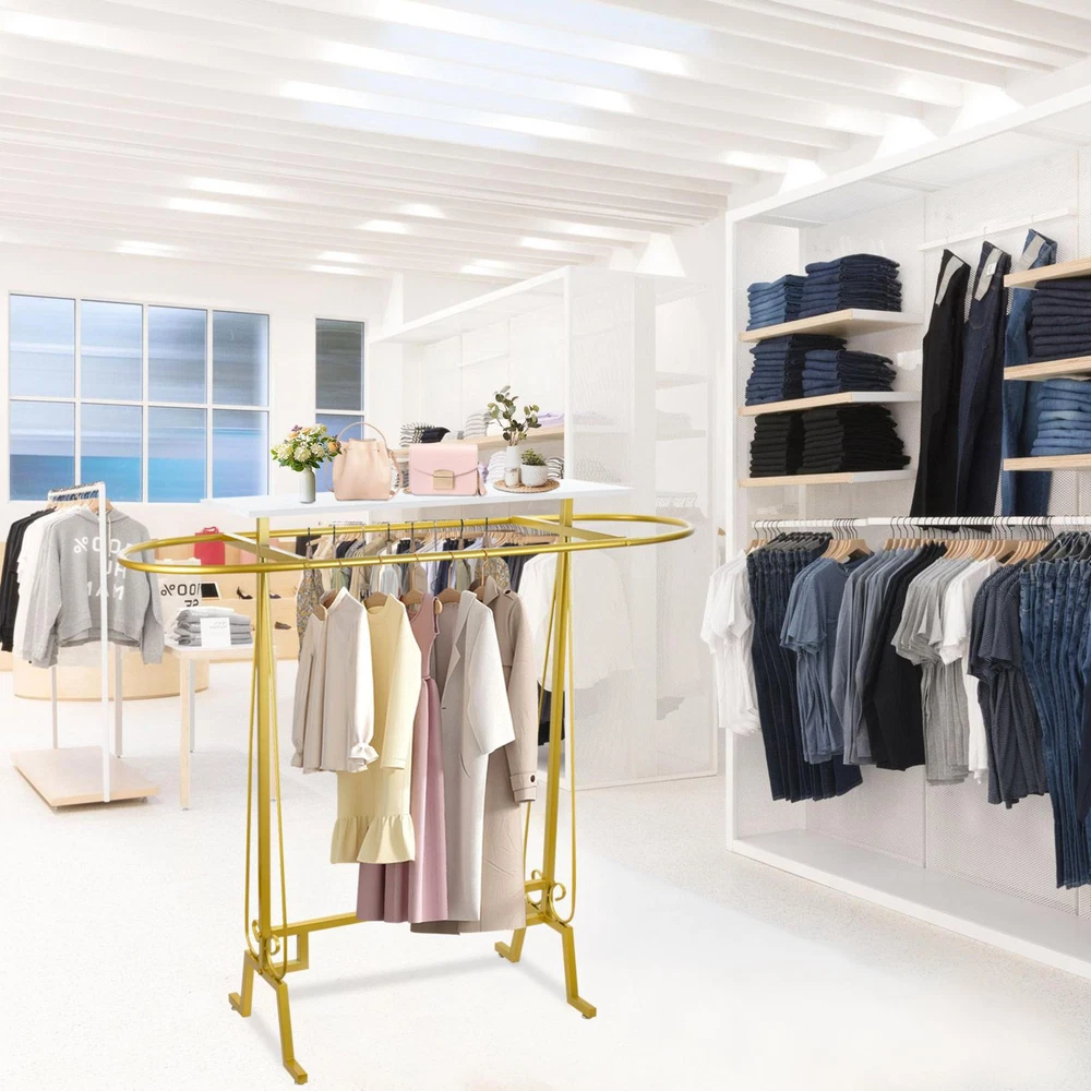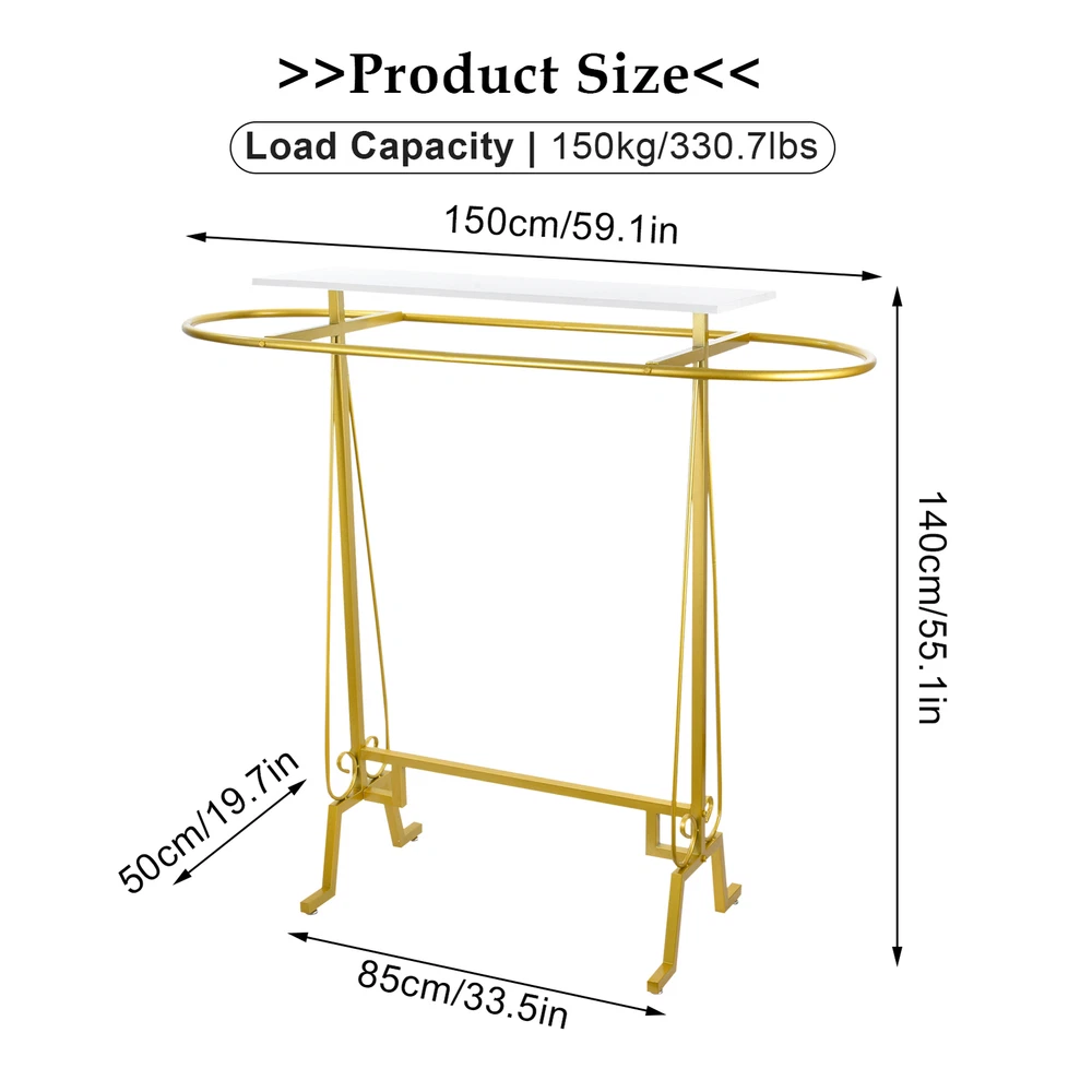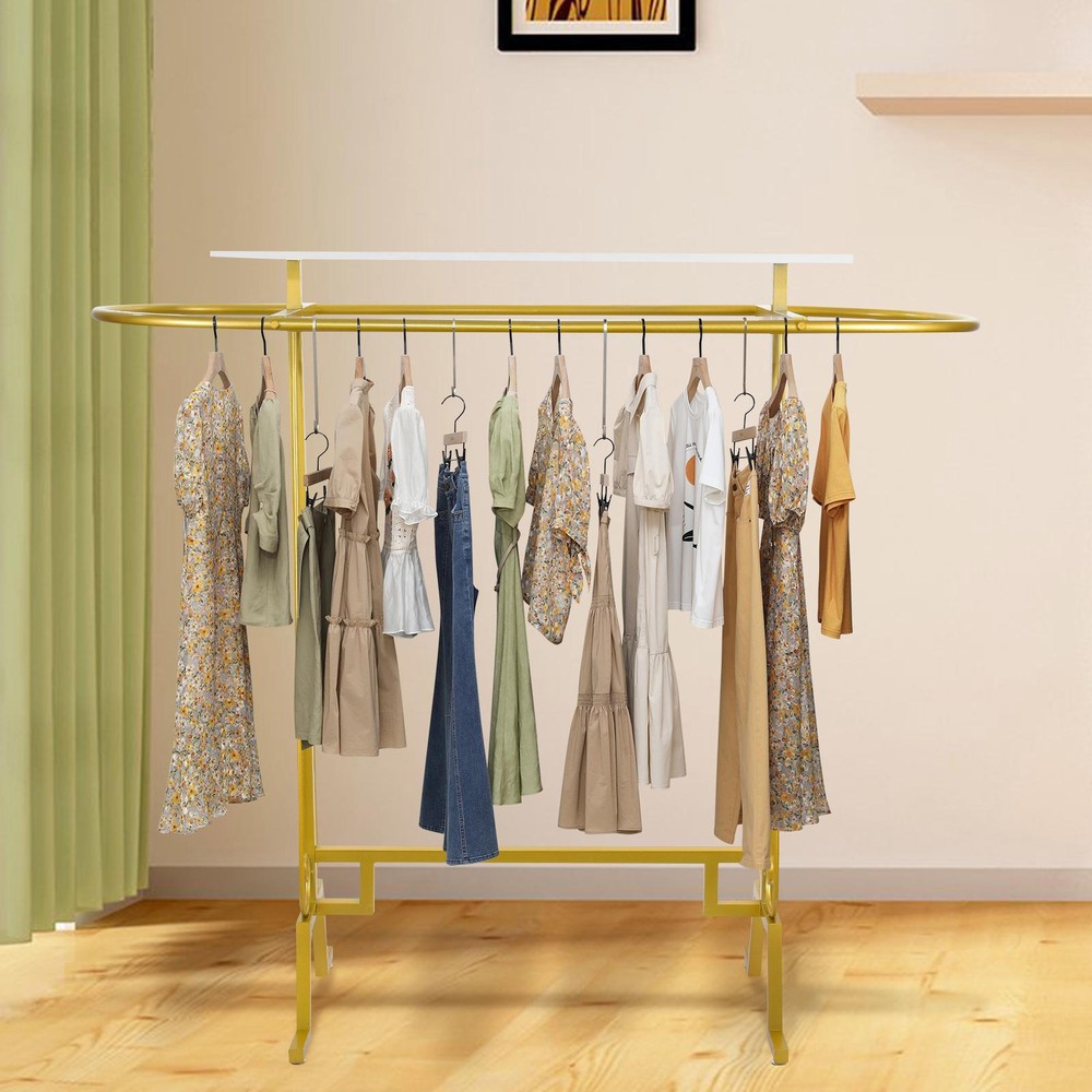 Store category Sign Up Now ! You may also like Product Description Bullet Points: Exquisite Craftsmanship: Prevent hooking and ensure stability with the oval-shaped base and smooth rod surfaces. 4 feet at the bottom provide convenience while moving clothes, eliminating the risk of falling. Expertly crafted for a sleek and polished finish Stable Build: With thick and sturdy galvanized iron support rods, this freestanding clothing rack can easily handle heavy winter garments without losing shape, providing you with a stable storage option Ample Storage: Allow for a multitude of garments with top shelf organization, keeping bags, trinkets, books, plants, and more within reach and in plain sight. Keep your wardrobe accessible effortlessly Broad Applications: This freestanding clothing rack, with its unique shape, is convenient for you to store and take various clothes in daily life, making it suitable for any large shopping malls, retail stores, shopping centers, children's clothing stores, and underwear stores Easy Installation: With the aid of auxiliary tools, punch the board, and tight screws, this freestanding clothing rack can be easily set up, ensuring an easy installation process Organize your retail space with ease using our solid clothes display rack. Featuring smooth and polished rod surfaces, it ensures your garments are clear at a glance and within reach. Tighten the screws for a secure and stable structure. Perfect for retail stores. Specifications: Product name: Clothing rack Product size: about 150x137x55cm/59.06x53.94x21.65 inches Color: Gold Material: Iron Load bearing: 300 pounds/136 kg Purpose: Store clothes Product name: Clothing rack Product size: about 150x137x55cm/59.06x53.94x21.65 inches Color: Black Material: Iron Load bearing: 300 pounds/136 kg Purpose: Store clothes Packing list: Oval connecting rod*1 Side columns*2 Wrench*1 Screws*9 Lower connecting rod*1 Shelf*1 Foot pads*4 Payment Delivery details Terms of sales About us Feedback & DSRs Payment Before you palce an order, please kindly make sure that you have a paypal account. We accept PAYPAL payment only. Payment should be completed within 2 days after auction closed, or unpaid dispute will be filed for an closing auction. An unpaid case will be filled after 4 days. Delivery details We ship to your eBay address. Each package will be shipped to US by UPS Regular Parcel with tracking number. Please check your shipping address carefully before checkout, it can't be changed if order completed. All items will be shipped within 1-2 business day upon receipt of payment.Orders placed on weekend will be shipped within 3 days. If you do not receive your item in 7-10 business days.please contact us immediately for further assistance. We will be responsible for any damages or losses incurred in the shipping process. About us We maintain high standards of excellence FIVE STAR and strive for 100% customer satisfaction! Positive Feedback is very important to us. We hope that you contact us immediately Before you give us neutral or negative feedback, so that we can satisfactorily address your concerns. We promise to offer the lowest price and high quality produce. Our working time: From Monday to Friday(9:30 am to 18:00pm), we don't working on holidays ,hope you can understand and know that , thank you. Please always talk to us via ebay Message. We appreciate your business and look forward to growing our e-Bay sales with satisfied customers. Feedback Contact us If you have any questions, please feel free to contact with us by ebay Message during our business hours ( 9:30a.m. to 5:30 p.m.), or email us through eBay, we will try our best to help you to resolve it. For any presale or after-sale questions,please do feel free to email us! Due to the time difference, each email will be replied within 1 working day,and weekend will be delayed a bit. Feedback