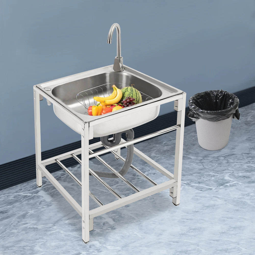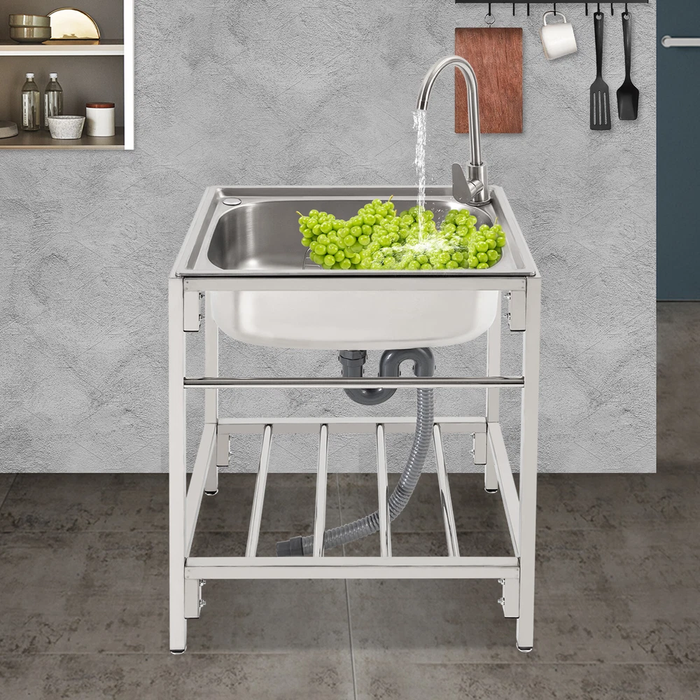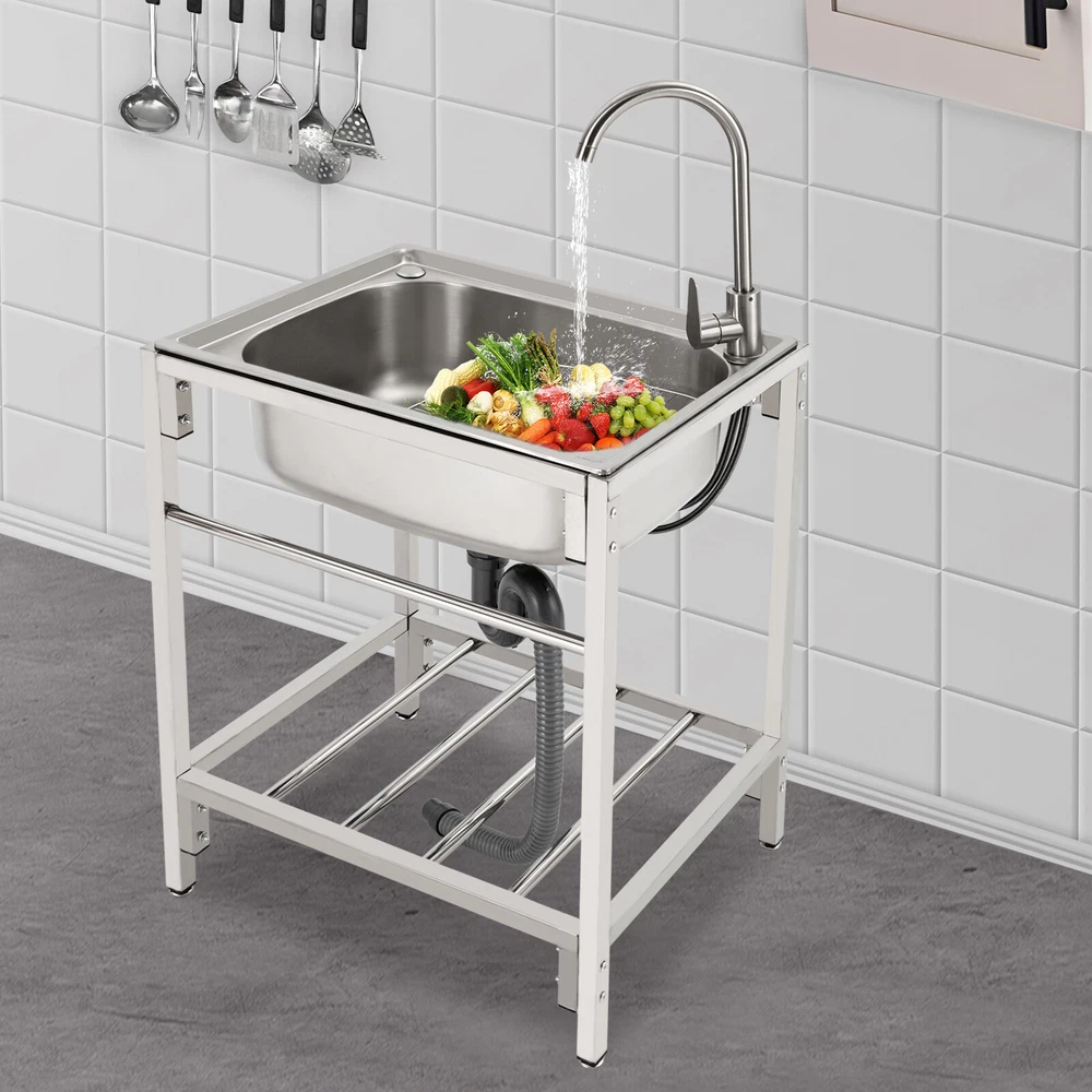 Specification Color: Silver Style: Single Bowl Basin Sink Installation Method: Freestanding Material: 202 Stainless Steel Surface Treatment: Brushing Process Processing: Integrated Molding Sink Countertop Weight Capacity: 100kg/ 220.46lbs Shelf Weight Capacity: 20kg/ 44.09lbs Sink Size: 53*38*19cm/ 20.8*14.9*7.5in Product Size: 60*45*75cm/ 23.6*17.7*29.5in Package Size: 77*48*28cm/ 30.31*18.9*11.02in Net Weight: 9.5kg/ 20.94lbs Gross Weight: 11kg/ 24.25lbs Package Included 1* Sink 1* Cold & Hot Tap 1* Sewer Pipe 1* Filter Carrycot 1* Thickened Lower Outlet 1* Drain Bracket 1 Set* Bracket 1 Pair* Gloves 2* Water Pipes 2* Angle Valves Other Needed Accessories Commercial Single Bowl Stainless Steel Hand Wash Sink Basin Freestanding &Faucet Description This freestanding single basin sink is the ideal cleaning aid for washing fruits and vegetables, clothes, dishes, and cookware. It has a 7.5in deep sink for a large number of cleaning tasks at once. Its raised countertop design prevents spills from wetting your clothes. The silencing pad at the bottom of the sink can reduce the sound of water impacting the metal sink, providing you with a good cleaning environment! Application This freestanding single basin sink is suitable for cleaning food, fruits, and vegetables, and any kitchen, bar, restaurant, dessert shop, clean room, cafeteria, garage, or any other business place. This will be a very useful piece of equipment when you barbecue in the backyard or garden. Specification Color: Silver Style: Single Bowl Basin Sink Installation Method: Freestanding Material: 202 Stainless Steel Surface Treatment: Brushing Process Processing: Integrated Molding Sink Countertop Weight Capacity: 100kg/ 220.46lbs Shelf Weight Capacity: 20kg/ 44.09lbs Sink Size: 53*38*19cm/ 20.8*14.9*7.5in Product Size: 60*45*75cm/ 23.6*17.7*29.5in Package Size: 77*48*28cm/ 30.31*18.9*11.02in Net Weight: 9.5kg/ 20.94lbs Gross Weight: 11kg/ 24.25lbs Package Included 1* Sink 1* Cold & Hot Tap 1* Sewer Pipe 1* Filter Carrycot 1* Thickened Lower Outlet 1* Drain Bracket 1 Set* Bracket 1 Pair* Gloves 2* Water Pipes 2* Angle Valves Other Needed Accessories Key Features Large Capacity Sink : The size of the sink is 20.8*14.9*7.5in to allow you to complete a large number of cleaning tasks and accommodate many pots and pans at one time, making it very suitable for commercial use. Layered Filtration : Its filter carrycot is capable of layered filtration of sewage to prevent the problem of clogged downspouts caused by larger objects falling into the sink, making it easy for you to use. Farewell to Drip : We provide you with a drain basket. When you have cleaned the dishes, you can put them into the drain basket. When the water drips out, you can collect them again, and you will have a cleaner kitchen! Low Noise : The bottom of the sink is equipped with a silencing pad, which can effectively reduce the noise when the water hits the metal sink, providing you with a quieter cleaning atmosphere. Convenient to Use : It adds extra storage space at the bottom for you to put things like detergent, dishwashing basins, and vegetable baskets that you will use frequently for your daily use. And its faucet can rotate 360 ° to facilitate your cleaning. High Load-bearing Capacity : Its bracket is fixed with screws, which is more stable, making its sink countertop hold up to 220.46lbs, and bottom shelf hold 44.09lbs of items. Such a strong load-bearing capacity allows you to use it with confidence. Customer-friendly : There is a pair of gloves in the package to provide you with the safest and most convenient service. High-quality Material : It is made of high-quality 202 stainless steel, free of lead, durable, non-toxic, and harmless so that you can rest assured of long-term use. Easy to Clean : The sink has a brushed finish and is designed with R-conners, which makes the sink smooth, not easy to get oil and scale, and easy to clean. Easy Installation : This freestanding single basin sink has a simple structure and complete accessories, so you can easily install it in a short time. Customer Service : We aim to provide quality products and services. If you have any problems, please feel free to contact us. We will reply and solve the problem for you as soon as possible. Details Raised Sink Countertop : Its countertop is raised to effectively prevent water from splashing out and wetting your clothes when washing dishes. Firm Sewer : Its sewer is embedded with steel wire, which is not only hard to break, but also prevents insects and rats from biting, thus prolonging its service life. All Steel Drainage : Its drainage system is made of all steel, making it durable and not easy to rust or smell, so you can use it with confidence. Brushing Process : Its surface is treated with a brushing process, which not only makes it more metallic but also enhances its ability to prevent corrosion, mold, and rust. Integrated Molding : This freestanding single-basin sink adopts an integrated molding process, which makes it durable without cracks. Notes Please allow the slight color difference caused by the shooting light and 1-3 cm error due to manual measurement, and make sure you do not mind before ordering. Payment Delivery details Terms of sales About us Contact us Payment We accept ebay payment 。 Fees such as import duties, taxes are not included in the item price or shipping costs. These charges are the buyer's responsibility. Delivery details Shipping: 2-9 working days to: USA Terms of sales We maintain high standards of excellence and strive for hundred percent customer satisfaction. Feedback is very important to us. We hope that you contact us immediately before you give neutral or negative feedback, so that we can address your concerns. It is impossible to address issues if we do not know about them! About us Your satis faction is our ultimate goal. We work hard to earn your trust and future business. Our certified technicians have tested each item before shippin