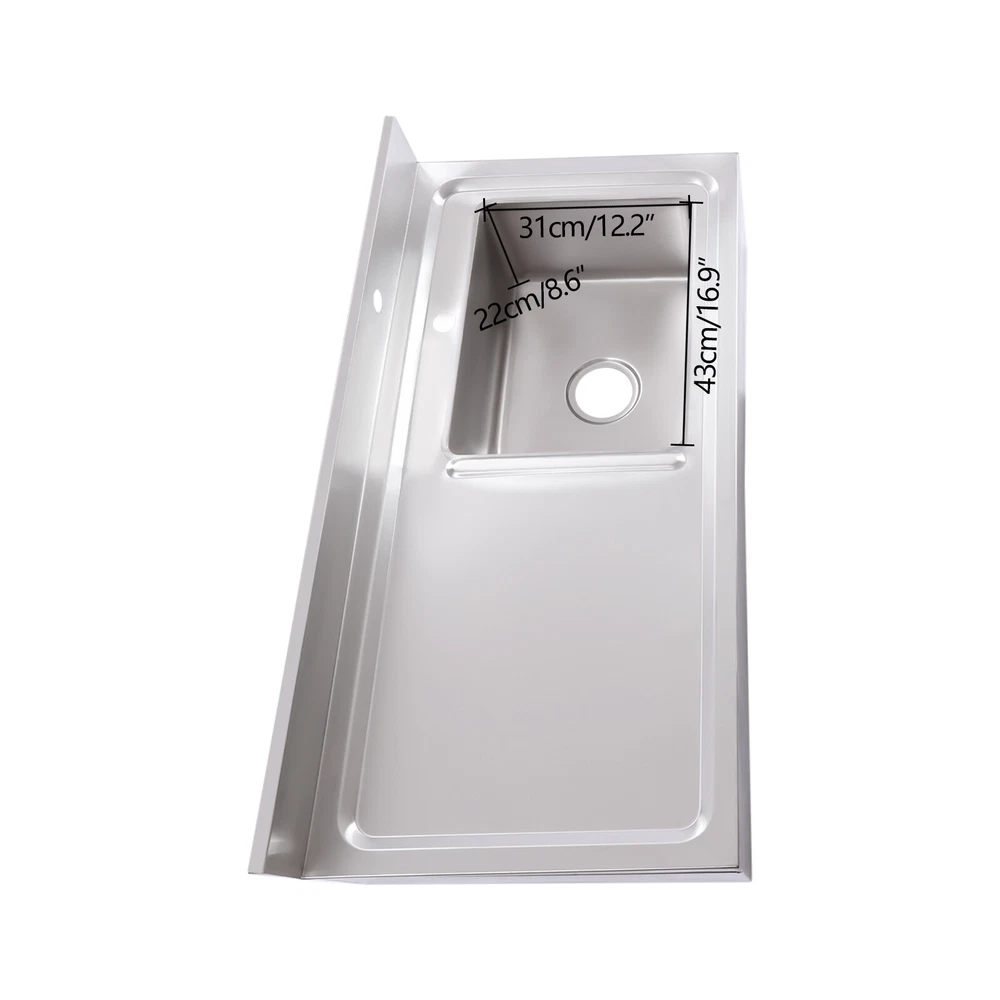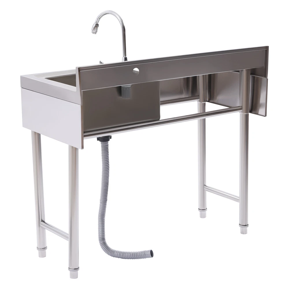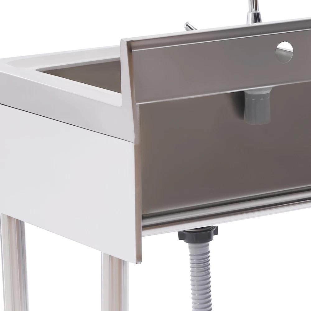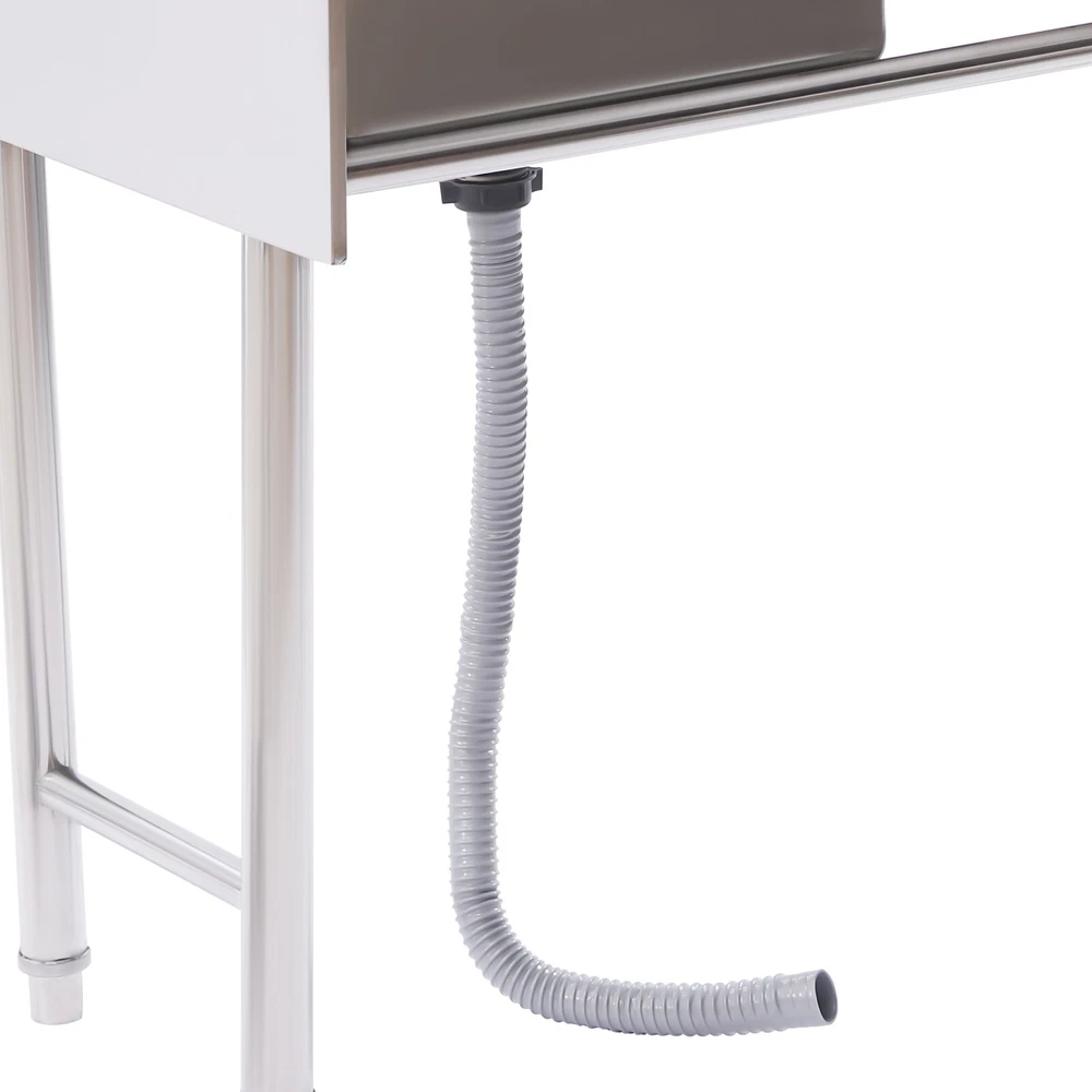 Description This is a good cleaning assistant for commercial premises. Its spacious and sturdy worktop provides you with plenty of storage and workspace. The wider and deeper sink gives you a capacity of about 7.66 gallons to handle large amounts of cookware, vegetables, and fruits. With its smooth, shiny finish and simple construction, it will make a stylish and sophisticated kitchen. Specification Material: 201 Stainless Steel, Plastic, Nylon Color: Silver Number of Sink: 1 Shape: Rectangular Process: Polishing, Welding, Cutting, Wire Drawing Installation Method: Freestanding Faucet Adjustable Angle: 360° Temperature Control Type: Hot and Cold Dual Control Max. Load-bearing Capacity: 150-200kg/330-440lbs Package Size: 102x52x38cm/40.15x20.47x14.96in Product Size: 100x50x80cm/ Commercial Sink Stainless Steel Kitchen Utility Sink 1 Compartment & Prep Table Description This Is a Good Cleaning Assistant for Commercial Premises. Its Spacious and Sturdy Worktop Provides You with Plenty of Storage and Workspace. the Wider and Deeper Sink Gives You a Capacity of About 7.66 Gallons to Handle Large Amounts of Cookware, Vegetables, and Fruits. with Its Smooth, Shiny Finish and Simple Construction, It Will Make a Stylish and Sophisticated Kitchen. Detail Stainless Steel Feet : the Four Stainless Steel Feet on the Bottom Provide Good Support for the Commercial Stainless Steel Sink. and the Support Feet Feature a Removable and Adjustable Design That Is Not Only Easy to Assemble and Disassemble but Can Be Adjusted (1.18-1.96in) at Will to Fit Different Floors. Enlarged Worktop : the Enlarged and Smooth Worktop Is Convenient for Placing Many Dishes and Clothes and Can Also Be Used for Cutting Pork Chops, Steaks, Etc. Recesses : the Recesses of the Countertop Can Prevent Water from Overflowing and Getting Wet Clothes, Which Is Very Thoughtful. Thicker Cross Bars : the Sink Is Equipped with Several Thicker Cross Bars to Increase the Weight-bearing Capacity of the Product. Drainage Port : the Drainage Port Is Made of High-quality Stainless Steel, Which Is Corrosion-resistant and Rust-free. the Stainless Steel Drainage Spout Extends the Life of the Product. Filter : the Drainage Outlet Is Equipped with a Filter, Which Can Effectively Filter and Prevent Clogging. Drainage Pipe : the Drainage Pipe's 1.25-Inch Enlarged Diameter Makes Drainage Quick and less Likely to Clog. Its 23.62-Inch Length Is Convenient for Installation and Drainage. High-quality Inlet Pipe : the Inlet Pipe Is Made of High-temperature and Wear-resistant Nylon, Which Is Very Safe and Durable. Water Catch Hole : the Splash Guard Is Equipped with a Water Catch Hole for Easy Connection of Water Pipes. Application This Commercial Stainless Steel Sink Is Suitable for Use in Restaurants, Canteens, Snack Bars, and More. with Its Large Capacity, Easy Cleaning, and Corrosion Resistance, It Is a Great Addition to Any Kitchen or Laundry Room. Specification Material: 201 Stainless Steel, Plastic, Nylon Color: Silver Number of Sink: 1 Shape: Rectangular Process: Polishing, Welding, Cutting, Wire Drawing Installation Method: Freestanding Faucet Adjustable Angle: 360° Temperature Control Type: Hot and Cold Dual Control Max. Load-bearing Capacity: 150-200kg/330-440lbs Package Size: 102x52x38cm/40.15x20.47x14.96in Product Size: 100x50x80cm/39.3x19.6x31.5in Sink Size: 43x31x22cm/16.9x12.2x8.6in Sink Capacity: 29l/7.66gal Gross Weight: 19kg/41.88lbs Length of Drainpipe: 60cm/23.62in Worktop Height: 23cm/9in Worktop Thickness: 4cm/1.57in Slash-proof Board Height: 10cm/3.93in Water Catch Hole Diameter: 3.2cm/1.26in Support Feet Adjustable Range: 3-5cm / 1.18-1.96in Key Features High-quality Material : This Commercial Stainless Steel Sink Is Made of High-quality 201 Non-magnetic Stainless Steel. the Corrosion-resistant, Rust-free 201 Stainless Steel Extends the Life of This Product. Excellent Weight Capacity : the Solid H-shaped Construction of the Commercial Stainless Steel Sink Stand Gives It a Maximum Weight Capacity of 330 to 440 Pounds. Large Capacity : the Thickened and Deepened Commercial Stainless Steel Sink Measures 16.9x12.2x8.6 Inches Providing You with a 7.66-Gallon Capacity, Which Allows You to Place Enough Dishes or Laundry. Easy to Clean : This Commercial Stainless Steel Sink Is Superbly Polished, so the Surface Is Smooth and Delicate and Very Easy to Clean. All You Need to Do Is Wipe with a Damp Cloth or Rinse with Water. Quick Drainage : the Sink Is Equipped with a Large-diameter (1.26inches) Drainage Pipe, Which Makes the Drainage Quick so That There Is less Potential for Water to Accumulate. Wire Drawing Process : This Commercial Stainless Steel Sink Adopts a Professional Wire Drawing Process That Gives the Surface a Metallic Shine. the Brushed Surface Is Also More Resistant to Wear and Scratches, Making It Shiny and Smooth Even After Long Periods of Use. Flexible Faucet : the Faucet Is Designed with Hot and Cold Dual Control Allowing You to Switch the Water Temperature Flexibly, Which Is Very Convenient. and the Rotatable Faucet Allows You to Clean the Dead Corner Easily. Suitable Height : the 31.5-Inch Height of the Commercial Stainless Steel Sink Fits Most Heights. the Right Height Allows You to Say Goodbye to Bending over to Clean Dishes, Which Is Very Comfortable and Convenient. Excellent Craftsmanship : We Use Laser Cutting, Mechanical Welding, and Polishing Processes to Make the Sink Strong, Durable, and Corrosion-resistant. Splash-proof : This Commercial Stainless Steel Sink Has a Raised Splash Guard to Prevent Water from Splashing Against the Wall. This Not Only Protects the Wall but Also Eases the Cleaning Task. Customer Service : We Aim to Provide Quality Products and Services. If You Have Any Problems, Please Feel Free to Contact Us. We Will Reply and Solve the Problem for You As Soon As Possible. Package Included 1x Commercial Sink 2x H-shaped Support Columns 1x Drainage Pipe 2x Inlet Pipes 1x Faucet 4x Support Feet All Acces