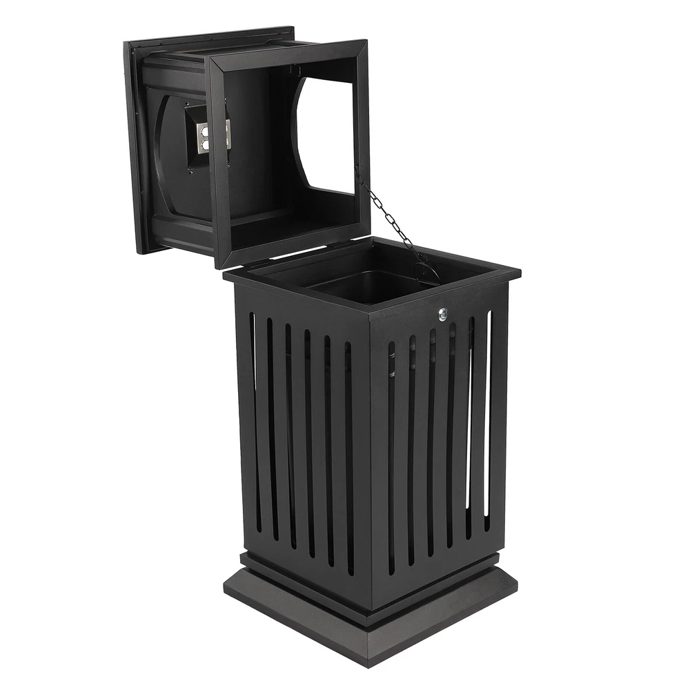 Commercial Trash Can Restaurant Outdoor Large Garbage Waste Recycle Bin Black US Black Garbage Can Description An Exquisite and Practical Garbage Can Not Only Helps to Keep the Environment Clean and Fresh but Also Beautifies the Style of the Environment. This Garbage Can Is Made of High-quality Galvanized Sheets and the Exquisite Spraying and Baking Paint Process Can Adapt to Different Indoor and Outdoor Environments to Serve You for a Long Time. Key Features Exquisite Appearance : the Elegant, Antique Black Surface with Smooth Lines and Hollow Panels Create an Exquisite Appearance, Which Can Add a Classical Style to Parks and Other Venues. High-quality Material : the Surface of a High-quality Galvanized Sheet Is Exquisitely Sprayed and Baked, Which Greatly Enhances Its Ability to Resist Corrosion and Impact, Enabling It to Adapt to Different Outdoor/Indoor Environments. Stable Structure : Thickened and Enlarged Base and Regular Rectangular Structure Provide a Stable Structure for the Product to Improve Wind Resistance . Hands-free Garbage Disposal : the Double-sided Enlarged Arch Opening Design Not Only Facilitates the Disposal of Larger Garbage but Also Allows You to Dispose of Garbage Without Touching the Lid, Which Is More Convenient and Hygienic. Large Capacity : the Large Deep Liner Has a Large Capacity of 8.8 Gallons, Which Makes It Suitable for High-traffic Areas Such As Parks, Schools, or Amusement Parks. Large-capacity Trash Cans Can Keep the Ground Clean and Trash-free for a Long Time Without Frequent Cleaning. Installation-free : the Product Is Shipped As a Whole so It Can Be Used upon Receipt Without Installation, Which Is a Time Saver. Stable and Secure : the Lid with Lock Enhances Security to Prevent Theft. for Weather Resistance and to Prevent Vandalism, the Bottom of Weather-resistant Trash Garbage Can Be Fastened with Equipped Screws to the Pavement. Thoughtful Design : This Floor-standing Garbage Can Is a Versatile Combination of an Ashtray and Trash Receptacle, Not Only Offers Convenient Hands-free Disposal of Cigarettes and Trash at One Location but Also Can Extinguish and Discard Cigarette Butts for Effective Fire Prevention. Easy to Clean : the Smooth Surface, Simple Structure, and Removable Liner Make It Easy to Clean. You Just Need to Wipe It Gently with a Damp Cloth. Protective Packa ging: the Sturdy Cardboard Box Provides Full Protection for the Product to Avoid Damage in Transit. Customer Service : We Aim to Provide Quality Products and Services. If You Have Any Problems, Please Feel Free to Contact Us. We Will Reply and Solve the Problem for You As Soon As Possible. Details Flip Lid : the Top Flip Lid Not Only Prevents Rain and Snow from Entering but Also Makes It Easy to Clean up the Garbage. Carrying Handles : the Two Carrying Handles of the Inner Liner Not Only Facilitate Movement but Also Prevent Hands from Directly Touching the Garbage. Round Edges : the Round Edges Can Protect Hands from Scratches. Application It Applies to Indoor or Outdoor Places, Such As Patios, Parks, Lobbies, Shopping Malls, Courtyards, Garages, Offices, Halls, Etc. Specification Material: Galvanized Sheet Color: Black Process: Spraying Plastics and Baking Paint Style: Modern Shape: Rectangular, Cylindrical Opening Mechanism: Open-top Special Feature: Entrance, Anti-slip Capacity: 40l/8.8gal Gross Weight: 16kg/35.3lbs Net Weight: 15kg/33lbs Package Size: 92*42*42cm/36.22*16.53*16.53in Product Size: 40*40*90cm/15.8*15.8*35.5in Package Included 1*Garbage Can 1*Key 2*Screws Notes For Safety, Please Completely Extinguish the Cigarette Before Putting It into the Ashtray. Please Allow the Slight Color Difference Caused by the Shooting Light and 1-3cm Error Due to Manual Measurement. Please Make Sure You Do Not Mind Before You Order. Payment Delivery details Terms of sales About us Contact us Payment We accept ebay payment 。 Fees such as import duties, taxes are not included in the item price or shipping costs. These charges are the buyer's responsibility. Delivery details Shipping: 2-9 working days to: USA Terms of sales We maintain high standards of excellence and strive for hundred percent customer satisfaction. Feedback is very important to us. We hope that you contact us immediately before you give neutral or negative feedback, so that we can address your concerns. It is impossible to address issues if we do not know about them! About us Your satis faction is our ultimate goal. We work hard to earn your trust and future business. Our certified technicians have tested each item before shipping. The unit comes with 1 year limited warranty on all manufacturing defects. a) If you receive a defective item, you may return it or ask for a discount. Please contact us within 14 days after you receive the package. b) What you returned must be intact and in its original packaging as re? u. Customer is responsible for shipping costs of the returned item. c) We will cover the cost of shipping back t with the shipping rate indicated in the registration page. We will send you a new unit or refund the full payment you paid. Thank you. Contact us Business Hour Business Hour: Monday To Friday: 8:30 AM to 5:00 PM (Beijing China time) Due to time zones, our reply to your questions may not be immediately. But within above working time, we will reply your email within 24 hours. If it's non-workdays, please kindly be patient and wait till Monday. Please contact us with ebay message. Please feel free to contact us if you have any questions. Monday To Friday: 8:30 AM to 5:00 PM (Beijing China time) Due to time zones, our reply to your questions may not be immediately. But within above working time, we will reply your email within 24 hours. If it's non-workdays, please kindly be patient and wait till Monday. Please contact us with ebay message. Please feel free to contact us if you have any questions. Transportation does not include Canary Islands Shipping Notice Can not ship to Puerto Rico,Alaska/Hawaii It