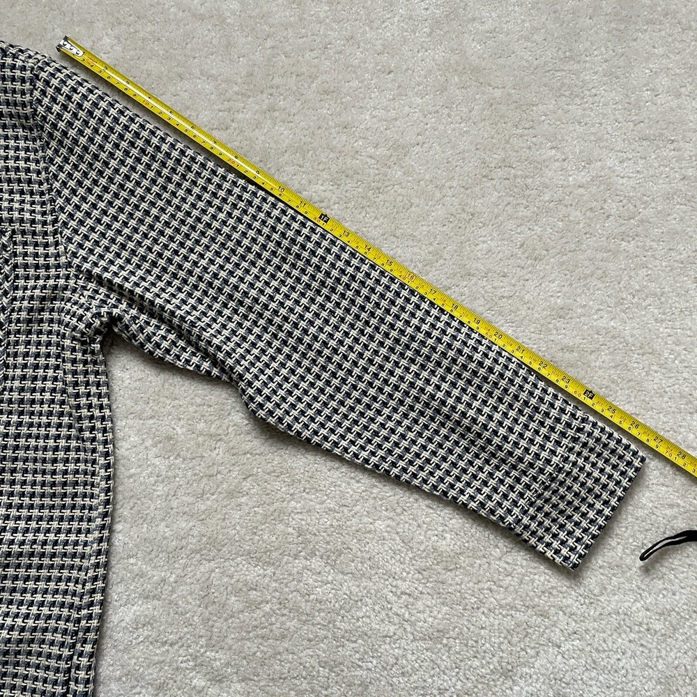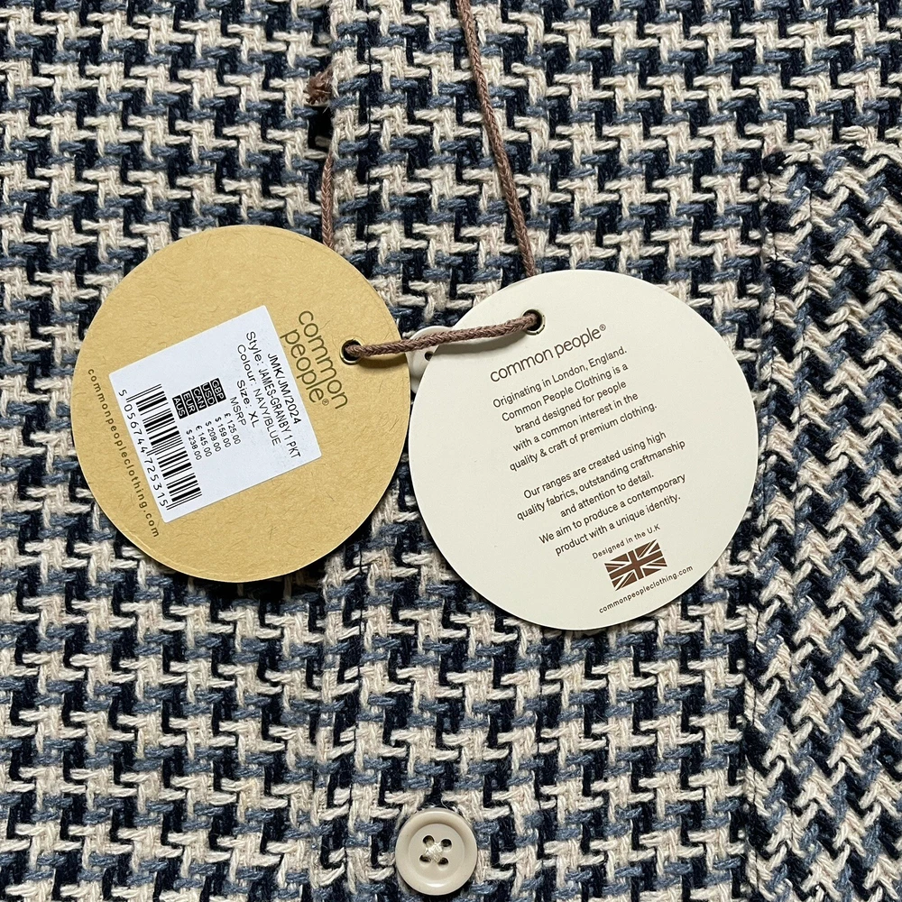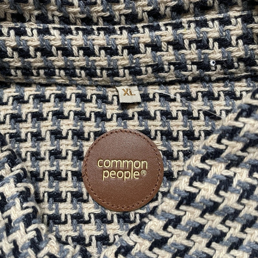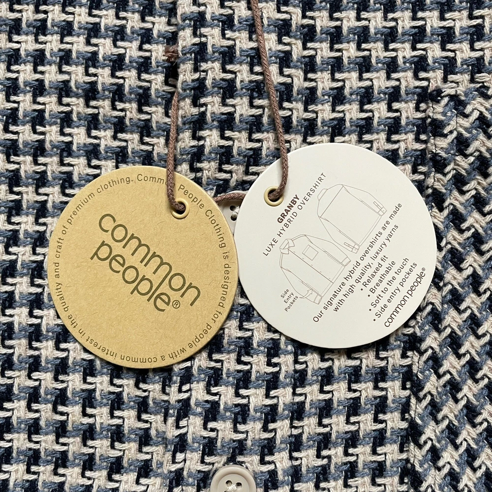 Elevate your style with the Common People Granby Luxe Hybrid Overshirt in the James Navy/Blue pattern. This versatile button-up shirt features a herringbone design and long sleeves with a spread collar style. Made with a combination of polyester, nylon, rayon, cotton, wool, and acrylic, this knit fabric is machine washable for easy care. The shirt comes in a size XL and has pockets for added convenience. Perfect for any occasion, this shirt is a must-have for any fashion-forward individual. Please review photos for details, measurements and condition