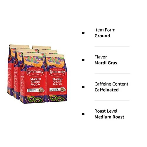 Community Coffee Mardi Gras King Cake Flavored 72 Ounce, Medium Roast Ground Coffee, 12 Ounce (Pack of 6) The Taste of Mardi Gras: The king of all flavored coffees! Enjoy the taste of Mardi Gras all year with this festive blend of cinnamon spice and sweet vanilla flavor. Let the good times roll! Ground Beans: We take high quality 100% Arabica beans, roast and grind them to perfection. Our ground coffee is constantly watched, brewed and tasted by our experts for rich, flavorful coffee Community Is Everything: From using responsibly sourced coffee beans to programs that support military service members, local schools and more, Community Coffee gives back to our partners and local communities in every way we can How You Like It: Ground to perfection to brew as drip coffee, pour over or use in your French press. Plenty of options for every taste including hot, iced or cold brew coffee Quality Assured: All of our coffee beans go through a rigorous scoring system for body, balance, flavor and aroma. Only then can they be considered fit to bear the Community Coffee name The king of all flavored coffees. Enjoy this perfectly balanced blend of cinnamon and vanilla flavored coffee. Made from only 100% select Arabica coffee beans. This product contains a 6 pack of 12 ounces of ground coffee. Perfect for using in an automatic drip coffee maker, for cold brewing or for pour-over coffee. About Community Coffee Since Cap blended the first batch of Community coffee, we've seen plenty of change -- both inside and outside the company. we've evolved to better serve our customers, but we've also tried to stay true to our roots and the community that got us started. That's why for over 100 years we've maintained an unwavering dedication to making the best-tasting, highest-quality coffee we possibly can -- all while developing better methods of sourcing, superior roasting techniques and innovative ideas to keep our coffee at its peak of flavor and freshness. We simply love making coffee, and we find inspiration in every part of the process, from planting the beans to serving the perfect cup. Above all, we're inspired by the people we work with, the customers we serve and the connections we've built together. Shipping We offer FREE shipping on all orders! We ship within Three business days of payment, usually sooner. We use a selection of shipping services such as UPS, FedEx, USPS etc. We only ship to the lower 48 states, no APO/FPO addresses or PO Boxes allowed. Local pickups and combined shipping options are not provided at this time. Return You can return a product for up to 30 days from the date you purchased it ONLY if it's in the original condition. The product cannot be used or open. Any product you return must be in the exact same condition you received it and in the original packaging. Please keep the receipt. Feedback Customer satisfaction is very important to us. If you have any problem with your order, please contact us and we will do our best to make you satisfied. Contact Us If you have any queries, please contact us via ebay. We usually respond within 24 hours on weekdays. Please visit our eBay store to check out other items for sale! Thank you for shopping at our store.