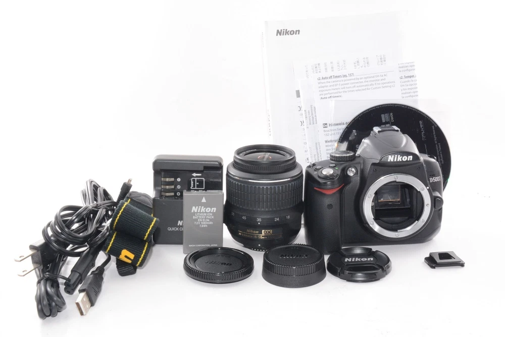 【NEAR MINT】Nikon D5000 Digital Camera 18-55mm DX Description Thank you so much for coming to my store. Please enjoy your shopping! ■Total Condition Rank : NEAR MINT - Pre-owned, almost no signs of u se ■ Appearance : Appearance is beautiful. tiny scuffs from normal used. It shows signs of us. *Please check on the photes for detailed condition of the produst. ■ Optics : ★Finder 【haze】 -NO 【fungus】 -NO 【scratch】 -NO 【marking】 -NO 【balsam separation】 -NO 【dust】 -NO ★Lens 【haze】 -NO 【fungus】 -NO 【scratch】 -NO 【marking】 -NO 【balsam separation】 -NO 【dust】 -NO ■ Functional : It works properly. ■ Include : Please confirm the accessories with photos. All the accessories appearing in the photos are attached. Payment We will ship the item 2 business days after your payment clears. *Please read our Return Policy before a successful bid. Please purchase our item only if you accept our Return Policy. 100 % Authentic & Money Back Guaranteed (Do not worry you are protected by eBay and Paypal Buyer Protection) If you have any questions, please email me before purchase Shipping I send a product by DHL. I attach the tracking number. Please bid it without worrying. Shipping is only available to the address registered in eBay. Please note that any address not registered in eBay is not acceptable to ship. Shipping is available from Monday to Friday. Weekends are not available because office is closed. International Buyers - Please Note: Import duties, taxes and charges are not included in the item price or shipping fee. These charges are the buyer's responsibility. Consult with your country customs office to see what these additional fees are before purchase. These fees are collected by the shipping company (transport company) which is normally delivered. Or do not confuse additional shipping charges when selecting items. Would you display the value of the item under the value, or would you mark the item as a """"""""gift"""""""" - By US and international government regulations, such conduct is forbidden. There is an area that we cannot export camera, lens etc. So please check it before you purchase. Please use English, Japanese when you contact us about a complaint of the item.