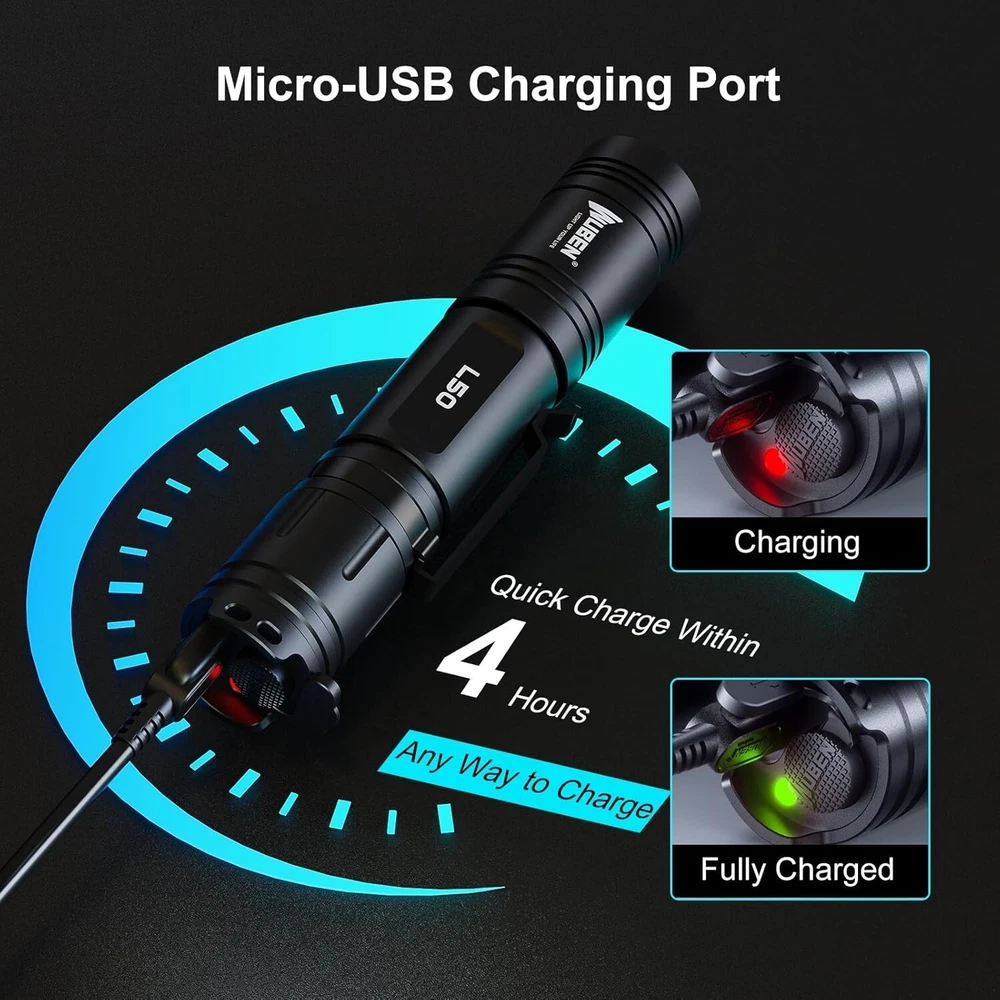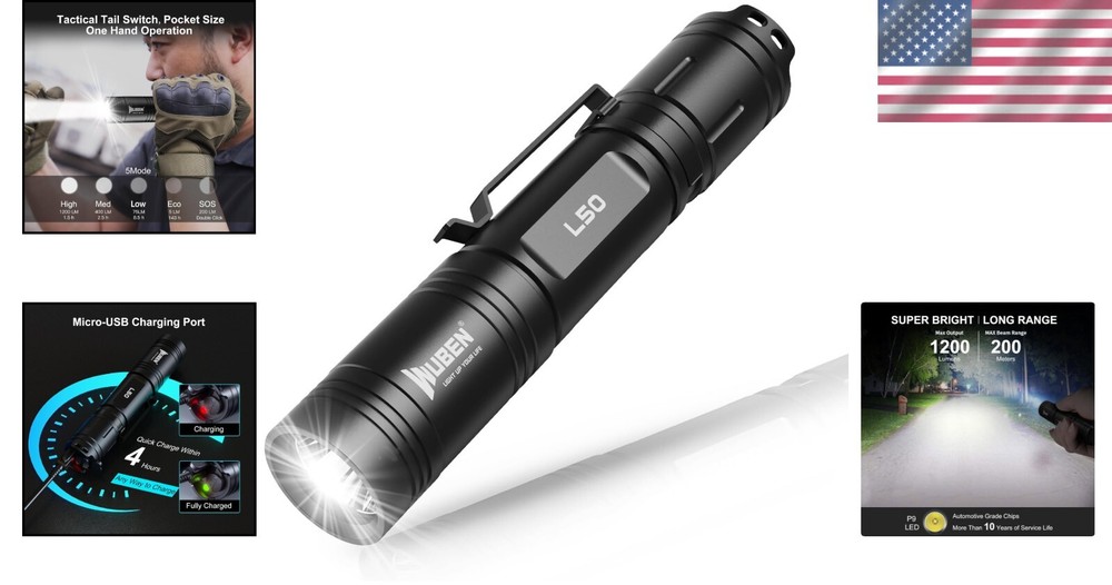 Compact 1200 Lumen Tactical LED Flashlight - Lightweight USB Rechargeable Design