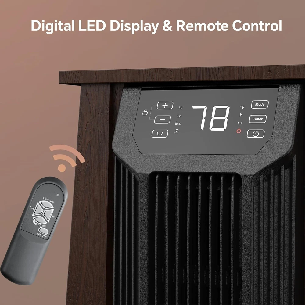 Timer Control: 12 hrs Form Factor: Cabinet Features: Timer Product Dimensions: 12.9"d X 15.2"w X 19.9"h Mounting Location: Desk/Tabletop Brand: Unbranded Type: Portable Heater Min Temperature Setting: 60 Degrees Fahrenheit Material: Wood UPC: Does not apply Area Covered: 200-300 sq ft Item Depth: 12.9 in Item Weight: 5 Pounds Indoor/outdoor Usage: Indoor gtin13: Does not apply Control Style: Remote Control, Digital Power: 1501-2000 W Recommended Uses For Product: Home Mounting Type: Tabletop Mount Color: Walnut Voltage: 120 V Heating Coverage: 200-300 Square_feet Number of Heat Settings: 3 Power Source: Electric Max Temperature Setting: 90 Degrees Fahrenheit