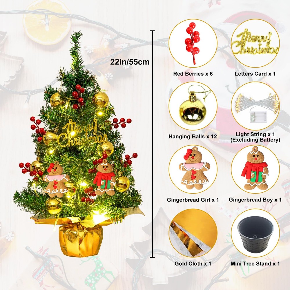 Small Mini Christmas Tree 22 Inch with Light,Tabletop Miniature Pine Christmas Tree with Hanging Ornaments, Battery Operated Artificial Xmas Tree, DIY Christmas Holiday Party Decorations 【Package Includes】-The Xmas Tabletop Tree's size is 22 Inch, containing xmas tree*1,red berries*6,letters card*1,hanging balls*12,light string(Excluding Battery)*1,gingerbread man*2, gold cloth*1,mini tree stand*1. 【Perfect Christmas Choice】- This Xmas Table top tree will give you a wonderful festive memory. it will be the one christmas decoration. It is also awesome gift for your friends, family . 【Versatile centerpiece decor】- Perfect as a table centerpiece or decorative addition to a nightstand, countertop, side table, or office desk due to its compact design. Experience the spirit of the holidays in your home with this lovely tabletop Christmas tree. 【LED Lights Battery Oprated】 - There is a light string, and is warm white ,the light string is 2 meters.Operated by 3 AA batteries(included). 【service】 - The Mini Christmas Tree you receive have been transported for a long distance, so you need to manually arrange the branches and ornaments.If there is any damage, or you are just satisfied.Please us. 1 Shipping We offer FREE shipping on all orders! We ship within Three business days of payment, usually sooner. We use a selection of shipping services such as UPS, FedEx, USPS etc., unable to choose a carrier. We only ship to the lower 48 states, no APO/FPO addresses or PO Boxes allowed. Sellers generally can’t change the shipping address that you provided at checkout. Local pickups and combined shipping options are not provided at this time. International buyers - please note: Import duties, taxes, and charges aren't included in the item price or postage cost. These charges are the buyer's responsibility. Return You can return a product for up to 30 days from the date you bought it by using the seller's FREE RETURN LABEL only. Any product you return must be in the same condition you received it and in the original packaging. International buyers - Rejection and return of the product requires the buyer to pay all shipping and return costs. Please return with the reason "Order mistake" or "Changed my mind" or "Does not fit" for a refund, which would be greatly appreciated. If the buyer wishes to return the items for a refund or replacement, please contact the seller to obtain a free return label. The refund or replacement will be processed using the tracking number of the return label, which will be provided solely by the seller. Other methods of return that have not been approved by the seller will not be processed for a refund or replacement. Payment We accept payment by any of the following methods: eBay Manage Payment Please pay as soon as possible after winning an auction, as that will allow us to post your item to you sooner! Feedback Customer satisfaction is very important to us. If you have any problem with your order, please contact us and we will do our best to make you satisfied. Please be aware that our products are stored and fulfilled by third-party warehouses and manufacturers across the United States (also known as third-party fulfillment or product sourcing). These companies are completely trustworthy, and we are confident in entrusting all of our valuable items to them for the safety and best delivery system for our store. Contact Us If you have any queries, please contact us via ebay. We usually respond within 24 hours on weekdays. Please visit our eBay store to check out other items for sale! Thank you for shopping at our store.