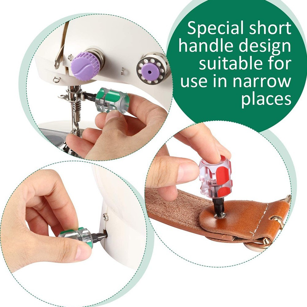 Product Description Feature: *3 Styles: the package contains 2 pieces 2-in- interchangeable handle screwdrivers, 2 pieces flat screwdriver 2 pieces cross-head screwdrivers, pieces in total, enough to meet your repairing need *Anti-slip handle design, comfortable with high torque. *Made of high hardness chrome vanadium steel, . *2-in- Screwdriver: the dual-purpose screwdriver can be converted into two types of heads including a flat head a cross-head, provides convenience to carry, no need to carry different types of screwdrivers, helps to lessen the weight of your luggage *Wide usages: the mini short handle screwdrivers work well in narrow spaces, narrow areas or limited spaces, they are very suitable for repairing sewing machines Specification: *Material: Chrome vanadium steel+Plastic *Color: green / red *Types: Flat head screwdriver cross-head screwdriver *Length: 80mm (red) / 37mm (green / red) *Quantity: Pieces Package Contents: for 2 x Flat head screwdriver for 2 x Cross-head screwdriver for 2 x 2-in- Screwdriver Note: . The real color of the item may be slightly different from the pictures shown on website caused by many factors such as brightness of your monitor and light brightness. 2. Please allow slight manual measurement deviation for the data. Payment Payment must be completed within 5 days. If you have any problems about payment, please contact us via ebay message. Delivery details We only ship to confirmed ebay Order addresses. Please comfirm that your Order address is in line with your shipping address. Please kindly note that the c ombined shipping is not provided because the shipping fee is calculated by weight. Also, the each additional item means exactly the the same color and size. It takes about 7 -15 working days to US; about 10-30 working days to other countries. Transit time may be a little delayed because of the bad weather and customs inspection . If you do not receive your item within 30 working days since payment finished, please contact us immediately for further assistance. Contact us We strive for 100% customer satisfaction! Positive Feedback is very important to us. If you have any questions, p lease feel free to contact us via "Ask seller a question" . We will reply your email within 24 working hours.