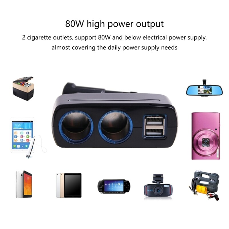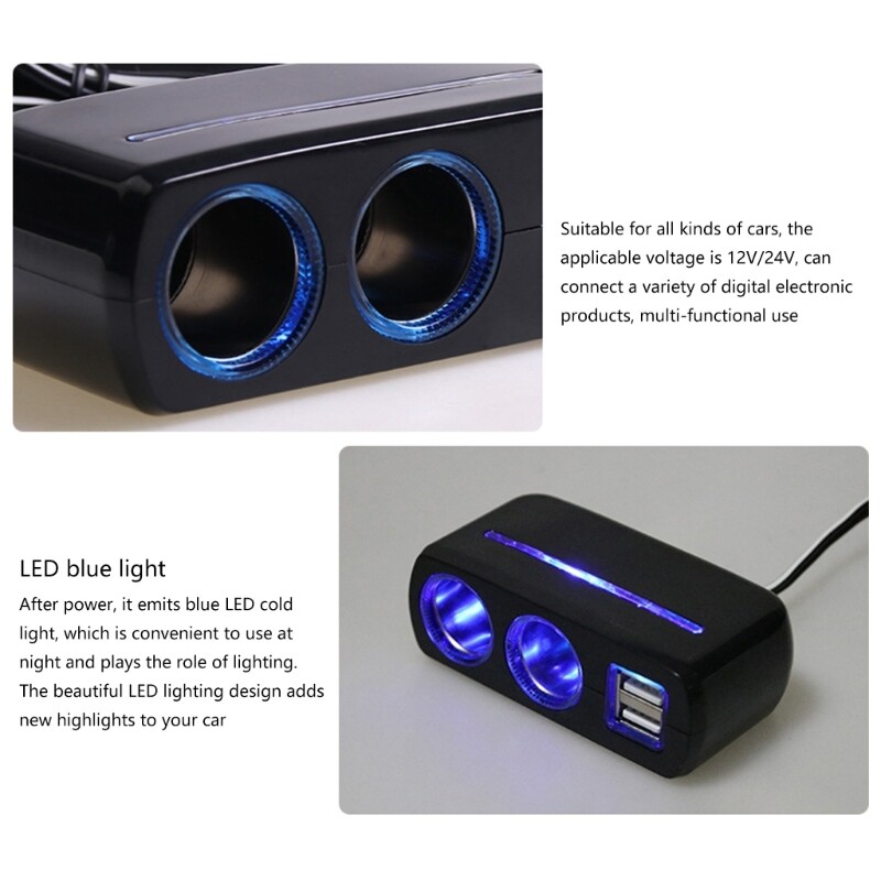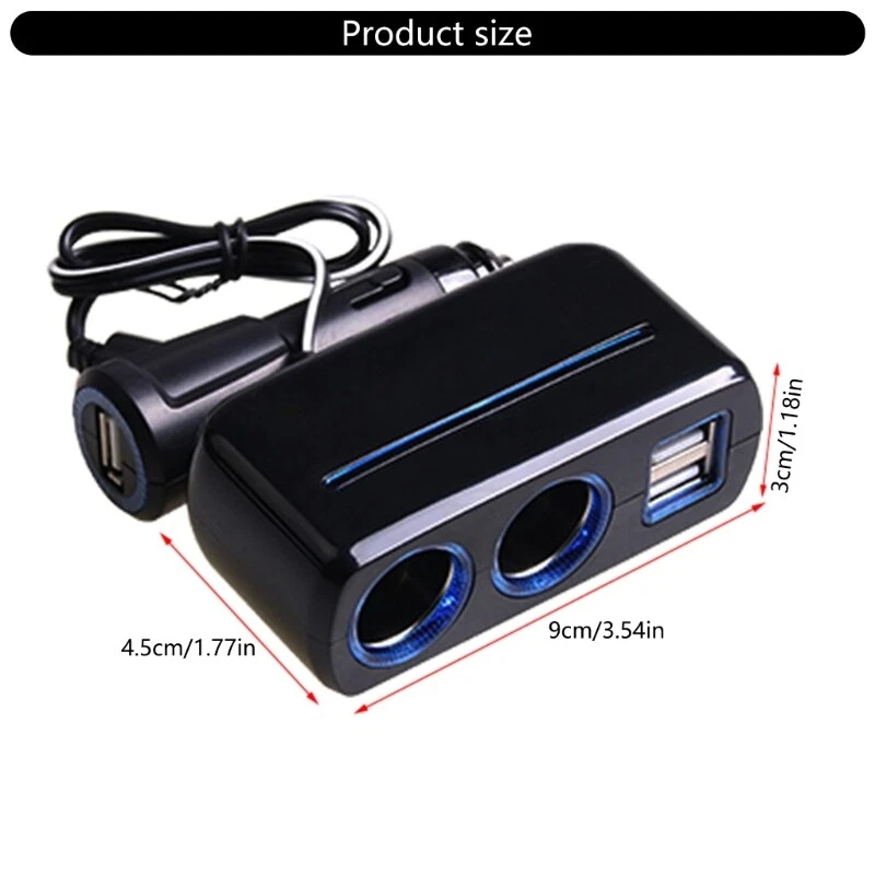 Features: Beautiful LED lighting adds highlight to your car. A car power socket with a output power of up to 80w. High strength engineering material, temperatures resistance, corrosion resistance, and strong heat dissipation. Intelligent protections, with 9 layers of protections including overcharge, overvoltage, overcurrent, overloads, shortcircuits and more. Suitable for various vehicle voltages, with a suitable voltages of 12V/24V. Specifications: ABS+PC Color: black Size: about 9x4.5x3cm/3.54x1.77x1.18inch Product Name: 1 to 2 Car Power Splitter Applicable vehicle series: Basic universal type Applicable voltages: DC12V-24V Output power: 80W Single USB Output: 1A Double USB Output: 3A Package Includes: 1Pc Car Socket Splitter note: Please allow 1-2cm errors due to manual measurement. Please allow for slight color differences due to different display resolution.