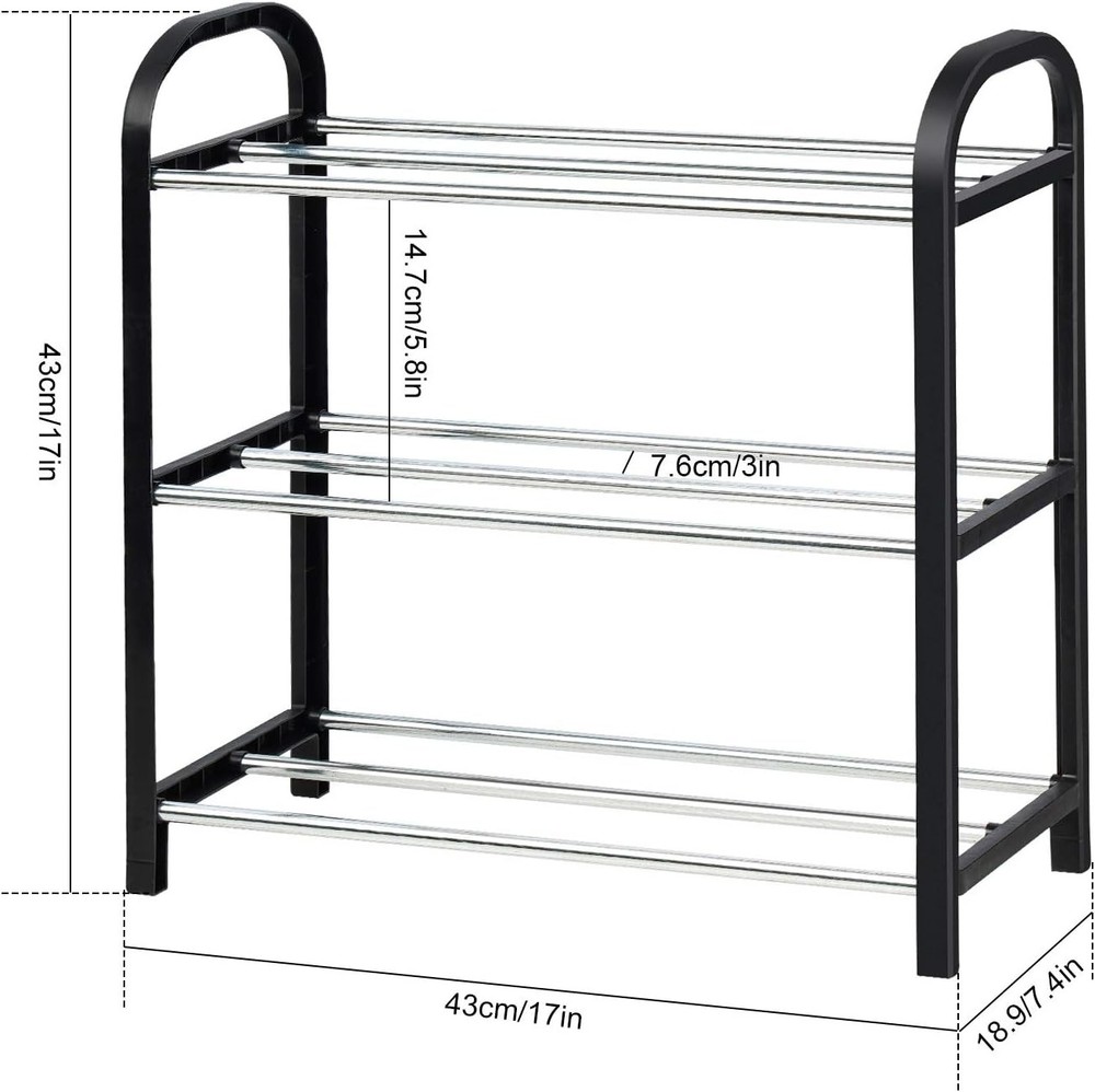 【Space Saver】Perfect compact size and a good solution to reduce cluster to make everything neat and organized. Great size for your entryway, hallway, wardrobe, closet, dormitory, terrace, cabinet, garage, garden and more. The storage rack measures 42 x 19 x 44 cm. 【Multifunctional Rack】Holds up to 6 pairs of shoes for women, men and kids, and this rack is not only for shoes. You can use it as a kitchen pantry organizer for baskets, cookware, supplies, as a closet wardrobe storage rack for shirt, socks, sweaters, coats, or anywhere in the house to organize and display crafts, laundry, toys, plants, books, accessories, etc. 【Easy to Setup】Simply attach the shelf tubes to the side frames. Snap tightly. No special tool is required. Lock adjacent ... Happylistings Compact 3-Tier Shoe Rack Organizer - Sturdy Metal Frame, Vertical Display Shelf For 6 Pairs Of Shoes, Ideal For Closet, Hallway, Entryway, Living Room, Bedroom - Small Size, Lightweight (Black) 【Space Saver】Perfect compact size and a good solution to reduce cluster to make everything neat and organized. Great size for your entryway, hallway, wardrobe, closet, dormitory, terrace, cabinet, garage, garden and more. The storage rack measures 42 x 19 x 44 cm. 【Multifunctional Rack】Holds up to 6 pairs of shoes for women, men and kids, and this rack is not only for shoes. You can use it as a kitchen pantry organizer for baskets, cookware, supplies, as a closet wardrobe storage rack for shirt, socks, sweaters, coats, or anywhere in the house to organize and display crafts, laundry, toys, plants, books, accessories, etc. 【Easy to Setup】Simply attach the shelf tubes to the side frames. Snap tightly. No special tool is required. Lock adjacent units for shelving that fits your needs and the shelf can be used indoors as well as outdoors on the balcony. Clean and maintain with damp cloth. 【Sturdy Structure】Made of durable waterproof galvanized steel tubes and strengthened plastic connectors. The metal surface layer is corrosion-resistant to prevent rust formation with normal use. Thickened design of shelf pipes improves bearing capacity for larger and heavier objects, making this rack extra sturdy and stable. 【Strong & Lightweight】The storage rack is made of lightweight materials and can be easily disassembled into parts for easy moving and storage. This rack boasts enough storage for organizing your stylish high heels, dress shoes, ballet shoes, sneakers, running shoes, hiking boots, high boots, canvas shoes, sandals and more. Item Specifics Brand Unbranded Type Free Standing Shoe Racks Room Type Garage, Kitchen, Closet, Living Room, Bedroom, Hallway Number of Shelves 3 Special Feature Weatherproof Product Dimensions 16.54"D x 7.48"W x 17.32"H Style Shoe Finish Type Stainless Steel Product Care Instructions Wipe with Dry Cloth Size Small Assembly Required Yes Recommended Uses For Product Shoes Number of Items 1 Included Components Hardware Item Weight 1 Pounds Furniture Finish Stainless Steel Installation Type Freestanding Unit Count 1.0 Count UPC 810027647283 Item Weight 1.04 pounds Item model number NiHome-0020-PTShoeRack Finish Stainless Steel Special Features Weatherproof Batteries Included? No Batteries Required? No Contact Us 1.Dear customers, we appreciate your business, our aim is to provide Top Level Customer Service,if you are satisfied with our service, please leave us a 5 star positive feedback . 2.If you have any question or concern about your eBay order, please feel free to let us know. We will try our best to reply all questions within 24 hours. However, no answer will be replied during weekends or holidays. Please allow up to 48 hours delay in receiving our response after long weekends or holidays. 3.Please via eBay Message for a solution for resolutions before leaving negative feedback, we strive to providing the greatest service and bringing the highest satisfaction to all of our customers. Shipping 1.We usually ship within 3-5 business days of receiving cleared payment., and we provide Free Shipping for most items. 2.Fast shipping is very important for us. We use multiple fulfilment warehouse around the United States. We only ship to the lower 48 States and do not ship to PO Boxes. 3.Please make sure the correct Ship-To address is entered before checking out. Once the payment is completed, you may not be able to change the shipping address. We shall not be held responsible for any wrong or undeliverable addresses. Returns 1.We provide 14 days return upon the buyer received the item. It must be in good condition and you will undertake the returned shipping cost. 2.We will offer replacement or refund for all DEFECTIVE items (not including damage resulting from accidents / abuse / misuse / improper care), but a photo is needed for our reference beforehand and should be reported to us within 7 days from purchase date. 3.All items are brand new and have been passed the quality check. All are packed in a good condition before item dispatch. Payment We accept PayPal payment,PayPal Credit,Credit card or debit card and so on. Payment should be completed within 4 (Four) days of auction closing. Or unpaid dispute will be filed for closing auction. We will leave a positive feedback immediately after payment is received. We appreciate a positive feedback as much as you do. If for some reason there is any issue with the purchase, please contact us prior to leaving feedback, we will be glad to work together and provide a satisfying solution. Happylistings DESCRIPTION PAYMENT SHIPPING RETURN POLICY CONTACT US Help & Info Payment Policy Shipping Policy Return Policy FAQ About Us Compact 3-Tier Shoe Rack Organizer - Sturdy Metal Frame, Vertical Display Shelf For 6 Pairs Of Shoes, Ideal For Closet, Hallway, Entryway, Living Room, Bedroom - Small Size, Lightweight (Black) 【Space Saver】Perfect compact size and a good solution to reduce cluster to make everything neat and organized. Great size for your entryway, 