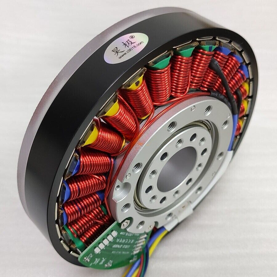 Small Hollow Shaft and Permanent Magnet Brushless DC Motor Generator 400W Descriptions: The motor as the engineering prototype profile diameter126.5MMthe torque, speed smooth, and can be used as a general power direct drive and hassle of reduction gear so as to improve the efficiency, the core parts are implemented using metal-supported rotor bracket is made of engineering plastic as a supporting framework, can meet the requirements is not high, to power a small amount needs of the occasion, or as a teaching model demo can also be based on application strength customized metal skeleton and power, in need please contact the station customer service. The motor is a permanent magnet three-phase DC brushless motor in this circumstance, the entity needs plus purchase adaptation of the brushless motor driver to use. At the same time it is also a generator, an external force transmission (such as hydro, wind, hand, treadmill, the Stirling engine, etc.) may output a three-phase alternating current (AC), added to the three-phase rectifier Bridge can be converted into a direct-current use, to charging the battery.As a result of this motor has the advantages of simple structure, disassembly and assembly are convenient, installed in a fixed manner flexible, many a coaxial parallel access to multiple power output shaft can replace any length, is the initial product research and development, DIY in the production of various types of model toys, small generators of good choice. This product adopts the standard design of the magnetic circuit, the rotor wheel for superconducting magnet side-by-side with the stator core constituting the magnetic flux loop make full use of the electromagnetic torque, coupled with the excellent pole and slot combination magnetomotive force of the high rate of the utilization of the cogging torque is small, to maximize motor integrated performance. Stator punching Hall embedded positioning groove design, the hall element can be fineindeedmeasurement of rotor position, so that the three-phase winding brushless commutation more accurate, to ensure that the motor forward and reverse consistent performance.Special note: This product without the dynamic balance correction Motor high speed range may have vibration, shipment as far as possible to reduce vibration, there is no guarantee that the specific values. This product is a kind of hollow shaft design, shaft front and can be fitted with a 8 were M3 screws, convenient for you to deliver the motor installed on the rotary encoder (magnetic encoders, grating encoder, etc.), coupled with the servo driver applied to the numerical control machine tool, a robotic arm, such as intelligent application fields. But if it's not a sense of rotary encoder, this motor has built-in the hall sensor, can be an ordinary all brushless drive direct drive. This product is a engineering prototypes, due to the Long Time Running aging test, therefore, our company is not the user's specific apps. The present Motor adopts domestic bearing, if the speed is too high (greater than 3000 rpm) can lead to bearing heat, please pay close attention to its temperature rise. This motor is consistent with the corresponding driver may direct speed (potentiometer 0 ~ 5V analog voltage or PWM signal speed), thanks to its use of the multi-pole structure and Hall sensor, to ensure that its low speed conditions normal operation. Product specifications: size:diameter 126.5 * thick 36mm weight:about 0.96kg the hollow shaft:hole diameter 23mm the stator:diameter 115 * thick 10mm the slot structure:27 The Groove 30 is lead length:25 ~ 30cm hall angle:with a 120-degree overview line-sequential description:green = A(U), yellow = B(V), blue = C(W) electrical parameters: speed constant (KV):42.75RPM/V working voltage:DC12V ~ 48V no-load speed:2052PRM @ 48V rated voltage:48V rated power:400W rated speed:1570PRM rated torque:2.5Nm rated current:10A conversion efficiency:86% the rated electrical parameter is estimated, specific to the measured subject, which were inserted for reference purposes only. Payment Delivery details Terms of sales About us Warranty & Return / Contact us Payment PayPal For PayPal eCheck payment, PayPal usually takes between 3 and 5 business days to clear the payment. We can only ship out order after the payment is cleared. VISA / MATERCARD / AMEX / DISCOVER (U.S. Credit Card Only) If card's registered billing address is not in U.S., please use PayPal as payment gateway. Purchase multiple listings? Simply commit to buy all items, and process the payment from the last checkout. For additional combined shipment request, please feel free to contact us . Delivery details SHIPPING & HANDING: Order will be shipped within the same day or 2-3 working days after the payment is received. Order placed on the weekends will be shipped out on next Monday or Tuesday (holiday excluded) . Local pickup is not available and w e regret that we can not be responsible for any wrong or undeliverable addresses. U.S. DOMESTIC ORDERS: We use USPS,FedEX & UPS as regular forwarder, f or order shipped to California address, we are required to collect CA sales tax. Order with UPS shipping method completed (payment is received) before 9 AM PST will be shipped out on the same day (weekends or holidays excluded) We do not ship to APO, FPO, AK, HI, PR with the same domestic shipping rate via USPS mail, unless charged additionally. ATTENTION FOR ALL INTERNATIONAL ORDERS: Buyer is responsible for any applicableVAT duty, clearance fee and local tax, based on regulation of importing countries. Terms of sales Please leave Positive Feedback and 5 Star Ratings for us if you are satisfied with our products and service, and we will do the same for you !!! =) YOUR SATISFACTION IS OUR HIGHEST PRIORITY. Please contact us if you have any questions or requests about our products or service. We are alwa ys glad to assist you and stand by our products. About us Welcome to our store. We are a reputable busine