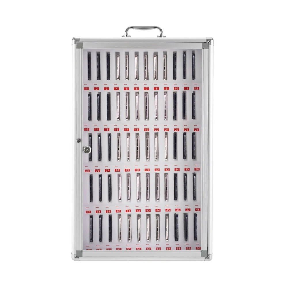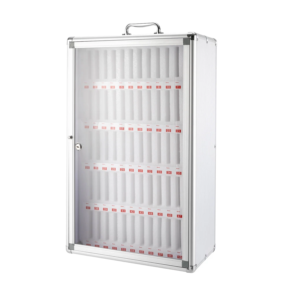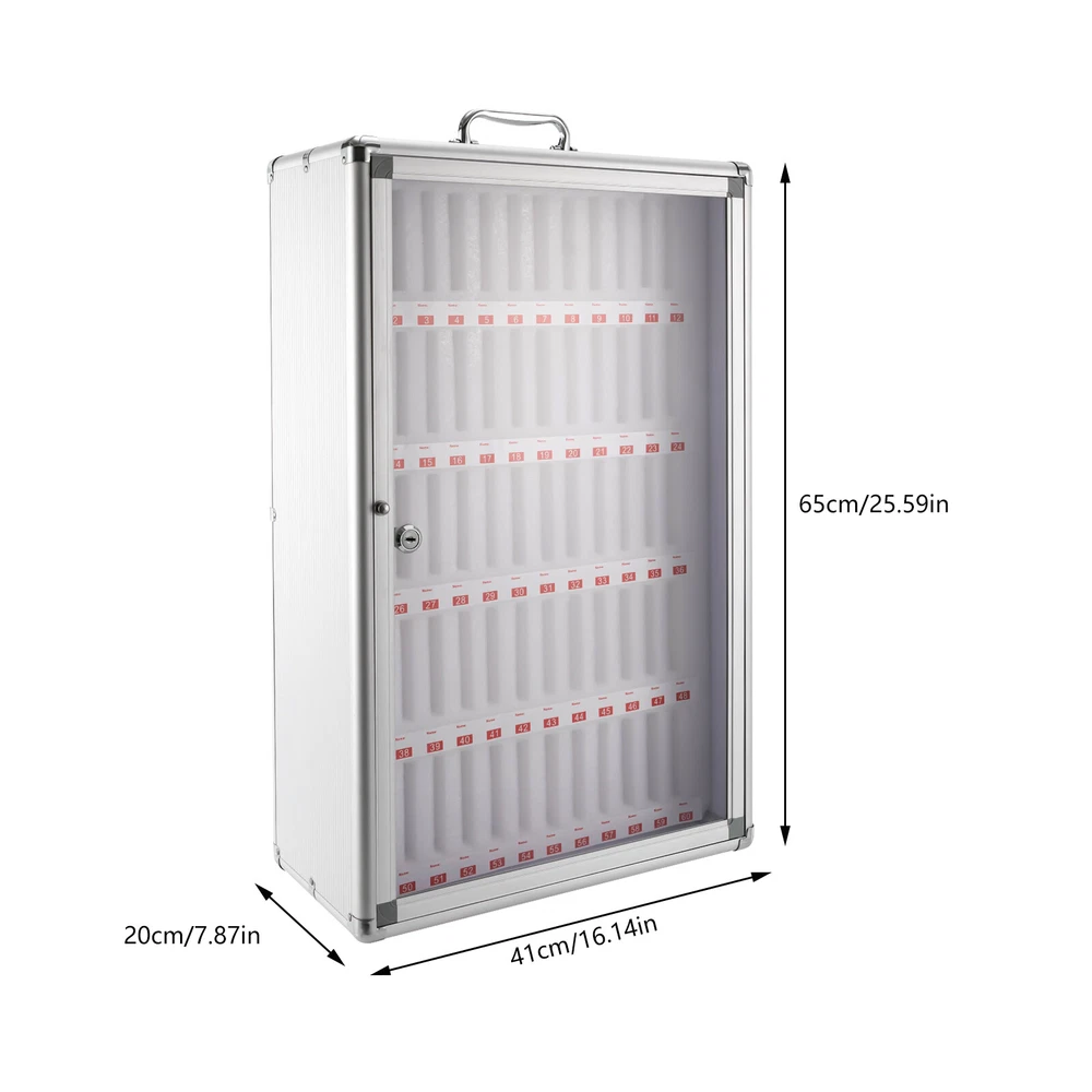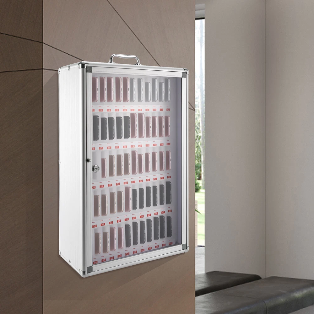 Specifications Material: MDF, Aluminum Alloy Lining Material: Foam Cotton Cabinet Door Material: Acrylic Clad Corner Material: Stainless Steel Color: Silver Special Feature: Lockable Mounting Type: Wall Mount, Freestanding Shape: Rectangular Capacity: 60Slots Each Slot Size: 1.5*9*11.5cm/0.59*3.54*4.52in Packing Size: 45*24*69cm/17.71*9.44*27.16in Product Size: 41*20*65 cm/16.14*7.87*25.59 in Gross Weight: 3.85kg/8.48lbs Net Weight: 2.85kg/l6.28bs Aluminum Alloy Storage Cabinet for Cell Phones Can be Carried by Hand (60 Slots) Description~~ Description Are you still looking for a safe way to manage your students'/employees' mobile phones? You can't go wrong with this cell phone storage cabinet. Its reinforced locking design and soft foam cotton lining will give you secure storage space for your mobile phone. Each storage slot is approximately 6.29 inches deep, so you don't have to worry about your phone slipping out. Made from high-quality materials, it is extremely robust and will be ideal for you! Key Features Sturdy and Durable: With its MDF panel, aluminum alloy frame, and acrylic door, this cell phone storage cabinet is robust , waterproof, hard-wearing, and impact-resistant, ensuring a long service life. Secure Storage: It comes with an anti-theft metal lock for more secure protection of your phone, so you don't have to worry about losing it. Number & Label Design: Each slot has a numbered label underneath which you can add your name, making it easier to find and manage the corresponding cell phone. Wall Mounted: Not only can it be placed on the desktop, but it can also be wall mounted as an option, saving you a lot of space. The sturdy wall-mount buckle reserved on the back and the screw fittings included in the package will assist you to hang it easily on the wall. Focus Assistant : The cell phone storage cabinet allows the storage and central management of mobile phones in classrooms, conference rooms, and workshops so that students and staff can focus more on their current study and work content, thereby improving the efficiency of study and work. Large Capacity: This large cell phone storage cabinet can hold up to 60 mobile phones, which can meet the needs of classes, meetings, factories, etc. At the same time, the size of each slot is 1.5*9*11.5cm/0.59*3.54*4.52in, which is suitable for most mobile phone models. Easy to Carry : It is lightweight(l6.28bs), compact(16.14*7.87*25.59 in), and has an ergonomically designed handle on the top, which is convenient to move and carry it anywhere. Easy to Clean: Its smooth and flat surface makes it easy to clean. You can easily wipe off dust and stains with a damp cloth. Customer Service: We aim to provide quality products and services. If you have any problems, please feel free to contact us. We will reply and solve the problem for yo u as soon as possible. Details Stainless Steel Clad Corners: The corners are covered with stainless steel, making the cell phone storage cabinet more durable and stress-resistant. The rounded corners can also prevent you from accidental bumps and scratches. Clear Door: The clear acrylic cabinet door allows you to observe and locate the storage location of the cell phone intuitively, which is practical and user-friendly. The door also has a round metal handle for easy opening and closing. Foam Cotton Compartment: The internal compartment is made of high-quality foam cotton, which not only has good load-bearing properties without deformation or shaking, but also protects the phone from tear and wear. Application It is widely used in conference offices, factories, meeting rooms, mobile phone repair shops, beauty salons, health clubs, schools, restaurants, etc. Specifications Material: MDF, Aluminum Alloy Lining Material: Foam Cotton Cabinet Door Material: Acrylic Clad Corner Material: Stainless Steel Color: Silver Special Feature: Lockable Mounting Type: Wall Mount, Freestanding Shape: Rectangular Capacity: 60Slots Each Slot Size: 1.5*9*11.5cm/0.59*3.54*4.52in Packing Size: 45*24*69cm/17.71*9.44*27.16in Product Size: 41*20*65 cm/16.14*7.87*25.59 in Gross Weight: 3.85kg/8.48lbs Net Weight: 2.85kg/l6.28bs Package Included 1 x Cell Phone Storage Cabinet 2* Keys All Accessories Required for Installation Notes Please allow the slight color difference caused by the shooting light and 1-3cm error due to manual measurement, and make sure you do not mind before you order. DESCRIPTION 2: Welcome to welifangfang Thank you for your support! If you have any questions,please feel free to contact us!!! Payment Delivery details Terms of sales About us Contact us Payment We accept ebay payment 。 Fees such as import duties, taxes are not included in the item price or shipping costs. These charges are the buyer's responsibility. Delivery details Shipping: 2-9 working days to: USA Terms of sales We maintain high standards of excellence and strive for hundred percent customer satisfaction. Feedback is very important to us. We hope that you contact us immediately before you give neutral or negative feedback, so that we can address your concerns. It is impossible to address issues if we do not know about them! About us Your satis faction is our ultimate goal. We work hard to earn your trust and future business. Our certified technicians have tested each item before shipping. The unit comes with 1 year limited warranty on all manufacturing defects. a) If you receive a defective item, you may return it or ask for a discount. Please contact us within 14 days after you receive the package. b) What you returned must be intact and in its original packaging as re? u. Customer is responsible for shipping costs of the returned item. c) We will cover the cost of shipping back t with the shipping rate indicated in the registration page. We will send you a new unit or refund the full payment you paid. Thank you. Contact us Business Hour Business Hour: Monday To Friday: 8:30 AM to 5:00 PM (Beijing China time) Due to time zones, our reply to 