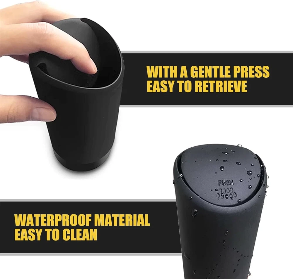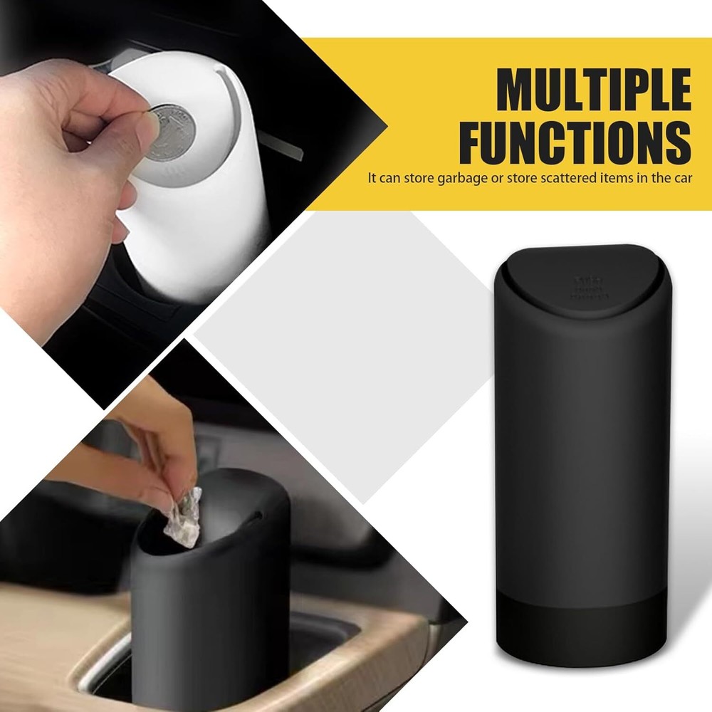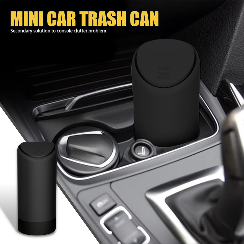 About this item Design with Lid: The design of this trash can with lid can effectively isolate odors and keep fresh air in the car. It is very suitable for storing cigarette butts, peels, tissues, and other waste during travel, so you no longer need to throw it out of the window or put it in the car. Product Details: You will receive 1 piece of car trash can, with overall dimensions of 1"L x 1"W x 1"H. It features a high-end fashion design that is compact and mini, making it easy to carry. Can be placed in car cup holder, center console, or door. Detachable Structure: This trash can has an upper and lower detachable structure, making it easier to wash and clean, thus extending its service life. Made from environmentally friendly materials, it has no special odor, is insulated and flame retardant, and offers enhanced durability. Portable Design: This trash can adopts a push-type design. You can put the garbage in with a gentle push, and it is easy to operate with one hand without affecting driving. It brings a neat and clean environment to your car. Widely Used: This trash can is suitable for most cars and trucks. It can also be used as a desktop trash can in offices, bedrooms, kitchens, computer desks, etc. The simple design is very modern and enhances the overall texture. Dimensions: 1"L x 1"W x 1"H.