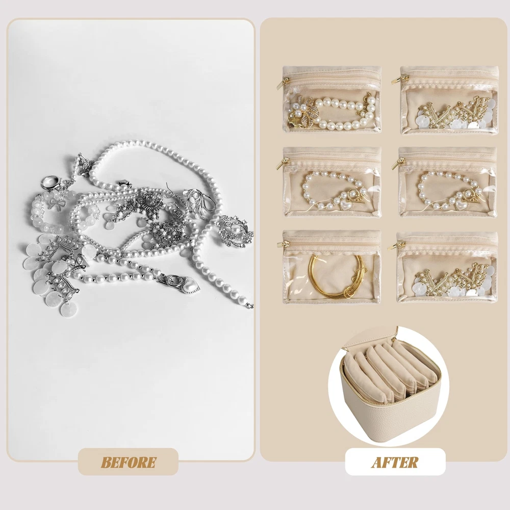 Travel Jewelry Case, Small Travel Jewelry Box with 6 Velvet Jewelry Bag Mini Pouch, Portable Travel Jewelry Organizer for Rings Earrings Necklaces, Beauty Gifts for Women Girls (Beige) - Buy Now with Fast Shipping! Travel Jewelry Case, Small Travel Jewelry Box with 6 Velvet Jewelry Bag Mini Pouch, Portable Travel Jewelry Organizer for Rings Earrings Necklaces, Beauty Gifts for Women Girls (Beige) Product Details Color: Beige Brand: WATANIYA HOME Material: Leather Style: Modern Special Feature: Portable Product Dimensions: 5.51"D x 5.51"W x 3.39"H Target Audience: Women Shape: Square Finish Type: Unfinished Inner Material: Faux Leather Color: ‎Beige Brand: ‎WATANIYA HOME Material: ‎Leather Style: ‎Modern Special Feature: ‎Portable Product Dimensions: ‎5.51"D x 5.51"W x 3.39"H Target Audience: ‎Women Shape: ‎Square Finish Type: ‎Unfinished Inner Material: ‎Faux Leather Number of Compartments: ‎8 Jewelry Storage Type: ‎Jewelry Case Manufacturer: ‎Shenzhen lechen times Culture Communication Co., L Occasion: ‎Travel Mounting Type: ‎Table Top Part Number: ‎JB01 Item Weight: ‎11.3 ounces Country of Origin: ‎China Item model number: ‎JB01 Finish: ‎Unfinished Special Features: ‎Portable Included Components: ‎box Batteries Included?: ‎No Batteries Required?: ‎No Date First Available: May 29, 2024 Key Features ✅ Quality Materials: This travel jewelry case set includes a size 5.1x 5.1x 3.3 inches supple PU leather jewelry box, 6 pcs velvet zipper jewelry bags, removable zipper head ✅ 6 Velvet Zipper Pouches: These mini pouches are well made and handy for packing all the jewelry you needed in travel. The soft touch velvet ensures that your jewelry won't get scratched and the clear front makes it easy to see what is inside ✅ Safe & Organized Storage: The travel jewelry organizer hold several individual zippered jewelry bags to keep your jewelry organized. Much more secure as zipper keeps things from falling out.It's also nice to keep necklaces in a different pouch to prevent tangling ✅ Multiple Use Scenarios: Do you like to plan your outfit and jewelry for each day in advance of your trip? You'll love the mini pouches in this jewelry box that neatly hold a lot of jewelry! The box itself could be used as a jewelry box at home. During the business trip, you just take a few pouches in your toiletry bag or suitcase for the plane ✅ Beauty Gift for Her: The jewelry organizer will be a decent gift for giving her on any occasion. Such as Christmas gift, Mother's Day gifts, Valentine's Day gifts, 6, 8 year old girl birthday gifts, anniversary gifts ,bridesmaids gifts for mother, lover, best friends, sister, wife Product Description