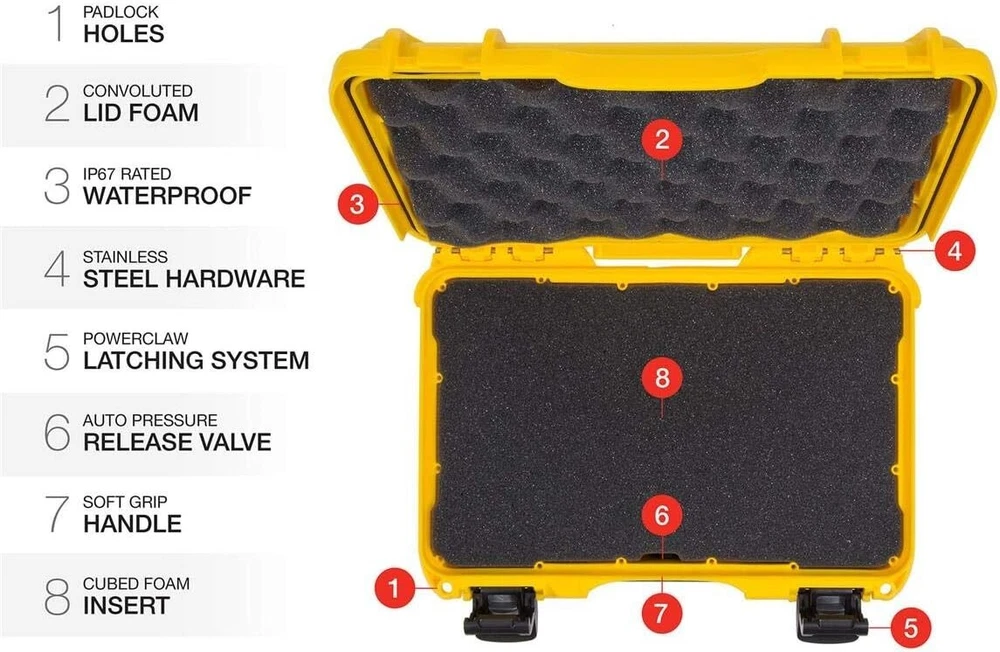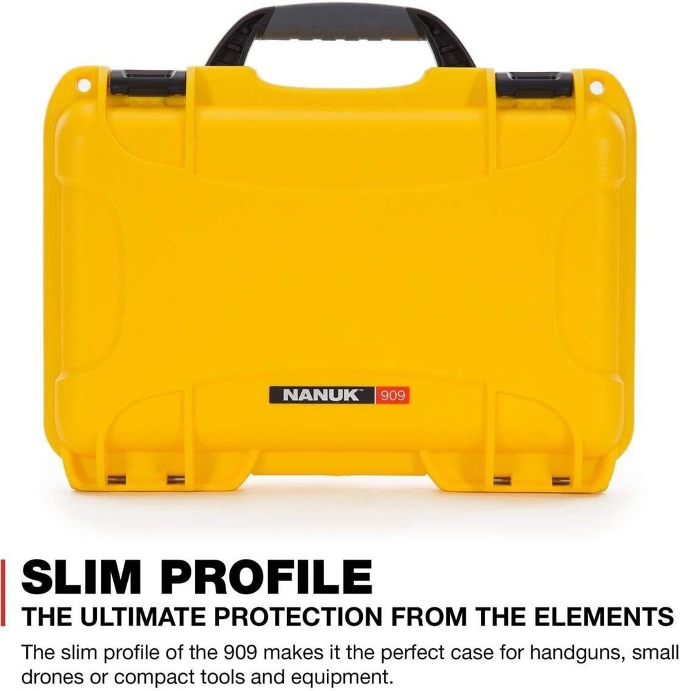 Color: Yellow Model: 909 Number Of Compartments: 1 Style: Cubed Foam Brand: Unbranded Maximum Underwater Depth: IP67 rated Global Trade Identification Number: 00666365020161 Item Diameter (Interior): 11.44 in Features: Water Resistant, Waterproof, Dustproof, Shockproof, Automatic Purge valve, Impact Resistant, Lifetime Guarantee, Lightweight, Compact, Stylish, Slim Profile Strap Type: Adjustable Item Weight: 1 lb UPC: Does Not Apply To Fit: Accessory: Tool, Handgun, Small Drone, Compact Tools, Equipment Type: Hard Case Pattern: Case Material: NK-7 Resin Department: Unisex-adult Closure Type: Toggle Product Dimensions: 12.64 X 9 X 4.38 Inches gtin13: Does Not Apply Shell Type: Hard