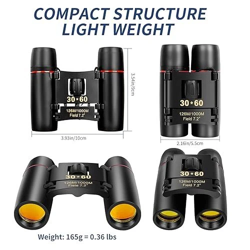Return Policy Fast Delivery Trusted seller Compact Binoculars, HD Mini Portable Outdoor Binoculars, Pocket Lightweight Folding Binoculars for Adults and Children Bird Watching Hunting, Watching Shows, Traveling and Tourism,... Product Description 【Suitable for Adults and Children】 - Mini compact binoculars are only 5.3 ounces, breaking away from the traditional large construction. They are small enough to fit in a pocket or travel bag. The binoculars come with their own neck strap, cleaning cloth and carrying case. You can use them anyw, anytime without being tied down. 【Wide and Clear Field of View】- Professional Ultra Wide Angle 30*60 Optical Binoculars with 12x magnification, using high quality Bak-4 prisms and optics for truer color reproduction and clearer observation images.126M/1000M large field of view provides maximum image brightness in low light and long distance conditions, allowing you to get amazingly clear details from birdwatching, wildlife, and exploring. 【Wide Application】- Compact binoculars are suitable for adults and children, bird watching, hunting, concerts, opera, theater, performances, opera houses, plays, shows, travel, hiking, camping, sporting events. The binoculars are made of high quality material and non-slip design, which ensures the pocket binoculars are durable, non-slip, shockproof and waterproof for outdoor activities. 【Sturdy and Non-Slip】- The powerful binoculars body is an aluminum alloy frame with non-slip armor made of high quality rubber, which ensures a comfortable grip and provides excellent resistance to impacts and drops. The fully sealed metal body is resistant to rain splashes (binoculars cannot be fully submerged in water), dust and debris. Perfect for outdoor activities such as bird watching, traveling, hunting and stargazing, as well as cruise ship rides. 【EASY TO USE】- The mini binoculars have a wide and smooth focusing knob for easy focusing, smooth center wheel and diopter adjustments, and come with a detailed operating guide that allows even novices to focus quickly. Children can also use it easily. Comes with a cord to hang around your neck. 【Great Gift】- Perfect for: opera, theater, performance, travel, hiking, wildlife, bird watching, soccer games, outdoor sports... It makes a great gift for birthdays, Mother's Day, Father's Day, Children's Day, Christmas. 【Package】:1*binoculars,1*clean cloth,1*manual,1*nylon bag,1*neck straps (installed) 【Lens Size】: Eyepiece: 12mm, Objective: 21mm Shipping Returns Payment Shipping Shipping is FREE to all addresses other than APO/PO boxes in the lower 48 states. All our stock ships from US-based warehouses. Shipped via USPS or UPS (depending on location and package weight) Unless stated otherwise, all orders will ship within 24-72 hours of your payment being processed. Check our feedback to see the great reviews of FAST shipping we offer. Returns Seller does not accept returns Payment We currently accept payment via eBay managed payments only. Once payment is cleared, we will dispatch your shipment within 1-3 business days. Please refer to the "Shipping" tab for more information regarding shipping speed to your destination.