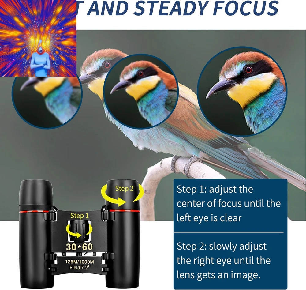 Store New Arrivals Add to Favorite View Feedback Contact Compact Binoculars, HD Mini Portable Outdoor Binoculars, Pocket Lightweight Folding Binoculars for Adults and Children Bird Watching Hunting, Watching Shows, Traveling and Tourism,... Description Age Range Description Adults and children Zoom Ratio 12 multiplier_x Special Feature Fog Proof, Portable, Lightweight, Foldable, Compact Design Color Black Size Map Compact Material Type Aluminum, Plastic, Metal, Rubber Coating FMC Multilayer Broadband Green Coating Item Dimensions L x W x H 3.9"L x 2.1"W x 3.54"H Specific Uses For Product Hiking and Outdoors, Bird Watching, Concert Item Weight 5.82 Ounces Exit-Pupil Diameter 1.75 Millimeters Age Range (Description) Adults and children Prism Type Roof Prism Magnification Maximum 12 x Objective Lens Diameter 21 Millimeters Water Resistance Level Water Repellent Focus Type Center Focus 【Suitable for Adults and Children】 - Mini compact binoculars are only 5.3 ounces, breaking away from the traditional large construction. They are small enough to fit in a pocket or travel bag. The binoculars come with their own neck strap, cleaning cloth and carrying case. You can use them anywhere, anytime without being tied down. 【Wide and Clear Field of View】- Professional Ultra Wide Angle 30*60 Optical Binoculars with 12x magnification, using high quality Bak-4 prisms and optics for truer color reproduction and clearer observation images.126M/1000M large field of view provides maximum image brightness in low light and long distance conditions, allowing you to get amazingly clear details from birdwatching, wildlife, and exploring. 【Wide Application】- Compact binoculars are suitable for adults and children, bird watching, hunting, concerts, opera, theater, performances, opera houses, plays, shows, travel, hiking, camping, sporting events. The binoculars are made of high quality material and non-slip design, which ensures the pocket binoculars are durable, non-slip, shockproof and waterproof for outdoor activities. 【Sturdy and Non-Slip】- The powerful binoculars body is an aluminum alloy frame with non-slip armor made of high quality rubber, which ensures a comfortable grip and provides excellent resistance to impacts and drops. The fully sealed metal body is resistant to rain splashes (binoculars cannot be fully submerged in water), dust and debris. Perfect for outdoor activities such as bird watching, traveling, hunting and stargazing, as well as cruise ship rides. 【EASY TO USE】- The mini binoculars have a wide and smooth focusing knob for easy focusing, smooth center wheel and diopter adjustments, and come with a detailed operating guide that allows even novices to focus quickly. Children can also use it easily. Comes with a cord to hang around your neck. 【Great Gift】- Perfect for: opera, theater, performance, travel, hiking, wildlife, bird watching, soccer games, outdoor sports... It makes a great gift for birthdays, Mother's Day, Father's Day, Children's Day, Christmas. 【Package】:1*binoculars,1*clean cloth,1*manual,1*nylon bag,1*neck straps (installed) 【Lens Size】: Eyepiece: 12mm, Objective: 21mm Product Description Comact small binoculars Mini Portable Compact Binoculars These mini binoculars are made with all optical glass, multi-coated ultra-clear film FMC broadband, vivid and transparent colors, high light transmission, no chromatic aberration, clear images and easy to focus perfect for children, adults, opera, concerts, theater, shows, travel, safari, bird watching, astronomy, camping, hiking, outdoor hunting, watching shows, walking, rock climbing, soccer basketball and other outdoor recreational activities . It's also great for kids on family outings for hiking or camping. FMC Optical Green Film - Super Clear BAK4 Prism All Glass Optics binoculars are made with all-optical glass to reduce light loss and glare while providing superior detail and contrast. The multi-coated FMC optical green film and ultra-sharp BAK4 prisms provide vivid and transparent colors, high light transmission, no chromatic aberration, clear images and fast focus. Lightweight and compact portability You can hold it in your hand, put it in your shirt and pants pocket, hang it around your neck, pin it on your belt. Large wide-angle field of view The large 126m/1000m field of view helps you see clear faces up to 410 feet away, perfect for outdoor activities such as bird watching, hunting, hiking, climbing, driving, traveling, wildlife and landscape viewing. High-definition vision Binoculars with high-end lens coatings provide excellent high-contrast images and great color reproduction, so you can see every detail in any situation you encounter during birdwatching. High-quality detail display Sturdy and non-slip, the telescope body is made of aluminum alloy and high quality rubber. Daily protection against rain and splash (can't be immersed in water), coated with rubber for shock resistance, firm and comfortable grip, durable and suitable for outdoor carrying. Suitable for a wide range of scenarios Compact binoculars for adults and children These mini binoculars are made with all optical glass, multi-coated ultra-clear film FMC broadband, vivid and transparent colors, high light transmission, no chromatic aberration, clear images and easy to focus perfect for children, adults, opera, concerts, theater, shows, travel, safari, bird watching, astronomy, camping, hiking, outdoor hunting, watching shows, walking, rock climbing, soccer basketball and other outdoor recreational activities . It's also great for kids on family outings for hiking or camping. Gifts for kids, family, friends Perfect Gifts for Adults and Kids, men and women. Compact binoculars are an ideal gift for adults, children, concerts, opera, theater, performances, travel, hiking, camping, sporting events and bird watching. Surprising them with their favorite binoculars can help them broaden their horizons, and these high-performance comp