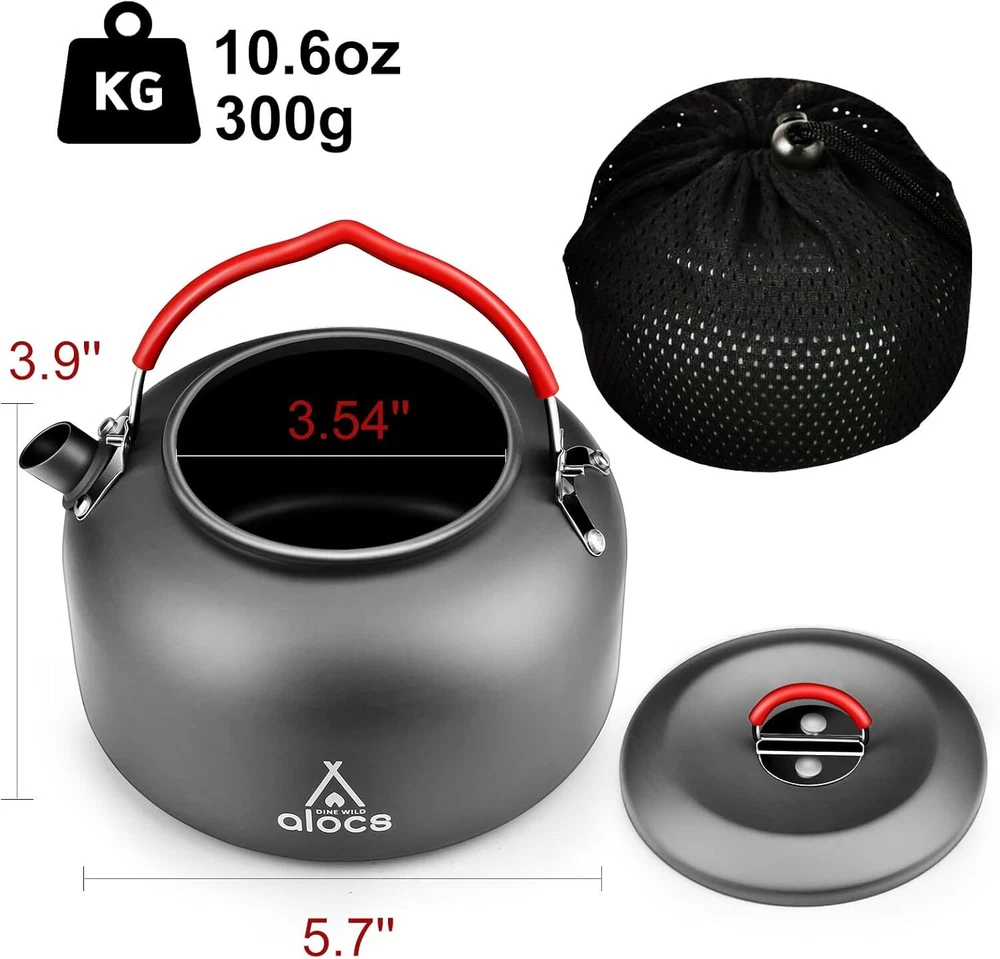 Product Description Camping Cookware Set Camping Gear with Kettle, Compact Camping Pots and Pans Set, Durable Hard Alumina Camping Cooking Set for Outdoor Backpacking Camping Hiking Picnic, Included Mesh Carry Bag. Durable & Healthy: This camping cookware is made of ultra-light hard alumina and food grade silicone material that meets European and American food safety standards, which is healthy and eco-friendly, high temperature resistant, scratch resistance, oxidation resistance. Lightweight & Portable: The compact camping cooking set is easy to fold and bundle for saving a lot of space of your backpack, making it easy to carry and store. ALocs camping essentials includes 4 camping pot with capacities of 2.2L, 1.2L, 1L, and 7.5"pan, 1.4L kettle. Our camping cookware set can be well placed in a backpack or a travel bag. Multi-ways for Cooking: The camping gear can be hung over the open fire. Perfect for camping, hiking, backpacking, picnic, etc. Since we do not use chemical layers, the ability of non-stick is limited. For some easily sticky ingredients, please try not to cook directly without oil. Heat-Resistant & Folding Handle: Camping pots and pans set comes with thermally insulated plastic handles keep your fingers safe from the heat. Anti-slip design offers a firm and comfortable grip in your hands. Welding Handles Attractive fashion and not weaker than riveting. Perfect Gift for Outdoor Fanatic: This lightweight and compact design of the Camp Kitchen Set makes it perfect for camping, backpacking, and picnics. The thread design on the bottom of the frypan helps save fuel by expanding the heating area. This camping cookware set is a must-have for any outdoor cooking enthusiast, enjoy at the cookout with the people you love. About Us We are a reputable seller with many years of experience selling on eBay. Our goal is to provide high-quality products and excellent customer service. Shipping Items will be shipped within 1-3 business days when we received payment. (Orders are not processed on weekends & holidays) Tracking information will be sent once item is shipped. Delivery time depends on destination and other factors Item is shipped to ebay address. Leaving correct address can minimize delay. For international shipping and shipping to Guam, Hawaii and Alaska, Please contact us before placing the order. International buyers please note: Import duties, taxes and charges are not included in the item price or shipping charges. These charges are buyer’s responsibility. We will try our best to reduce the risk of the custom duties. Local pick-up is unavailable at the moment. Contact Us We reply any email messages within 1 business / working days(off-duty at weekend). If you do not get a response from us, then please check your junk or spam mailbox. Our Business hours: Mon-Fri 9:00-18:00, UTC/GMT +8 hours. Please contact us either by clicking "contact seller" in the "purchase history" section or simply click "ask a question" at the bottom of this page. If you are unsatisfied with our item or service, please contact us before leaving any feedback. We are committed to resolve all issues in a friendly and satisfactory manner.
