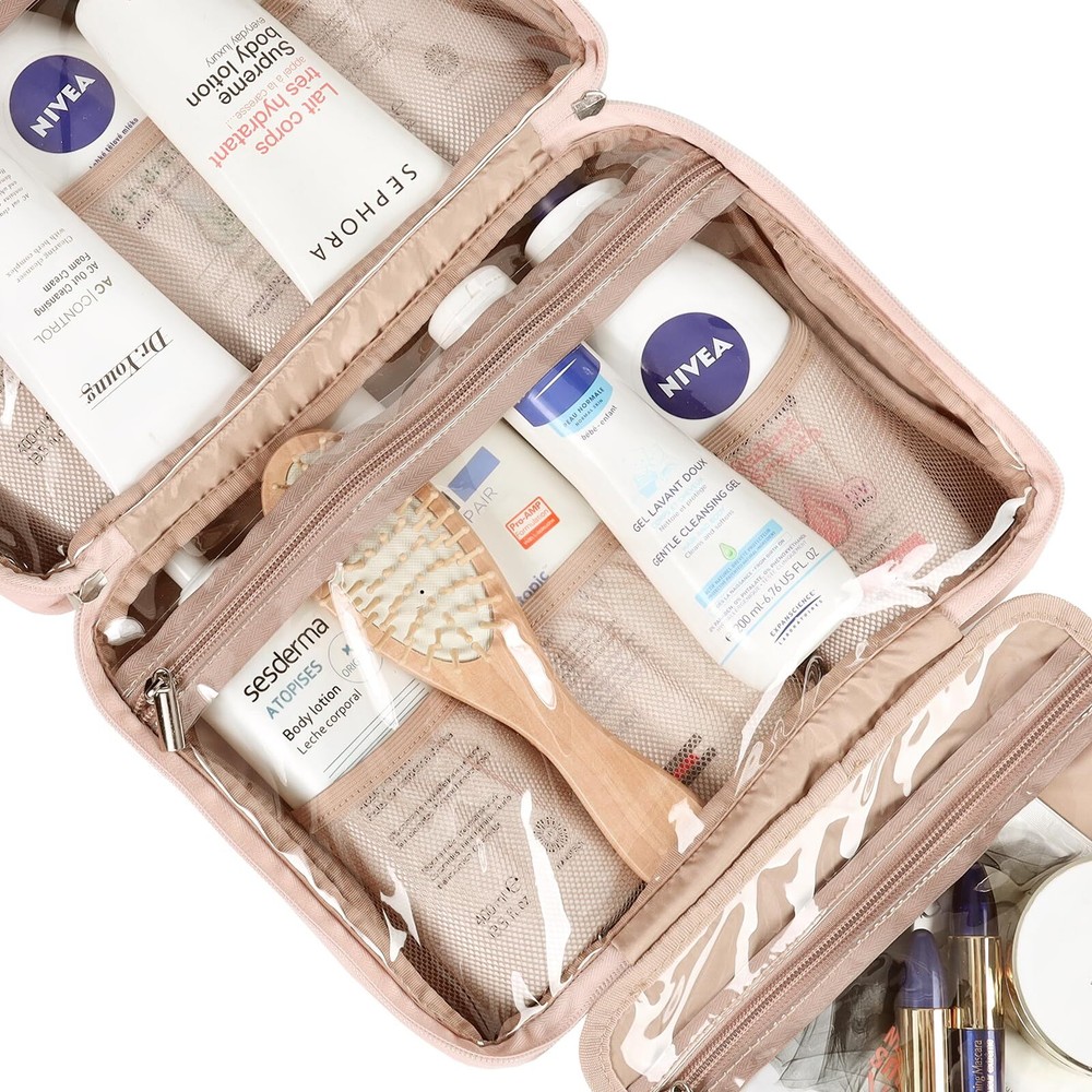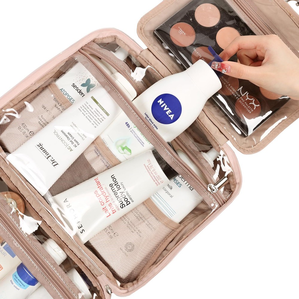 NISHEL Hanging Travel Toiletry Bag, Visible Makeup Organizer, Cosmetic Case for Journey Accessories, Bathroom Shower, Pink SPACIOUS CAPACITY - 12 x 4.5 x 9 inches (rolled), 12.5 x 35.5 inches (open). The space-efficient hanging toiletry bag can hold all your travel essentials: full-sized shampoo, Conditioner, and Skin care products MAKEUP BRUSHES & LAEGE EYESHADOW PALETTE SECTION - The sizeable front pocket is a special section for storing your 1 set of makeup brushes and large-size eyeshadow palette UNIQUE INTERIOR DESIGN - 2 main compartments with mesh pouches and elastic bands hold bottles upright. Different size elastic straps fit for sizes of bottles, easy to grab exactly what you need STURDY HOOK DESIGN - Special U-shape zippers design, take out the toiletries or zip up the toiletry case quickly. No more unpacking, digging through one bag, and laying your stuff on the bathroom counter. Just hang the bag up, grab what you need, and put it back in it SOFT & LIGHTWEIGHT MATERIAL - The outside material of the toiletry bag is soft to the touch and lightweight. You can pack this reasonably flat if you don't pack too much stuff, making it more suitable for travel. Definitely an ideal Christmas gift for yourself, your family, and your friend SHIPPING Domestic Buyers - We have confidence in our products, but if you are not fully satisfied please contact us within 30 days of purchase and you will get full refund. - We ship within 3 business days of payment, usually sooner - We offer FREE shipping on all orders! - We only ship to the lower 48 states, no APO/FPO addresses or PO Boxes allowed International buyers – please note: Import duties, taxes, and charges aren't included in the item price or postage cost. These charges are the buyer's responsibility. - Please check with your country's customs office to determine what these additional costs will be prior to bidding or buying. * Order Cancellation Policy ** You can return a product for up to 30 days from the date you purchased it. 1. The seller reserves the right to cancel the special case only due to eBay cancellation fee. 2. The decision of seller is the final. 3. The seller will respond to the cancellation request within 2 business days. Please wait for the result of cancellation. 4. In case the cancellation is not completed by some reasons, the buyer can follow the options below to get the refund. 4.1 The buyer can reject the item when it arrives. 4.2 The buyer can send the item back to the seller within 30 days If the buyer receives item (USA Shipment ONLY). The seller will provide the FREE return label to the buyer when the buyer opens " Return Item" case on eBay by using the reason as "Change my mind" ONLY. 5. When buyer has placed the order. The order will be processed and completed by automatic warehouse system within 5 minutes. In case that buyer sends the cancellation request after 5 minutes of placing the order, the request will be rejected. **Sending direct message to cancel the order is not allowed for every case.* Return Policy For the return case - If buyer would like to return the items for refund or replacement, please CONTACT SELLER to receive the free return label from seller. The refund or replacement will be processed with the tracking number of return label which is provided by seller only. The other ways of return which are not approved by seller will not be processed for the refund or replacement.
