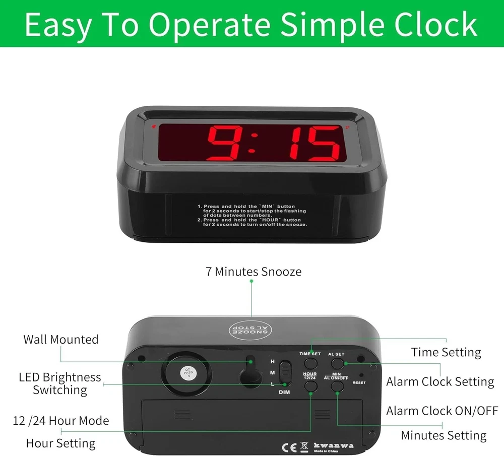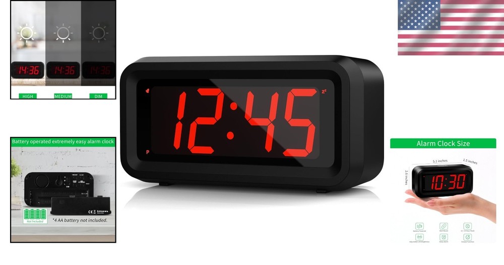 Compact LED Alarm Clock with Dim Night Mode and Clear 1.2'' Display for Bedroom ‹ › ‹ › ‹ › ‹ › ‹ › ‹ › ‹ › ‹ › ‹ › ‹ › ‹ › ‹ › ‹ › ‹ › Compact LED Alarm Clock Your Perfect Sleep Companion with Dim Night Mode and 1.2'' Clear Display Features: Powered by 4 x AA alkaline batteries (not included), providing a constant 1.2'' LED digit time display for over 12 . Bright and clear 1.2'' numbers ensure you can check the time from a distance or even in the dark. Intuitive, clearly marked buttons make it easy for kids and the elderly to set the time, alarm, and dimmer with ease. Snooze feature allows you to pause the alarm with a gentle touch, offering an extra 7-minute nap for those who desire just a moment more in bed. Three brightness levels (high/middle/low) to suit your preference, transitioning to a dim night mode from 8:00 PM to 6:00 AM to protect your eyes and save energy. Reliable alarm sound that crescendoes every 30 seconds for an effective wake-up call, ensuring you never oversleep. Versatile design for wall mounting or tabletop display, making it suitable for any bedroom, desk, or shelf. Benefits: Simple operation ideal for all ages, ensuring ease of use for everyone in the family. Peaceful nighttime environment with no blinding lights or annoying sounds to disturb your sleep. Perfect addition to bedrooms, nightstands, or desks, crafted to complement any decor. Outstanding time accuracy—less than +/-30s per —for reliability you can count on. An ideal gift for kids, teens, adults, or the elderly, making it a thoughtful choice for any occasion. Why Choose Our Compact LED Alarm Clock? If you're seeking a reliable alarm clock that combines elegance with functionality, our Compact LED Alarm Clock is the perfect choice. The easy-to-read display and user-friendly setup empower anyone in your family to manage their time effectively. Its low-light feature and gradual sound increase make it an ideal bedside companion for a peaceful night's sleep. Enhance your bedtime routine or gift the perfect accessory to your loved ones—order yours today and experience the difference in waking up refreshed every morning! Shipping Free & Fast Shipping - We offer free shipping to most of the USA with a normal delivery time of 3-7 days. However, due to the current situation, additional delivery time (up to 3 weeks) may be required for some items. Alternative Carriers - We may use alternative carriers (e.g. USPS, FedEx, UPS, etc.) to ensure your package arrives safely and on time. Due to the use of multiple carriers, we are unable to provide a tracking number automatically. Handling Time - Orders are processed and shipped within 1-2 business days of receiving cleared payment. Shipping Restrictions - Shipping to Alaska, Hawaii, Puerto Rico, Guam, and other US territories may incur shipping charges or delivery restrictions. Please contact us before ordering, or your order can be refunded/cancelled. State Restrictions - There may be restrictions based on your state of purchase. For example, certain items may not be shipped to California due to state regulations. Contact for Tracking Updates - If you require tracking updates or have any concerns about the delivery of your order, please feel free to contact us, and we will be happy to assist you. Return 30-Day Hassle-Free Returns - We want you to be completely satisfied with your purchase. If you are not, you can return the item within 30 days of receiving it for a full refund or exchange. Easy Return Process - To start a return, simply contact us and we will provide you with a prepaid return shipping label and detailed instructions. Restocking Fee - There are no restocking fees for returns. However, the buyer is responsible for return shipping costs if the return is not due to a seller's error. Refund Processing Time - Refunds will be processed within 5 business days of receiving the returned item in its condition. Payment We accept all major credit cards, PayPal, and Apple Pay for your convenience. Your payment information is secure and encrypted to ensure a safe and seamless transaction. Please complete your payment within 3 days of purchase to avoid any delays in shipping. Feedback Your feedback is extremely important to us. We strive to provide the best products and customer service possible. If you are satisfied with your purchase, please take a moment to leave us a positive review. If you have any concerns or issues with your order, please contact us before leaving negative feedback. We are committed to resolving any problems and ensuring your satisfaction. Contact Us If you have any questions or concerns, please feel free to out to our customer support team. You can contact us through the eBay messaging system. We are available Monday to Friday, 9:00 am to 5:00 pm EST, and we will do our best to respond to your inquiry within 24 hours. Buy it now and enjoy a pleasant shopping experience! Item Length: Alarm Clock Product Line: Alarm Clock Unit Quantity: 4.23 ounces Features: 12-Hour Display,Alarm,Battery Backup,Digital,Large Display,Snooze,Adjustable Brightness,Auto Dimmable,Night Mode,Cordless,Portable Size Theme: Numbers Room: Bathroom,Bedroom,Dining Room,Home Office/Study,Kitchen,Living Room,Porch,Utility/Laundry Room,Travel,Classroom,Kid's Room,Guest Room,Holiday House Material: Plastic,Wood Department: Kids,Teens,Adults Type: Standard Alarm Clock Display Type: Digital Color: Black Movement: Quartz (Battery Powered) Power Source: Battery Powered Style: Eclectic Frame Material: Wood Shape: Rectangular Protection Plan: No Coverage Item Weight: Less Than 1 lb Number Type: Arabic Numerals Unit Type: oz
