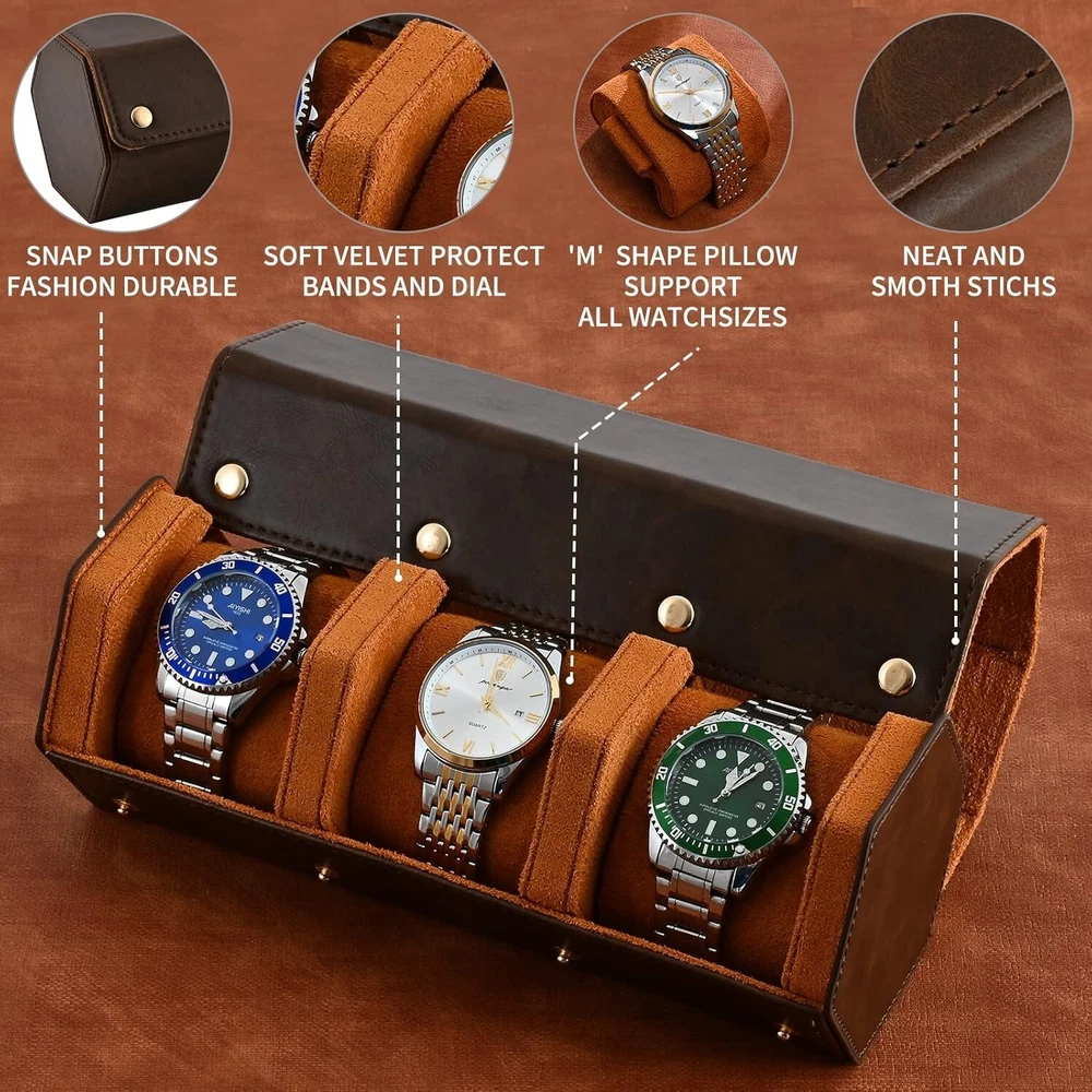 Compact Luxury Watch Roll for Travel - Holds 3 Watches in Brown Suede & Leather ‹ › ‹ › ‹ › ‹ › ‹ › ‹ › ‹ › ‹ › Compact Luxury Watch Roll for Travel ⌚ Holds 3 Watches in Elegant Brown Suede & Leather Pack your finest watches with confidence in our meticulously designed compact watch roll, ensuring you are prepared for every occasion with up to 3 exquisite timepieces. Features: Stylish and functional watch roll designed for the discerning traveler. Made from the most reliable and fashionable leather, complemented by luxurious velvet color matching. Soft suede interior provides optimal anti-scratching protection for your precious watches. Watch pillows secured with studs ensure that your timepieces remain stable and secure during travel. Compact size: 9"(L) x 3.35"(W) x 3.74"(H) makes it easy to fit in your luggage. Weighs just 1 pound, making it an effortless addition to your travel essentials. Enclosed in a classy hard white box, making it a perfect gift for watch enthusiasts or for yourself. Benefits: Outstanding protection from dust, spills, and minor falls, ensuring your watches remain in pristine condition. Convenient and stylish design to enhance your luxury watch collection. Easy to remove or replace watches without any hassle thanks to the secure yet accessible design. Satisfies your aesthetic sense while keeping functionality in mind. Why Choose Our Watch Roll? Elevate your travel experience with a watch roll that encapsulates both luxury and practicality. Each component is thoughtfully crafted to convey sophistication while safeguarding your beloved timepieces. With the ability to hold three watches, this compact beauty ensures you are ready for any occasion, be it formal gatherings or casual outings. Don't just travel with style—do it with peace of mind. This watch roll comes with a full 30-day money-back guarantee, allowing you to purchase with confidence. Add this indispensable accessory to your travel collection today! Shipping Free & Fast Shipping - We offer free shipping to most of the USA with a normal delivery time of 3-7 days. However, due to the current situation, additional delivery time (up to 3 weeks) may be required for some items. Alternative Carriers - We may use alternative carriers (e.g. USPS, FedEx, UPS, etc.) to ensure your package arrives safely and on time. Due to the use of multiple carriers, we are unable to provide a tracking number automatically. Handling Time - Orders are processed and shipped within 1-2 business days of receiving cleared payment. Shipping Restrictions - Shipping to Alaska, Hawaii, Puerto Rico, Guam, and other US territories may incur shipping charges or delivery restrictions. Please contact us before ordering, or your order can be refunded/cancelled. State Restrictions - There may be restrictions based on your state of purchase. For example, certain items may not be shipped to California due to state regulations. Contact for Tracking Updates - If you require tracking updates or have any concerns about the delivery of your order, please feel free to contact us, and we will be happy to assist you. Return 30-Day Hassle-Free Returns - We want you to be completely satisfied with your purchase. If you are not, you can return the item within 30 days of receiving it for a full refund or exchange. Easy Return Process - To start a return, simply contact us and we will provide you with a prepaid return shipping label and detailed instructions. Restocking Fee - There are no restocking fees for returns. However, the buyer is responsible for return shipping costs if the return is not due to a seller's error. Refund Processing Time - Refunds will be processed within 5 business days of receiving the returned item in its original condition. Payment We accept all major credit cards, PayPal, and Apple Pay for your convenience. Your payment information is secure and encrypted to ensure a safe and seamless transaction. Please complete your payment within 3 days of purchase to avoid any delays in shipping. Feedback Your feedback is extremely important to us. We strive to provide the best products and customer service possible. If you are satisfied with your purchase, please take a moment to leave us a positive review. If you have any concerns or issues with your order, please contact us before leaving negative feedback. We are committed to resolving any problems and ensuring your satisfaction. Contact Us If you have any questions or concerns, please feel free to reach out to our customer support team. You can contact us through the eBay messaging system. We are available Monday to Friday, 9:00 am to 5:00 pm EST, and we will do our best to respond to your inquiry within 24 hours. Buy it now and enjoy a pleasant shopping experience! UPC: Not Set Unit Quantity: 1 Material: Faux Leather,Suede Brand: Unbranded Type: Travel Pouch Color: Brown Capacity: 3 Watches Theme: Luxury Country/Region of Manufacture: Not Set Year Manufactured: Not Set MPN: Not Set Unit Type: lb Vintage: Not Set Handmade: Not Set Personalize: Not Set Personalized: Not Set