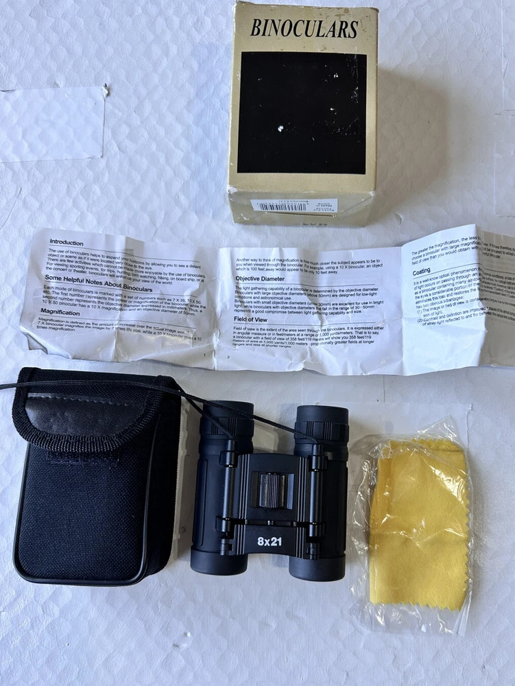 Compact Mini 8x21 Binoculars Multi-Coated Optical Lens. In Box W/Case. Like New Condition. Multi-Coated Optical Lens DCF Optics System Pouch & Strap Included