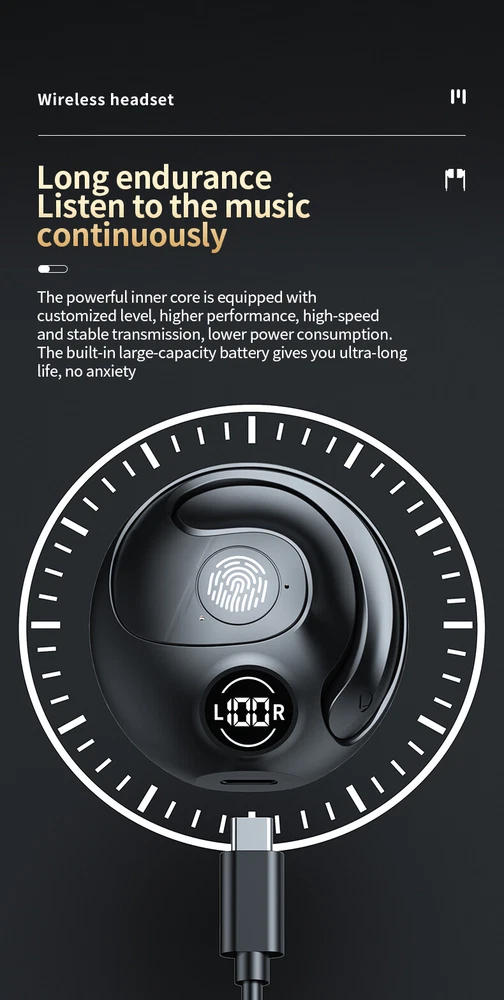 Feature: 🎧【Stable Bluetooth 5.3 & Wide Compatibility】: The headphones with earhooks have Bluetooth 5.3 capability for a strong and continuous connection within a 30ft range. The improved transmission speed ensures a low-latency listening experience. 🎧【Comfort for Sports 】: Our wireless headphones are engineered for ultimate comfort during extended workout sessions, featuring flexible and soft ear hooks that securely stay in place. 🎧【Immersive Stereo Sound 】: The wireless headphones bluetooth ear buds featuring 13mm double-layer diaphragm drivers deliver a powerful bass and super crisp sound and immerse yourself in superior sound quality. 🎧【One-Step Pairing & Touch Control】 : Open the wireless earphones charging case they'll automatically connect to the last paired device! By button the Bluetooth earphones to answer/hang up the phone, play/pause, Previous song/next song , volume up/down. Specification: Name: JR07 Bluetooth noise cancelling headphones Bluetooth version: 5.3 Bluetooth protocol: HFP1.7,1.2, A2DP1.3, AVRCP1.6, SPP1.2 and PBAP1.2, BDR/BLE Transmission distance: 10M Rated power: 50mW Power amplifier type: built-in chip Receiving sensitivity: 120dB Impedance: 32Ω Frequency Response: 20-20KHz Headphone battery capacity: 60mAh, 3.7V Charging case: 950mAh, 3.7V Charging time (h): about 2 hours Consumption time (h): 5 hours Standby time (h): 140 hours Charging standard: with charging case Package Includes: 1x Bluetooth Headset Set 1x Charging Case 1x Charging Cable 3x Size Earbuds 1x Lanyard 1x User Manual On Jul 1, 2024 at 02:35:45 PDT, seller added the following information: On Jul 24, 2024 at 19:12:08 PDT, seller added the following information: On Oct 17, 2024 at 05:03:11 PDT, seller added the following information: On Dec 4, 2024 at 23:39:50 PST, seller added the following information:
