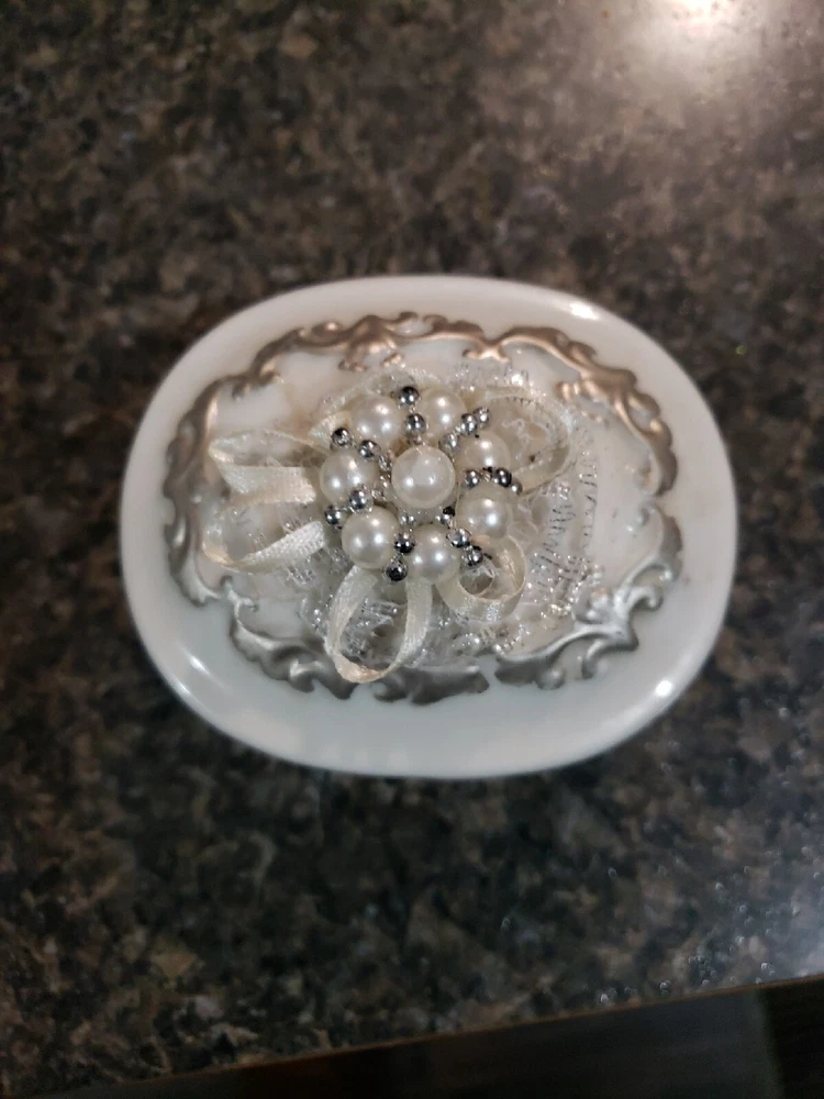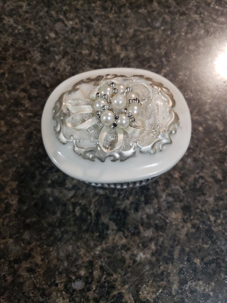 This small porcelain trinket box is perfect for storing your jewelry or other small treasures. Made from high-quality porcelain, it's both durable and elegant in design. With its compact size, it's ideal for travel or for display on your dresser or vanity. Measuring just a few inches in size, this trinket box is perfect for collectors of all types. Whether you're a fan of decorative collectibles or just looking for a unique way to store your jewelry, this porcelain container is sure to impress. Its intricate design and delicate beauty make it a great addition to any collection.