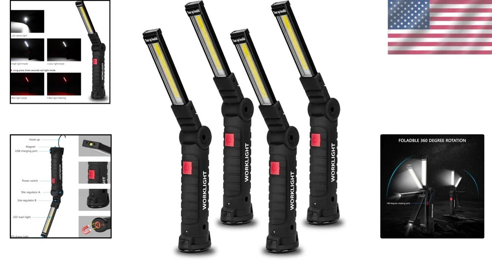 Compact & Rechargeable Work Lights with Magnetic Base - Ideal for Emergencies ‹ › ‹ › ‹ › ‹ › ‹ › ‹ › ‹ › ‹ › Compact & Rechargeable Work Lights with Magnetic Base Ideal for Emergencies Features: Constructed from durable hard rubber with an anti-sweat and anti-slip texture. Aluminum head effectively dissipates heat, extending the lamp's lifespan. Equipped with a built-in rechargeable battery, easily charged via included USB cable. Features 5 versatile lighting modes: High Brightness, Medium Brightness, Front Light, Red Warning, and Strobe Red. Benefits: Compact and foldable design, making it easy to transport and store. Strong magnetic base and a convenient hook allows for hands-free operation. Unique 270-degree rotation provides multi-angle illumination whenever and wherever you need it. Perfectly suited for a wide range of activities, including car repairs, home lighting, camping, hiking, and emergency situations. Risk-free purchase, with dedicated support for any issues within 12 months. Why choose our Compact & Rechargeable Work Light? When it comes to reliability and convenience, our Compact & Rechargeable Work Light with Magnetic Base is your ultimate companion in any situation. Made from high-quality materials, this work light offers not only durability but also versatility with its 5 distinct lighting modes, ensuring you have just the right light for any task. The incredible 360° rotary design, combined with a powerful magnet base and hook, gives you the freedom to illuminate your workspace without the need for another set of hands. Whether you're facing a power outage, need extra light for a camping adventure, or are conducting a delicate car repair, this work light shines bright. Do not hesitate—integrate this indispensable tool into your emergency kit and day-to-day life and experience the advantages firsthand. Order your Compact & Rechargeable Work Light now and be prepared for whatever comes your way! Shipping Free & Fast Shipping - We offer free shipping to most of the USA with a normal delivery time of 3-7 days. However, due to the current situation, additional delivery time (up to 3 weeks) may be required for some items. Alternative Carriers - We may use alternative carriers (e.g. USPS, FedEx, UPS, etc.) to ensure your package arrives safely and on time. Due to the use of multiple carriers, we are unable to provide a tracking number automatically. Handling Time - Orders are processed and shipped within 1-2 business days of receiving cleared payment. Shipping Restrictions - Shipping to Alaska, Hawaii, Puerto Rico, Guam, and other US territories may incur shipping charges or delivery restrictions. Please contact us before ordering, or your order can be refunded/cancelled. State Restrictions - There may be restrictions based on your state of purchase. For example, certain items may not be shipped to California due to state regulations. Contact for Tracking Updates - If you require tracking updates or have any concerns about the delivery of your order, please feel free to contact us, and we will be happy to assist you. Return 30-Day Hassle-Free Returns - We want you to be completely satisfied with your purchase. If you are not, you can return the item within 30 days of receiving it for a full refund or exchange. Easy Return Process - To start a return, simply contact us and we will provide you with a prepaid return shipping label and detailed instructions. Restocking Fee - There are no restocking fees for returns. However, the buyer is responsible for return shipping costs if the return is not due to a seller's error. Refund Processing Time - Refunds will be processed within 5 business days of receiving the returned item in its original condition. Payment We accept all major credit cards, PayPal, and Apple Pay for your convenience. Your payment information is secure and encrypted to ensure a safe and seamless transaction. Please complete your payment within 3 days of purchase to avoid any delays in shipping. Feedback Your feedback is extremely important to us. We strive to provide the best products and customer service possible. If you are satisfied with your purchase, please take a moment to leave us a positive review. If you have any concerns or issues with your order, please contact us before leaving negative feedback. We are committed to resolving any problems and ensuring your satisfaction. Contact Us If you have any questions or concerns, please feel free to reach out to our customer support team. You can contact us through the eBay messaging system. We are available Monday to Friday, 9:00 am to 5:00 pm EST, and we will do our best to respond to your inquiry within 24 hours. Thank you for supporting our small family business! UPC: Not Set Voltage: 3.7 volts Item Height: Not Set Item Length: Not Set Item Weight: 150 grams Item Width: Not Set Model: Not Set Lumens: Not Specified Number of LEDs: Not Specified Unit Quantity: 4 Material: Aluminum,Rubber Features: Magnetic,Rechargeable,Durable,Rotating,Hook,5 Modes Brand: Unbranded Type: Flashlight Lighting Technology: LED Power Source: Battery Operating Range: Not Specified MPN: Not Set Number of Batteries: 1 Lithium Ion Batteries Required. (included) Battery Technology: Lithium Ion Color: Black Country/Region of Manufacture: Not Set Operating Time: Not Specified IP Rating: Not Specified Number of Lights: Not Specified Unit Type: Not Set Personalize: Not Set