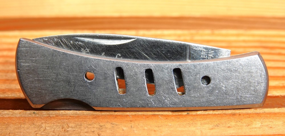 Folder is in very good, used condition with a full length blade, it is straight and not screwdrivered! Edge is razor sharp. The knife has a release button to close but this blade does not lock out when deployed, I cant find any reason why it wont so I think it was manufactured this way. Knife snaps open and shut very nice and clickity slick. Tool is clean with no funk or junk inside; this is ready to go in your pocket for your day at work. These are made in Seki, Japan. Tool measures 5 inches open and 2.75 inches closed. Have fun! SEE MY OTHER FUN AND COLLECTIBLE POCKET KNIVES IN MORE LISTINGS!!! TO GOD GO ALL THE GLORY!!!