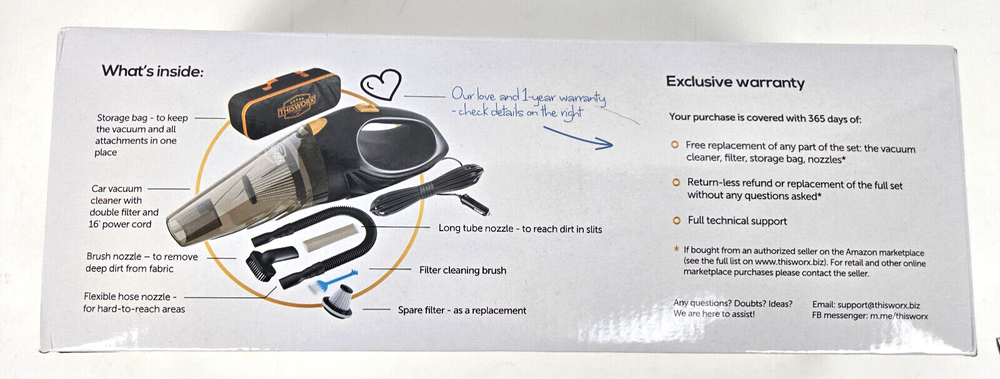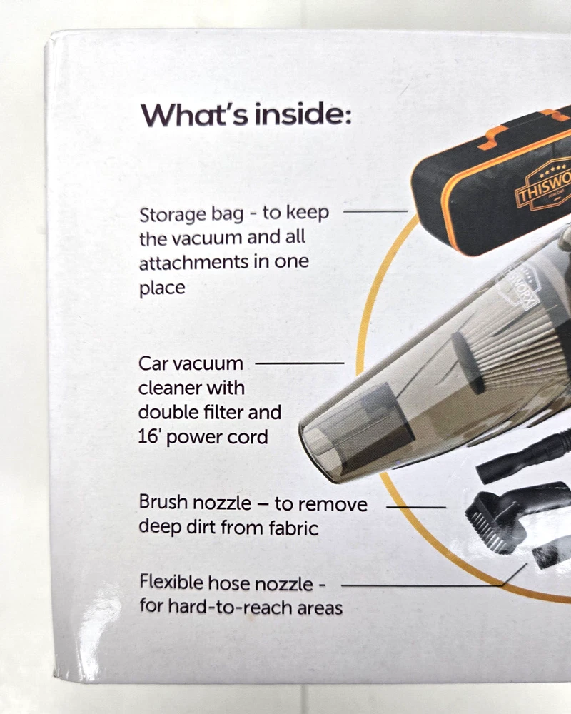 ThisWorx for TWC-01 12V Car Vacuum Cleaner-Portable, Mini Handheld Vacuum, Black Great Pre-Owned Condition - The box has been opened but the item has never been used
