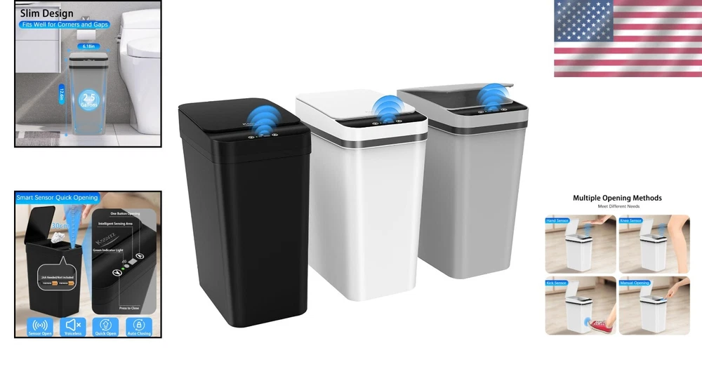 Compact Touchless 3-Pack Trash Bins - 2.5 Gallon Motion Sensor Design ‹ › ‹ › ‹ › ‹ › ‹ › ‹ › ‹ › ‹ › ‹ › Compact Touchless 3-Pack Trash Bins - 2.5 Gallon Motion Sensor Design Key Features: Advanced Motion Sensor: Utilize infrared sensing technology for an effortless, touchless experience. Opens automatically within 0.1 seconds and closes the lid after 5 seconds of inactivity. 3-Pack Convenience: Ideal for every room in your home, this set of three trash bins offers the perfect compact size for bathrooms, kitchens, bedrooms, and living rooms. Sturdy & Waterproof: Made from high-quality ABS material, these bins are built to withstand wear and tear. The IPX5 waterproof rating ensures durability even in splash-prone environments. Slim & Odor-Free: Perfectly sized at 9.2"(L) x 6.2"(W) x 12.6"(H) with a 2.5-gallon capacity, these bins fit easily into tight spaces while effectively isolating odors from garbage. Versatile & Practical: Designed for everyday use, these bins are ideal for bathrooms, bedrooms, offices, and beyond. Their stackable construction makes for easy transport and storage, while the simple design ensures easy cleaning. Why Choose Our Touchless Trash Bins? Elevate your waste disposal experience with our Compact Touchless 3-Pack Trash Bins. Each bin is designed for ultimate convenience, providing a touchless operation that helps maintain cleanliness in your home. With the ability to seamlessly fit into any space and an odor-proof design, these bins are perfect for those who value both functionality and elegance. Transform your living environment today and embrace the convenience of modern waste management. Don’t wait any longer - order your 3-Pack Touchless Trash Bins now and walk into a cleaner, fresher lifestyle! Shipping Free & Fast Shipping - We offer free shipping to most of the USA with a normal delivery time of 3-7 days. However, due to the current situation, additional delivery time (up to 3 weeks) may be required for some items. Alternative Carriers - We may use alternative carriers (e.g. USPS, FedEx, UPS, etc.) to ensure your package arrives safely and on time. Due to the use of multiple carriers, we are unable to provide a tracking number automatically. Handling Time - Orders are processed and shipped within 1-2 business days of receiving cleared payment. Shipping Restrictions - Shipping to Alaska, Hawaii, Puerto Rico, Guam, and other US territories may incur shipping charges or delivery restrictions. Please contact us before ordering, or your order can be refunded/cancelled. State Restrictions - There may be restrictions based on your state of purchase. For example, certain items may not be shipped to California due to state regulations. Contact for Tracking Updates - If you require tracking updates or have any concerns about the delivery of your order, please feel free to contact us, and we will be happy to assist you. Return Please see our eBay Return Policy. Thank you. Payment We accept all major credit cards, PayPal, and Apple Pay for your convenience. Your payment information is secure and encrypted to ensure a safe and seamless transaction. Please complete your payment within 3 days of purchase to avoid any delays in shipping. Feedback Your feedback is extremely important to us. We strive to provide the best products and customer service possible. If you are satisfied with your purchase, please take a moment to leave us a positive review. If you have any concerns or issues with your order, please contact us before leaving negative feedback. We are committed to resolving any problems and ensuring your satisfaction. Contact Us If you have any questions or concerns, please feel free to reach out to our customer support team. You can contact us through the eBay messaging system. We are available Monday to Friday, 9:00 am to 5:00 pm EST, and we will do our best to respond to your inquiry within 24 hours. Thank you for supporting our small family business! UPC: Not Set Unit Quantity: 2.5 Gallon Room: Bathroom,Bedroom,Kitchen,Living Room,Office Material: Plastic,ABS Features: Automatic,Stackable,Motion Sensor,Touchless,Waterproof,Odor Free Suitable For: General Waste,Indoor Brand: Unbranded Item Height: Automatic Bathroom Trash Can Item Length: Automatic Bathroom Trash Can Item Width: Automatic Bathroom Trash Can Type: Trash Can Color: Black Capacity: 2.5 Gallon Size: Small Number of Compartments: 1 Model: Not Set Item Weight: 2.2 lb MPN: Not Set Shape: Rectangle Style: Modern Pattern: Not Set Country/Region of Manufacture: Not Set Finish: Polished Unit Type: gal Personalize: Not Set