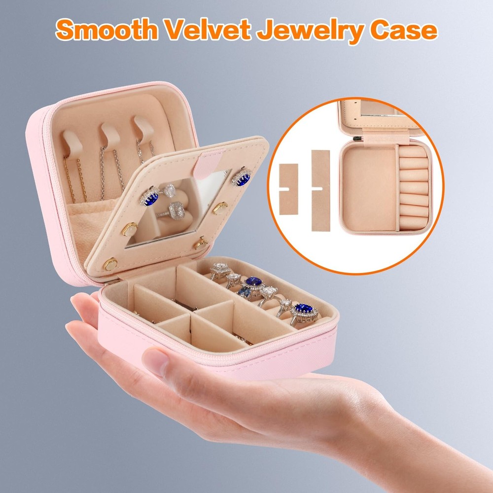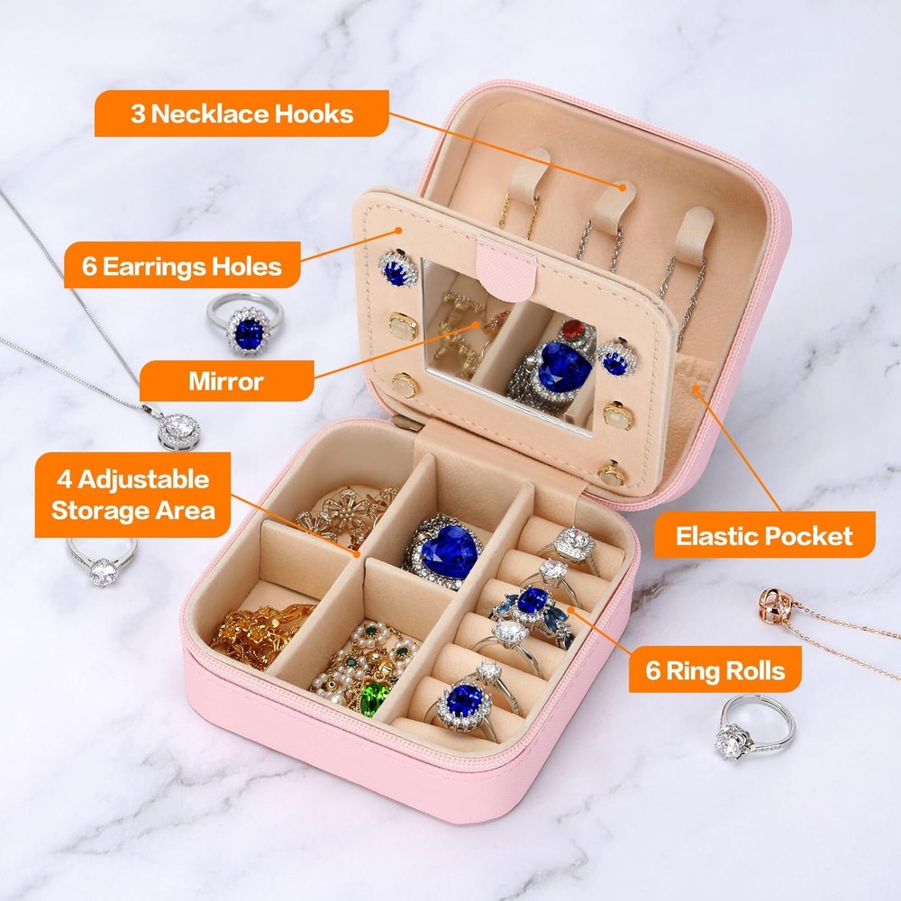 Small Travel Jewelry Box Organizer with Mirror, Women Teen Girl Gifts Trendy Stuff, Double Layer Portable Travel Case Display Storage Holder Boxes for Stud Earrings, Rings, Necklaces, Bracelets (Z) - Buy Now with Fast Shipping! Small Travel Jewelry Box Organizer with Mirror, Women Teen Girl Gifts Trendy Stuff, Double Layer Portable Travel Case Display Storage Holder Boxes for Stud Earrings, Rings, Necklaces, Bracelets (Z) Product Details Color: Z Brand: LETURE Material: Faux Leather Style: Modern Special Feature: Portable, Jewelry Organizer, Waterproof, Dustproof, Mirror Recommended Uses For Product: Necklace, Bracelet, Ring, Watch, Earring Product Dimensions: 3.9"D x 3.9"W x 2"H Target Audience: Women, Girls Finish Type: Polished Inner Material: Velvet Color: Z Brand: LETURE Material: Faux Leather Style: Modern Special Feature: Portable, Jewelry Organizer, Waterproof, Dustproof, Mirror Recommended Uses For Product: Necklace, Bracelet, Ring, Watch, Earring Product Dimensions: 3.9"D x 3.9"W x 2"H Target Audience: Women, Girls Finish Type: Polished Inner Material: Velvet Number of Drawers: 2 Number of Compartments: 3 Jewelry Storage Type: Jewelry Box Number of Items: 1 Manufacturer: LETURE Occasion: Wedding, Christmas, Anniversary, Birthday, Valentine's Day Closure Type: Flip Top Lid Part Number: LT-SSH79-CIXIU Item Weight: 4.6 ounces Country of Origin: China Item model number: LT-SSH79-CIXIU Finish: Polished Special Features: Portable, Jewelry Organizer, Waterproof, Dustproof, Mirror Included Components: Small Jewelry Organizer Batteries Required?: No Date First Available: September 19, 2023 Key Features ✅ EXCLUSIVE A-Z LETTER DESIGN - Each letter of the jewelry box has a special meaning, so this travel jewelry case can become a special personalized gift and a meaningful keepsake. Let your beloved one know that she is the most important person to you. ✅ HIGH QUALITY MATERIAL - Made from high quality deluxe synthetic PU leather exterior, a high-grade synthetic leather that almost looks like the real thing. So there is no need to worry about the jewelry getting wet and fading. The interior of our jewelry box is made from high-quality dusty pink velvet for a soft and luxurious feel. ✅ PERFECT UNIQUE GIFTS for WOMEN GIRL- This initial jewelry case is a unique gift for mom, grandma, sister, daughter, wife, girlfriend, cousin, bridesmaid, friend and others you love on Valentine's Day, Mother's Day, Christmas, Wedding Day and anniversaries. ✅ TRAVEL SIZE & DOUBLE LAYER DESIGN - Size 3.9*3.9*2inch/10*10*5cm, Simple and compact design with elegant outlook. This jewelry organizer is portable and light weight,easy to carry in your handbags or in your luggage. ✅ NO MORE ANNOYING KNOTS - This travel jewelry box can keep your jewelry organized and prevent your necklaces from tangling. The lightweight and compact case comes with 7 slot rolls and 4 rectangular divisions that can be removed, which makes it easier to store items. Add 6 stud earring compartments, 3 necklace hooks, and 1 mini vanity mirror. Product Description