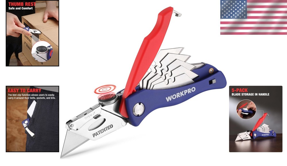 This compact utility knife is a game-changer! The ergonomic grip feels secure, and the quick blade change makes swapping effortless. Comes with five extra blades—perfect for any cutting task. Lightweight yet sturdy, it’s my new go-to tool for home and work. Highly recommend!