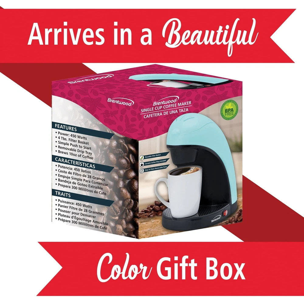 You may also like Programmable Drip Coffee Maker Auto Shut-off Keep Warm 12 Cup Capacity New 94.48 USD Free shipping 12-Cup Drip Coffee Maker 4 Pack 30-second Anti-drip Function Indicator Light 75.43 USD 79.4 USD Free shipping 5% off Black 12-Cup Drip Coffee Maker Auto Keep Warm Removable Filter Dishwasher Safe 75.43 USD 79.4 USD Free shipping 5% off Drip Coffee Maker W/ Sneak-A-Cup Programmable Timer Auto Clean & Shut-Off New 55.33 USD Free shipping 5-in-1 Coffee Maker Pod/Ground Brew Single Cup Carafe Touchscreen Auto Shut-off 118.7 USD 124.95 USD Free shipping 5% off 12 Cup Stainless Steel Coffee Percolator Easy Pour Keep Warm Cord-Free Brewing 56.99 USD 59.99 USD Free shipping 5% off 5 Cup Programmable Coffee Maker Auto Shut Off Brew Now Later Mini Coffee Machine 52.39 USD 55.15 USD Free shipping 5% off Home Office Programmable 5-Cup Coffee Maker 25 oz. Mini Brew Compact Black US 51.87 USD 54.6 USD Free shipping 5% off Programmable 12 Cup Coffeemaker W/ Auto Brew Sneak Cup Duralife Carafe Glass New 61.5 USD 64.74 USD Free shipping 5% off Black 12 Cup Drip Coffee Maker w/Anti-Drip Function for Office US 23.38 USD 24.61 USD Free shipping 5% off 5-Cup Coffee Maker Compact Design Easy-Clean Ergonomic Carafe Drip-Free Pouring 28.46 USD 29.96 USD Free shipping 5% off 12-Cup Coffee Maker Auto Pause Water Level Indicator Easy Clean Filter Basket US 36.57 USD 38.49 USD Free shipping 5% off Brew up a quick cup of coffee with the Single Cup Coffee Marker. Don't wait for an entire pot to brew, just add a spoonful of your favorite coffee and you have a full mug in minutes. Easy access water tank with removable drip tray and brew basket for easy cleaning. Comes with porcelain mug and measuring spoon so you have the perfect cup each time. This compact coffee maker is perfect dorm rooms, offices and RV's. Item Dimensions: 8.50" x 6.50" x 9.00" Item Weight: 1.60lbs Removable filter and filter holder Reusable filter capacity- 4tbsp Includes drip tray You may also like Heavy Duty Plastic Hangers 4 Notches 25 Pack Space Saving Closet Organizer New 28.4 USD 29.9 USD Free shipping 5% off 4-Slice Belgian Waffle Maker Nonstick Plates Adjustable Temperature Big Batch US 48.96 USD 51.54 USD Free shipping 5% off Mountable Paper Towel Holder Portable Design Easy Install Space Saving RV Home 16.98 USD 17.87 USD Free shipping 5% off Savory Saffron Green 2PC Stoneware Bakeware Set Oven to Table Microwave Safe New 43.79 USD 46.1 USD Free shipping 5% off Petites Wet Cat Food Grilled Chicken Rice in Gravy 2 Pack Easy Serve Trays New 27.93 USD 29.4 USD Free shipping 5% off Lot of 2 Natural Bamboo Quiote Bird Nesting Material Logs Parrots & Small Birds 25.4 USD 26.74 USD Free shipping 5% off Baby Bath Kneeler Elbow Saver Foam Padding Adjustable Suction Cups W/ Pockets US 47.4 USD 49.89 USD Free shipping 5% off Airtight Plastic Storage Container Clear Ribbed 15.8 Cup Pantry Organizer New 11.48 USD 12.08 USD Free shipping 5% off Carnival Stripe Indoor Rug Eco-Friendly Stain Resistant Low Pile Tufted 3x5 New 24.8 USD 26.11 USD Free shipping 5% off Breast Milk Storage Solution Set 50 Pieces BPA Free Breastfeeding Containers New 33.23 USD 34.98 USD Free shipping 5% off Super Stacker Storage Box W/ Divided Tray Stackable Organizer Office Home Use 24.01 USD 25.27 USD Free shipping 5% off Stroller Snack Tray W/ Removable Cup Convenient Child Feeding Accessory New 47.4 USD 49.89 USD Free shipping 5% off