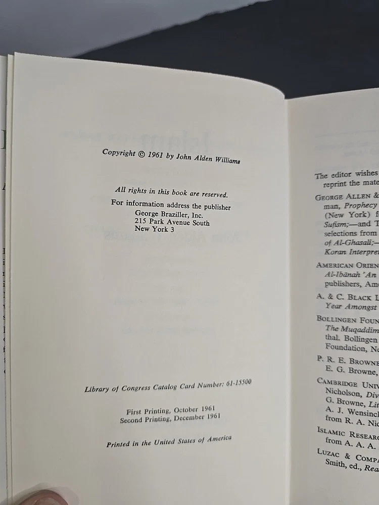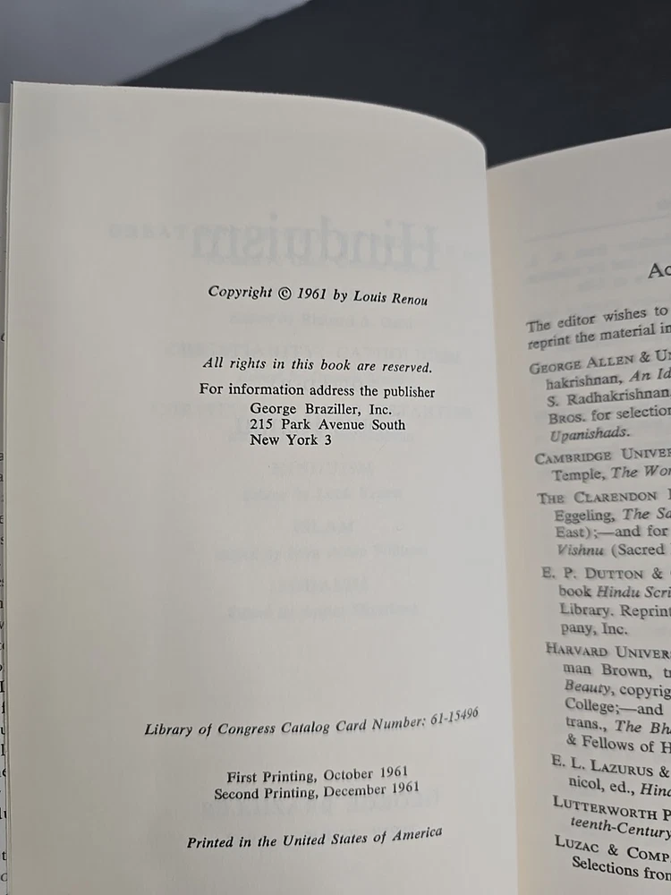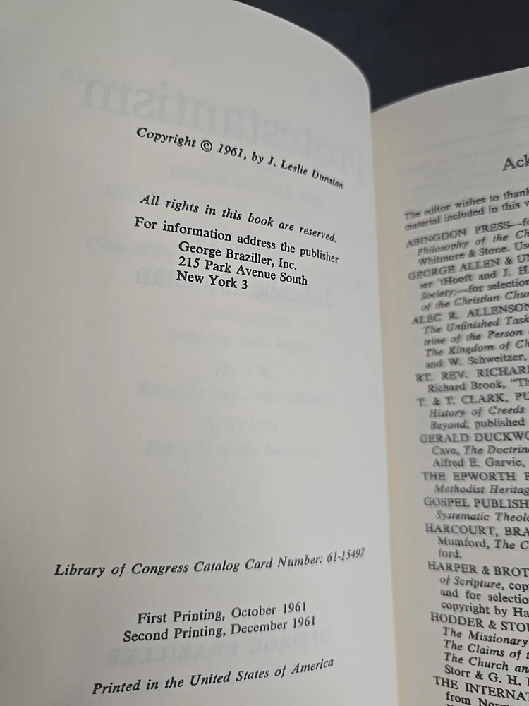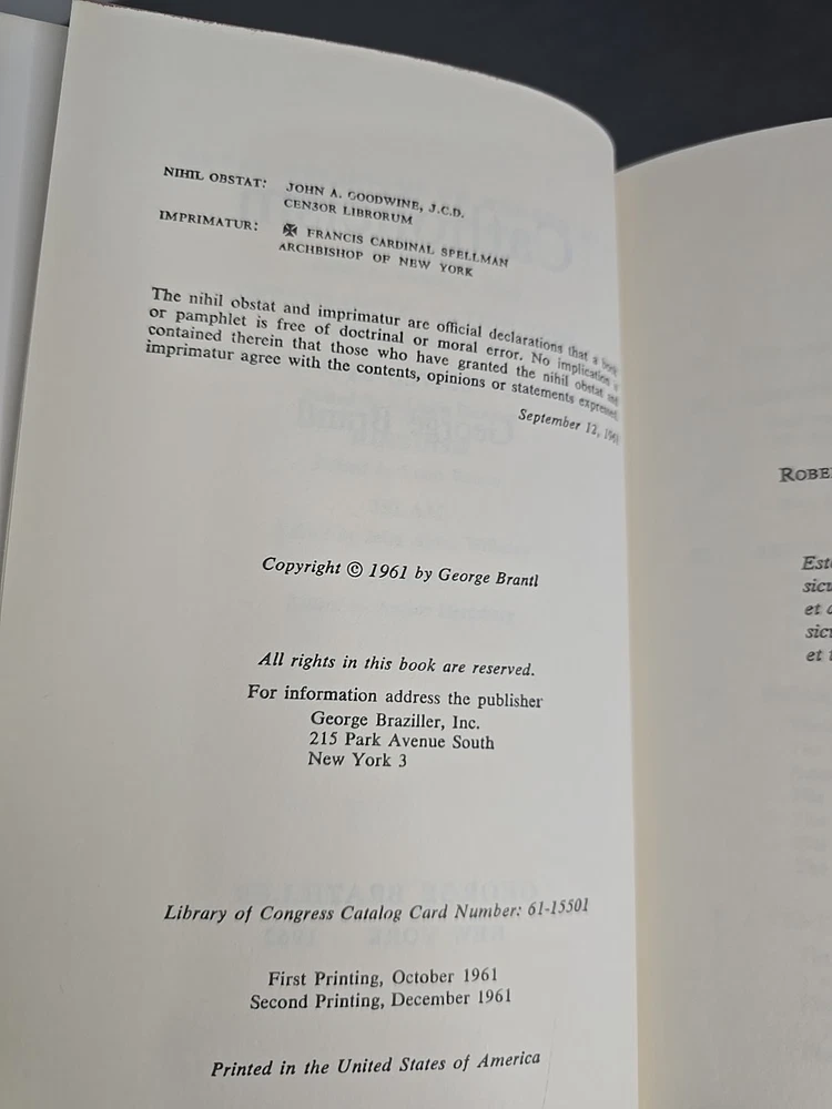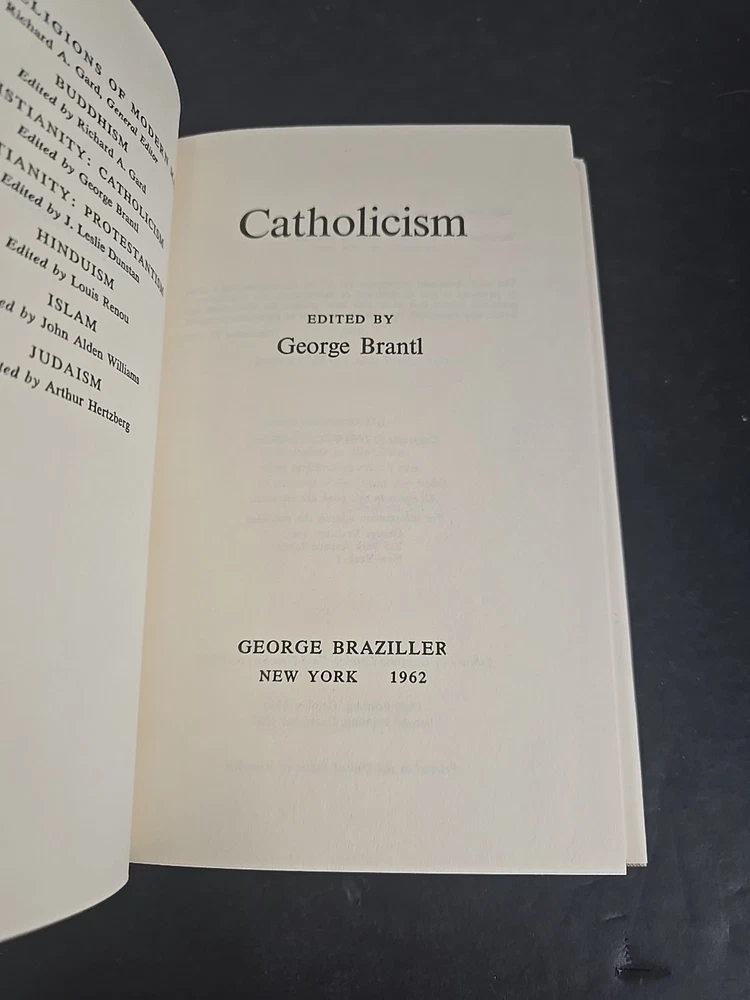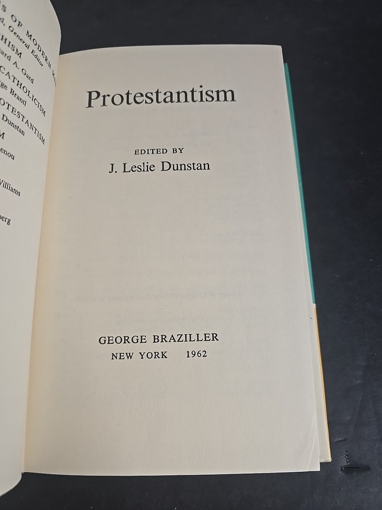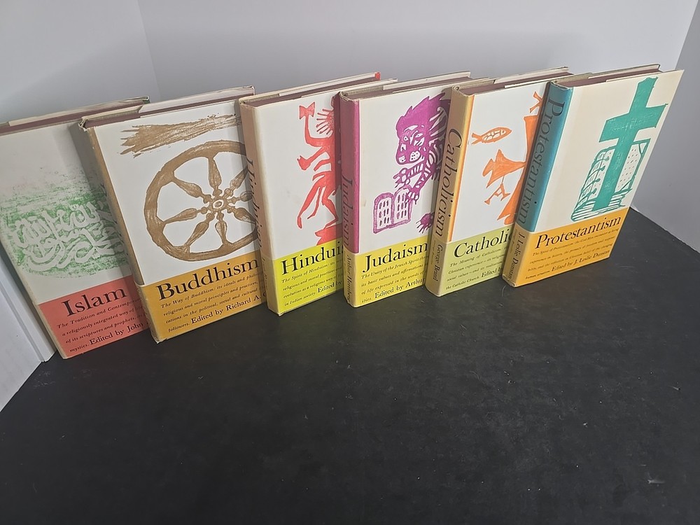 Offered here is a complete 6-volume set from the Comparative Religion series, published by George Braziller in 1961. Each volume provides a scholarly yet accessible introduction to a major world religion: Protestantism by J. Leslie Dunstan Catholicism by George Brantl Judaism by Arthur Hertzberg Hinduism by Louis Renou Islam by John A. Williams Buddhism by Richard A. Gard This particular set features matched second printings from December 1961, each volume in exceptionally well-preserved condition and housed in the original publisher's slipcase. Condition Note: Books are closer to Like New, with tight bindings, clean pages, and crisp boards. Dust jackets show only minor shelf wear, and the slipcase is fully intact with light external rubbing. This set presents beautifully and has clearly been stored with care. Comparison Note: Similar matched sets in lesser condition have recently sold in the $60–$80 range on Biblio and Etsy. Many of those lack slipcases or have heavy wear. This set's excellent preservation and complete presentation make it a standout collectible.