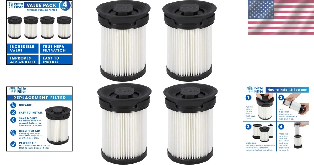 Compatible HEPA Filter Replacement - 4-Pack for Miele TriFlex HX1 Models ‹ › ‹ › ‹ › ‹ › ‹ › ‹ › ‹ › ‹ › ‹ › ‹ › Compatible HEPA Filter Replacement - 4-Pack Designed for Miele TriFlex HX1 Models Optimal Filtration: Experience exceptional dust filtration with this 4-pack of HEPA vacuum filters and pre-filters, specifically engineered for use with Miele TriFlex HX1 FSF Pro Cat & Dog Cordless Stick Vacuum Cleaners. Compatible Replacement: Meticulously crafted to fit Miele TriFlex HX1 FSF Pro Cat & Dog models, including part numbers #11289902 , #11385020 , and #41996704EU1 . Ensures seamless compatibility for effortless replacement, so you can maintain your vacuum's performance with ease. Improved Air Quality: Utilizes advanced HEPA filtration technology to effectively capture and trap fine particles and dust, promoting a cleaner living environment. Contribute to a healthier home for you and your family with superior air quality. Long-lasting Performance: Crafted for durability, each filter is designed to provide long-lasting performance, preserving the efficiency of your Miele TriFlex HX1 vacuum. Ensure consistent cleaning power and peak operational efficiency. Easy Installation: Enjoy quick and hassle-free installation of these replacement filters. Keep your Miele TriFlex HX1 in prime condition effortlessly. What You Need to Know: Please note that the pre-filter is located inside the HEPA filter and must be removed from the vacuum during installation. Your package will include 4 replacement filters compatible with Miele TriFlex HX1 series. Upgrade your cleaning routine today with our Compatible HEPA Filter Replacement - designed for optimal performance and air quality enhancement. Order now to create a cleaner, healthier home! Shipping Free & Fast Shipping - We offer free shipping to most of the USA with a normal delivery time of 3-7 days. However, due to the current situation, additional delivery time (up to 3 weeks) may be required for some items. Alternative Carriers - We may use alternative carriers (e.g. USPS, FedEx, UPS, etc.) to ensure your package arrives safely and on time. Due to the use of multiple carriers, we are unable to provide a tracking number automatically. Handling Time - Orders are processed and shipped within 1-2 business days of receiving cleared payment. Shipping Restrictions - Shipping to Alaska, Hawaii, Puerto Rico, Guam, and other US territories may incur shipping charges or delivery restrictions. Please contact us before ordering, or your order can be refunded/cancelled. State Restrictions - There may be restrictions based on your state of purchase. For example, certain items may not be shipped to California due to state regulations. Contact for Tracking Updates - If you require tracking updates or have any concerns about the delivery of your order, please feel free to contact us, and we will be happy to assist you. Return 30-Day Hassle-Free Returns - We want you to be completely satisfied with your purchase. If you are not, you can return the item within 30 days of receiving it for a full refund or exchange. Easy Return Process - To start a return, simply contact us and we will provide you with a prepaid return shipping label and detailed instructions. Restocking Fee - There are no restocking fees for returns. However, the buyer is responsible for return shipping costs if the return is not due to a seller's error. Refund Processing Time - Refunds will be processed within 5 business days of receiving the returned item in its original condition. Payment We accept all major credit cards, PayPal, and Apple Pay for your convenience. Your payment information is secure and encrypted to ensure a safe and seamless transaction. Please complete your payment within 3 days of purchase to avoid any delays in shipping. Feedback Your feedback is extremely important to us. We strive to provide the best products and customer service possible. If you are satisfied with your purchase, please take a moment to leave us a positive review. If you have any concerns or issues with your order, please contact us before leaving negative feedback. We are committed to resolving any problems and ensuring your satisfaction. Contact Us If you have any questions or concerns, please feel free to reach out to our customer support team. You can contact us through the eBay messaging system. We are available Monday to Friday, 9:00 am to 5:00 pm EST, and we will do our best to respond to your inquiry within 24 hours. Buy it now and enjoy a pleasant shopping experience! UPC: Not Set Unit Quantity: 13.7 oz Compatible Brand: For Miele Compatible Model: For Miele TriFlex HX1,For Miele TriFlex HX1 Pro,For Miele Triflex HX1 Boost Features: Easy Clean,Easy Installation,Improved Air Quality,Long-lasting Performance,Reusability Brand: Unbranded Type: Filter/Filter Kit Set Includes: Filter/Filter Kit Number of Items in Set: 4 Number in Pack: 4 Color: White Model: Not Set Capacity: Not Set Power Source: Not Set MPN: Not Set Item Width: Not Set Material: HEPA Item Depth: 4.72 in Item Height: Not Set Power: Not Set Country/Region of Manufacture: Not Set Manufacturer Warranty: Not Set Item Weight: 13.7 oz Finish: Not Set Unit Type: oz