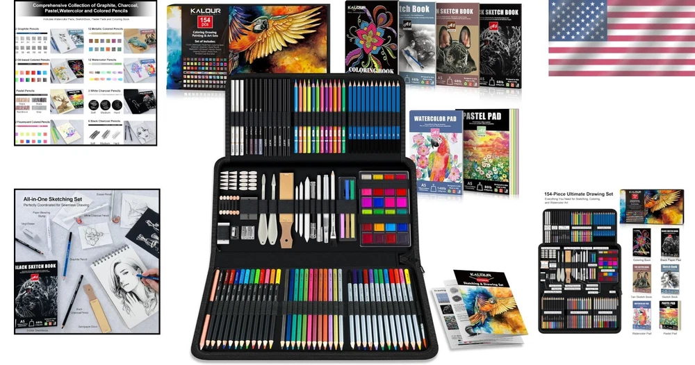 Complete 154-Piece Art Supply Set - Perfect for Beginners & Professional Artists ‹ › ‹ › ‹ › ‹ › ‹ › ‹ › ‹ › ‹ › ‹ › ‹ › Complete 154-Piece Art Supply Set - Perfect for Beginners & Professional Artists Comprehensive Art Set: This extensive art set is designed to cater to all your creative needs with 154 high-quality components. Experience an impressive selection of materials that ensure you have everything necessary to create detailed and vibrant artwork. 12 Graphite Pencils 12 Fluorescent Colored Pencils 4 Pastel Pencils 3 White Charcoal Pencils 12 Watercolor Pencils 12 Oil-Based Colored Pencils 6 Pastel Sticks 6 Black Charcoal Pencils 24 Watercolor Cakes 12 Metallic Colored Pencils Essential Art Tools and Accessories: The set comes with a variety of useful tools including: 1 Brush 1 Colorless Blender Pencil 1 Eraser Pencil 1 Watercolor Brush Pen 1 White Gel Pen 2 Sketch Wipe Scrapers Sandpaper Block 3 Paper Blending Stumps 1 Pencil Extender 20 Sponge Replacement Heads 1 Kneaded Eraser 1 Plastic Sharpener 1 Double-Hole Sharpener 6 Eyeshadow Applicators Includes Multiple Sketch and Art Pads: The set features: Sketch Book Watercolor Pad Black Paper Pad Tan Sketch Book Pastel Pad It also includes a drawing tutorial and a coloring book, providing diverse surfaces for your creative projects and helpful guidance to enhance your skills. Ideal for All Skill Levels: Whether you're a seasoned artist or just embarking on your creative journey, this art set adapts to your needs. Perfect for home use, classroom settings, or as an exquisite gift for art enthusiasts. Why Choose Our 154-Piece Art Supply Set? Unleash your artistic potential with this comprehensive kit designed for exploration and expression. The portable and stylish carrying case keeps all your supplies organized, making it easy to unleash creativity wherever inspiration strikes. Elevate your artistic journey and experiment across various mediums. Indulge in your artistry and watch your creations come to life with every brushstroke, color, and technique! Shipping Free & Fast Shipping - We offer free shipping to most of the USA with a normal delivery time of 3-7 days. However, due to the current situation, additional delivery time (up to 3 weeks) may be required for some items. Alternative Carriers - We may use alternative carriers (e.g. USPS, FedEx, UPS, etc.) to ensure your package arrives safely and on time. Due to the use of multiple carriers, we are unable to provide a tracking number automatically. Handling Time - Orders are processed and shipped within 1-2 business days of receiving cleared payment. Shipping Restrictions - Shipping to Alaska, Hawaii, Puerto Rico, Guam, and other US territories may incur shipping charges or delivery restrictions. Please contact us before ordering, or your order can be refunded/cancelled. State Restrictions - There may be restrictions based on your state of purchase. For example, certain items may not be shipped to California due to state regulations. Contact for Tracking Updates - If you require tracking updates or have any concerns about the delivery of your order, please feel free to contact us, and we will be happy to assist you. Return Please see our eBay Return Policy. Thank you. Payment We accept all major credit cards, PayPal, and Apple Pay for your convenience. Your payment information is secure and encrypted to ensure a safe and seamless transaction. Please complete your payment within 3 days of purchase to avoid any delays in shipping. Feedback Your feedback is extremely important to us. We strive to provide the best products and customer service possible. If you are satisfied with your purchase, please take a moment to leave us a positive review. If you have any concerns or issues with your order, please contact us before leaving negative feedback. We are committed to resolving any problems and ensuring your satisfaction. Contact Us If you have any questions or concerns, please feel free to reach out to our customer support team. You can contact us through the eBay messaging system. We are available Monday to Friday, 9:00 am to 5:00 pm EST, and we will do our best to respond to your inquiry within 24 hours. Thank you for supporting our small family business! UPC: Not Set Model: Art Supplies Set MPN: Art_Supplies_Set Unit Quantity: 154 Color Style: Multicolor Type: Art Supplies Brand: Unbranded Product Line: Not Set Color: Multicolor Hardness: Not Set Lead Size: Not Set Country/Region of Manufacture: Not Set Unit Type: lb Handmade: Not Set