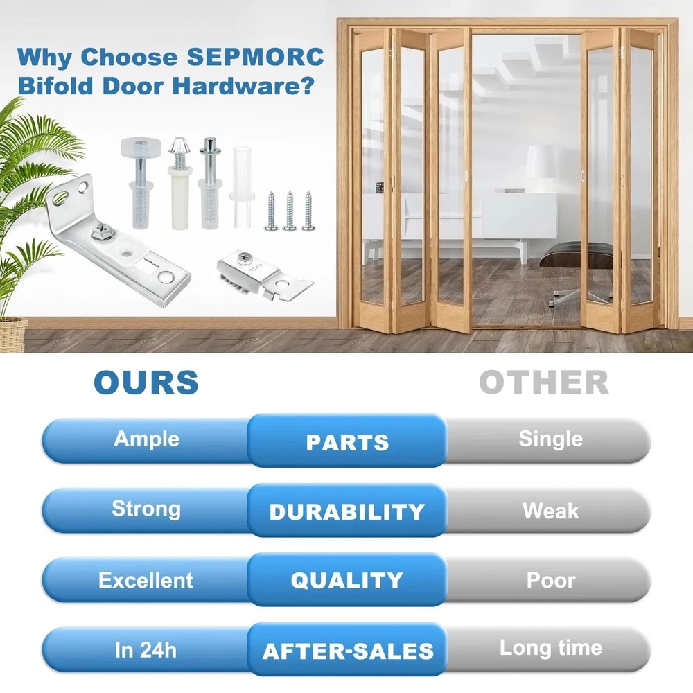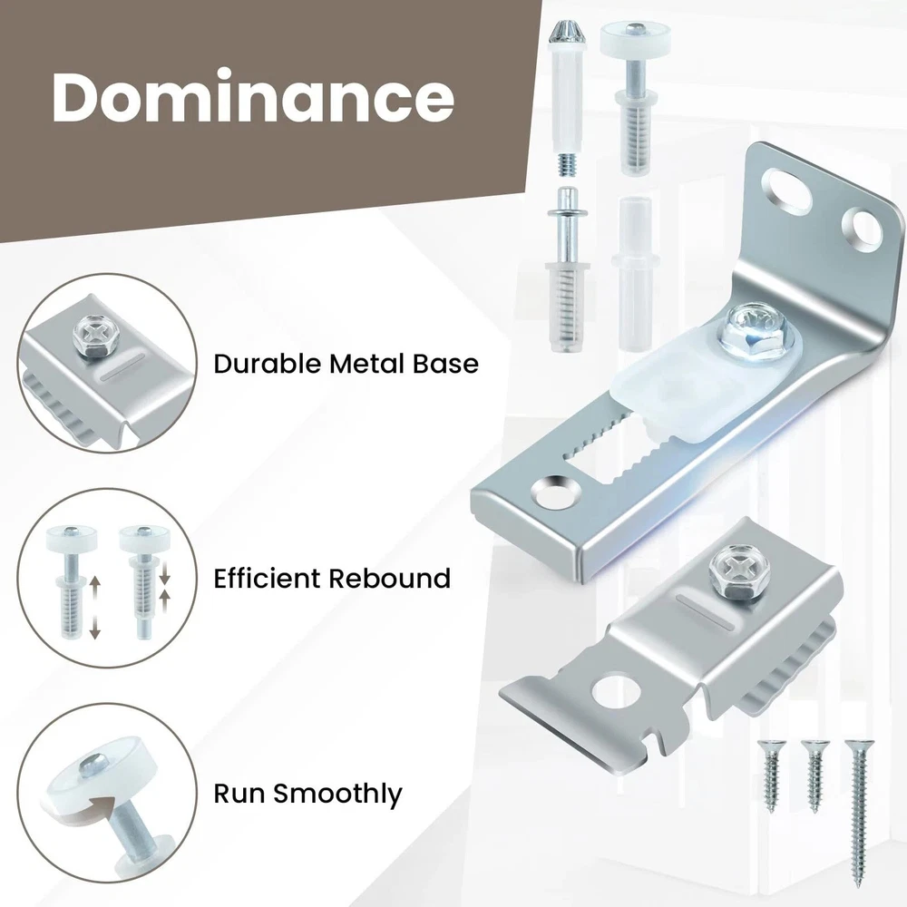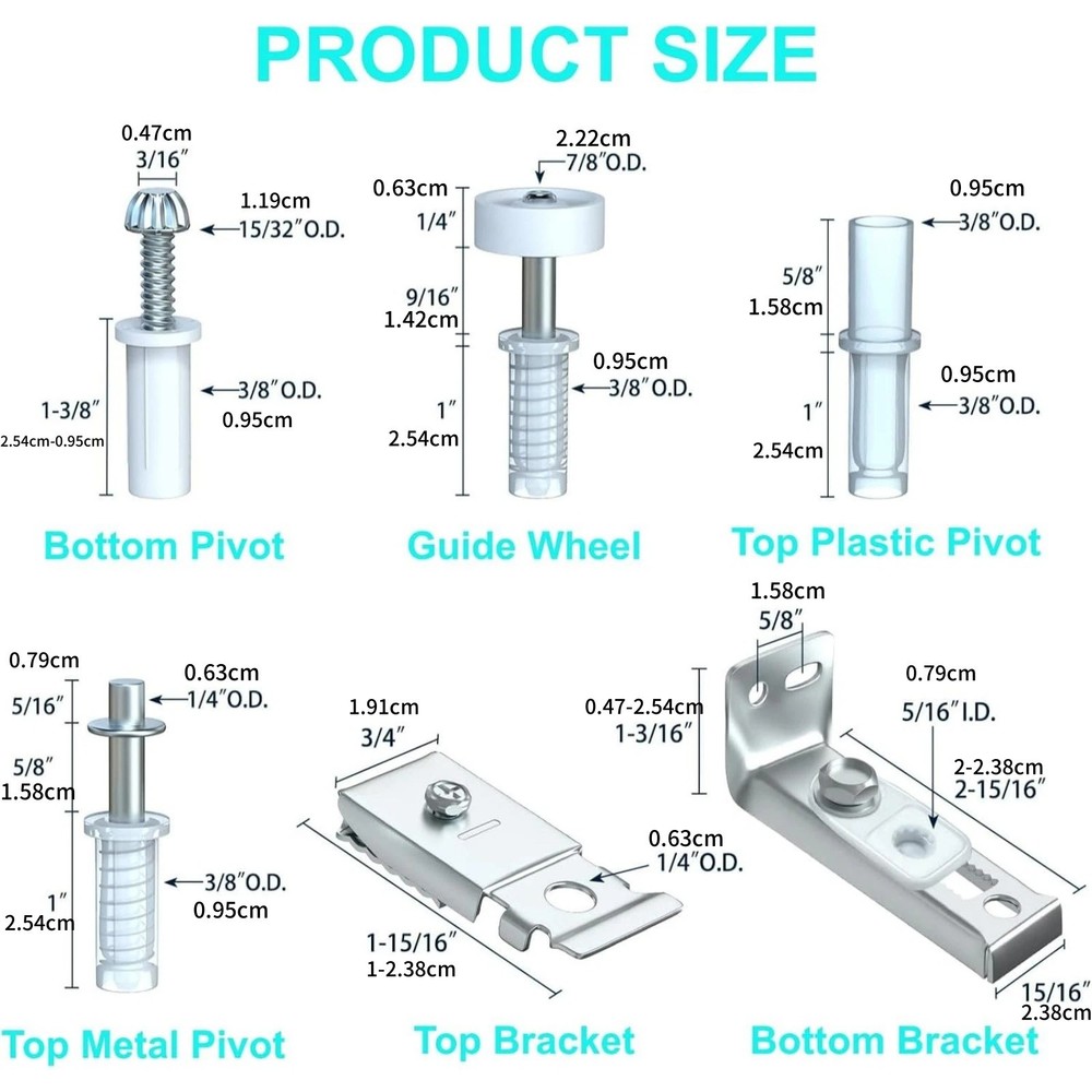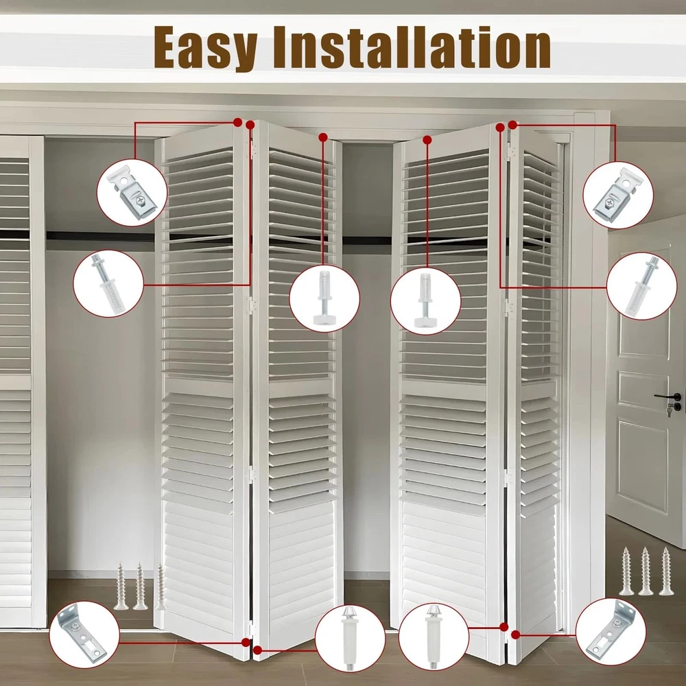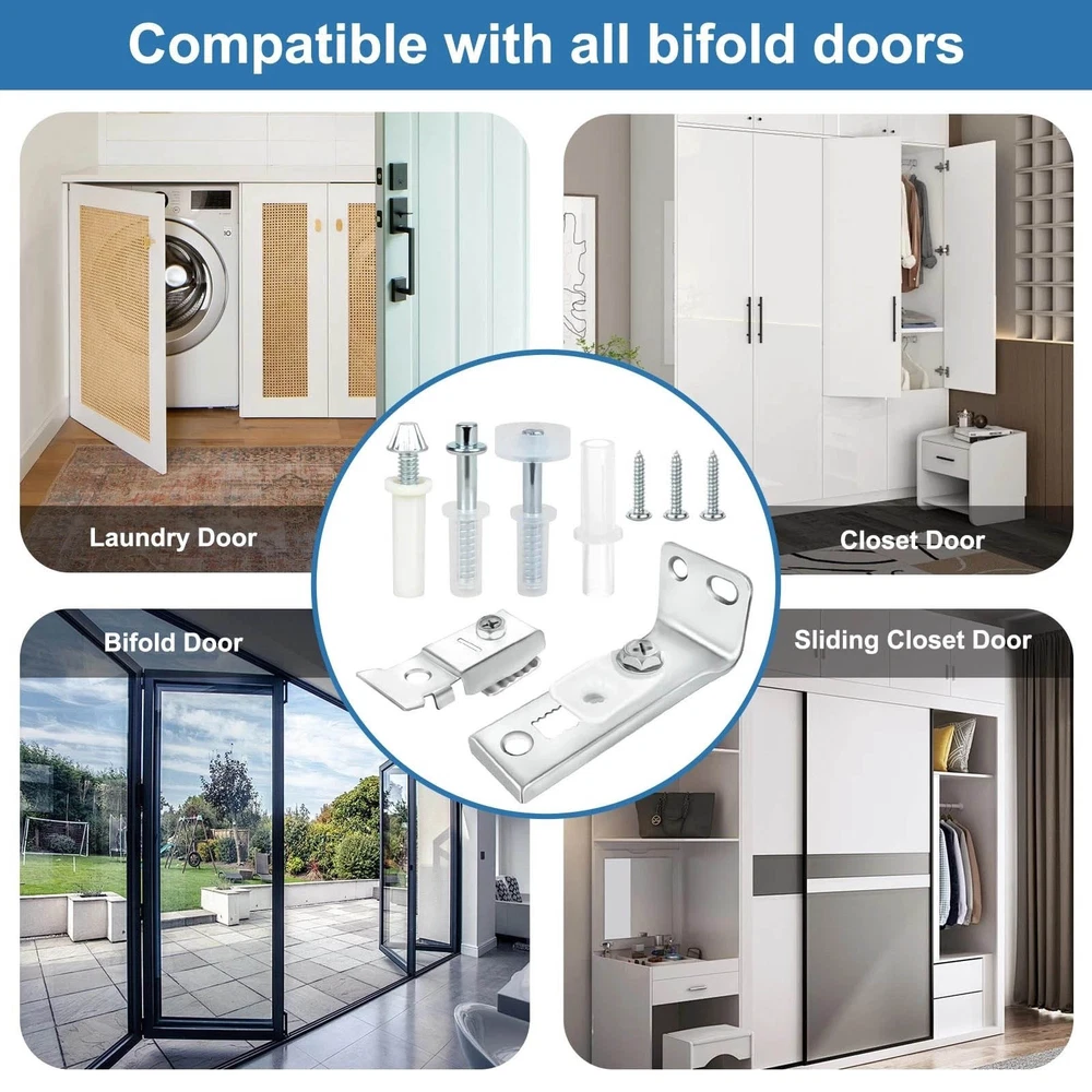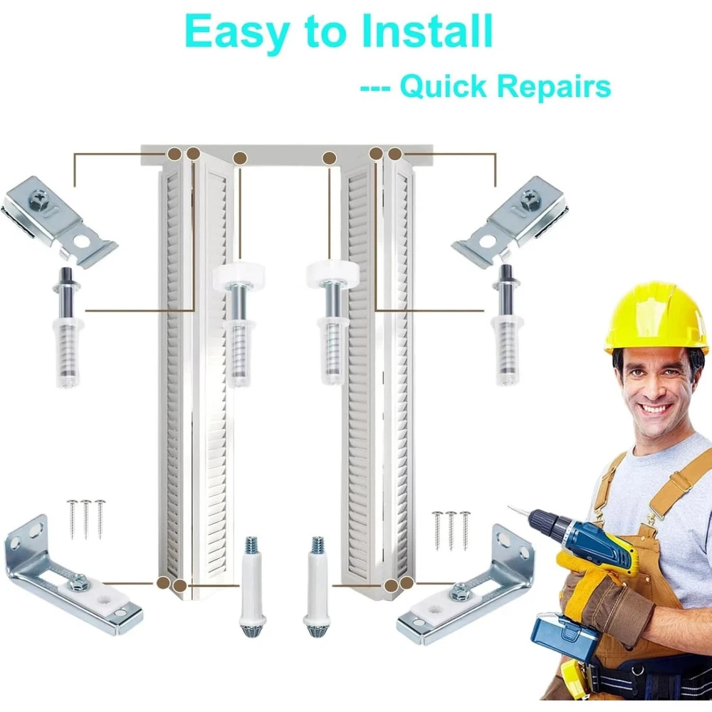Product Description Feature: Premium Repair Kit: The bi-fold closet door repair kit is crafted with high - quality Iron and plastic components. Tailored for doors 1 inch to 1-3/8 inch thick , it's a reliable solution for your door repair needs. Restored Performance: Replace missing or damaged bifold door hardware with these top - notch replacement components. Restore your bi - fold closet door system to its optimal performance effortlessly. This kit caters to one side set of doors. Comprehensive Inclusion: Packed with essential parts like one jamb and floor mount pivot bracket, a bottom pivot, a 7/8 inch diameter spring - loaded top roller guide, and multiple types of spring - loaded closet top pivots along with a top pivot bracket. Wide Compatibility: Compatible with bi-fold doors from well - known manufacturers such as for Acme, for Alliance, for Kenna for Frame and numerous others. The pivot guide fits a 1 inch wide track with a 7/8 inch inner track size. Specifications: Color: Silver Included Components: bottom bracket, bottom pivot, fasteners, roller guide, top pivots Suitable for: Folding door Packaging Includes: 1 x Bifold Door Hardware Repair Kit Shipping Contact Us We will send the itmes to you in 24 hours after we received the payment. Thanks for your support. If you want to buy more, please contact to us, we will give you a big discount. If you have any question about the items or us, please contact to us, we will solve it for you. Shipping We will send the itmes to you in 24 hours after we received the payment. Thanks for your support. Contact Us If you want to buy more, please contact to us, we will give you a big discount. If you have any question about the items or us, please contact to us, we will solve it for you. powered by