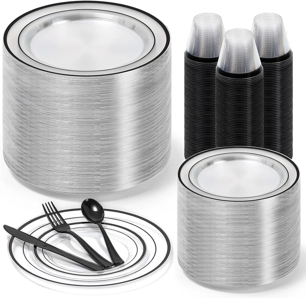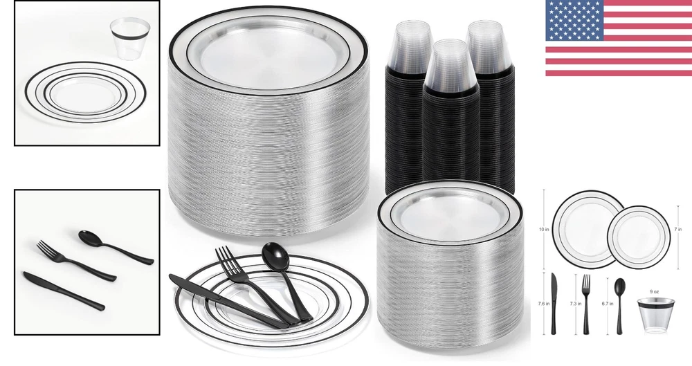Complete Black Disposable Dinnerware Set for 100 - 600 Pieces for Every Occasion ‹ › ‹ › ‹ › ‹ › ‹ › ‹ › ‹ › ‹ › ‹ › Complete Black Disposable Dinnerware Set for 100 - 600 Pieces - High-Quality Material: Made of heavy-weight, premium-quality material, non-toxic, BPA-free, and food-safe. Resistant to cracking or breaking. - Value Package: Includes plates in two sizes, dinner knives, spoons, forks, and cups, each with 100 pieces. Convenient disposability. - Elegant Black Appearance: Transparent dinnerware with black rims and all-black cutlery for a sophisticated and modern aesthetic. - Versatile Use: Perfect for birthday parties, anniversaries, weddings, or corporate events. Blends seamlessly with any theme or decor. - Customer Satisfaction: Hassle-free dining experience guaranteed. High-quality, disposable dinnerware to make your event unforgettable. Why Choose Our Disposable Dinnerware Set? Elevate your event with our Complete Black Disposable Dinnerware Set. Made of premium-quality material, this set is not only stylish but also durable and sturdy. With 600 pieces in total and an elegant black appearance, you can create a sophisticated and modern ambiance for any occasion. From birthday parties to weddings, our versatile dinnerware set is the perfect choice for all your event needs. Enjoy the convenience of disposability without compromising on quality. Let us take care of the details while you focus on creating unforgettable memories. Shipping Free & Fast Shipping - We offer free shipping to most of the USA with a normal delivery time of 3-7 days. However, due to the current situation, additional delivery time (up to 3 weeks) may be required for some items. Alternative Carriers - We may use alternative carriers (e.g. USPS, FedEx, UPS, etc.) to ensure your package arrives safely and on time. Due to the use of multiple carriers, we are unable to provide a tracking number automatically. Handling Time - Orders are processed and shipped within 1-2 business days of receiving cleared payment. Shipping Restrictions - Shipping to Alaska, Hawaii, Puerto Rico, Guam, and other US territories may incur shipping charges or delivery restrictions. Please contact us before ordering, or your order can be refunded/cancelled. State Restrictions - There may be restrictions based on your state of purchase. For example, certain items may not be shipped to California due to state regulations. Contact for Tracking Updates - If you require tracking updates or have any concerns about the delivery of your order, please feel free to contact us, and we will be happy to assist you. Return 30-Day Hassle-Free Returns - We want you to be completely satisfied with your purchase. If you are not, you can return the item within 30 days of receiving it for a full refund or exchange. Easy Return Process - To start a return, simply contact us and we will provide you with a prepaid return shipping label and detailed instructions. Restocking Fee - There are no restocking fees for returns. However, the buyer is responsible for return shipping costs if the return is not due to a seller's error. Refund Processing Time - Refunds will be processed within 5 business days of receiving the returned item in its original condition. Payment We accept all major credit cards, PayPal, and Apple Pay for your convenience. Your payment information is secure and encrypted to ensure a safe and seamless transaction. Please complete your payment within 3 days of purchase to avoid any delays in shipping. Feedback Your feedback is extremely important to us. We strive to provide the best products and customer service possible. If you are satisfied with your purchase, please take a moment to leave us a positive review. If you have any concerns or issues with your order, please contact us before leaving negative feedback. We are committed to resolving any problems and ensuring your satisfaction. Contact Us If you have any questions or concerns, please feel free to reach out to our customer support team. You can contact us through the eBay messaging system. We are available Monday to Friday, 9:00 am to 5:00 pm EST, and we will do our best to respond to your inquiry within 24 hours. Thank you for supporting our small family business! Unit Quantity: 600 Material: Plastic,heavy-weight,premium-quality,non-toxic,BPA-free,food-safe,crack-resistant,break-resistant Set Includes: Dinner Plate,Plastic Salad Plates,Black Silverware Set,Plastic Cups,Dinner Knives,Spoons,Forks Theme: Black Dinnerware Set Occasion: Birthday,Adult,Wedding,Corporate Events,Anniversaries Features: Disposable,Elegant Design,Versatile Use,High-Quality,Durable,Sturdy,Convenient,Sophisticated,Modern Aesthetic Character: Not Set Brand: Unbranded Type: Dinner Set Color: Black Number of Place Settings: More Than 12 Number of Compartments: 1 Shape: Round Pattern: Black MPN: Not Set Style: Modern Character Family: Not Set Finish: Glossy Year Manufactured: Not Set Number of Items in Set: Seven-Piece Plate Diameter: Not Set Manufacturer Warranty: Not Set Model: Not Set Original/Reproduction: Not Set
