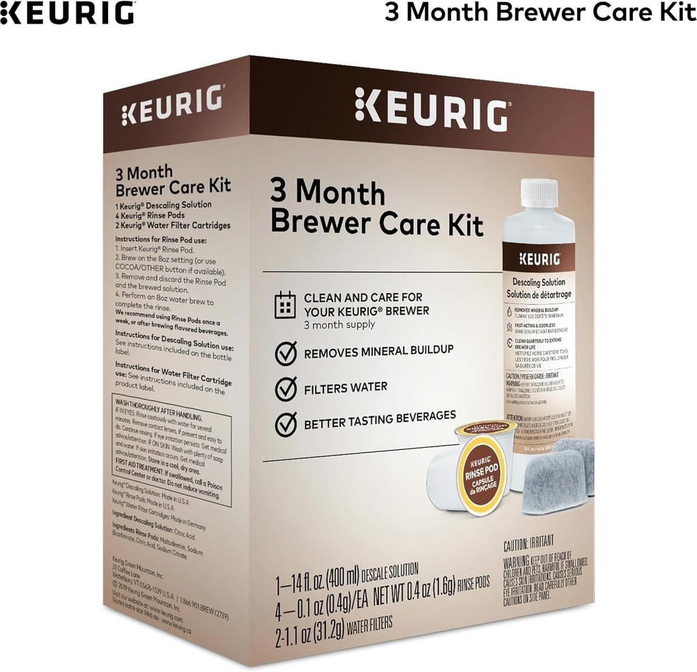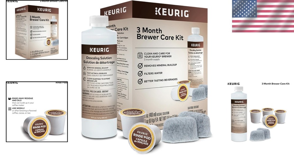 Complete Brewer Maintenance Kit with Descaling Solution & Water Filters, 7 Count ‹ › ‹ › ‹ › ‹ › ‹ › ‹ › ‹ › ‹ › ‹ › ‹ › ‹ › Complete Brewer Maintenance Kit Transform your coffee experience with our Complete Brewer Maintenance Kit . Comprising 7 essential items, this kit ensures your coffee maker operates at its best, preserving the rich flavor of your favorite brews. What’s Included: 4 Rinse Pods 1 Descaling Solution 2 Water Filter Cartridge Refills Key Features: Rinse Pods: Effectively reduce flavor carry-over between brews, enhancing every cup. Quick Cleaning: The quickest way to clean your K-Cup pod holder, rinsing away residue and oils that can accumulate. Easy to Use: Integrate seamlessly into your brewing process just like a regular K-Cup pod. Safe and Effective: Gentle, odorless formula that cleans without harming your brewer. Descaling Solution: Monthly use removes mineral deposits, preserving the integrity of your machine and improving coffee taste. Water Filter Cartridges: Filter chlorine, calcium, and other impurities to elevate the taste and quality of your beverages. Easy Five-Minute Setup: Soak, rinse, insert, and enjoy better-tasting beverages in just 5 minutes! Benefits: Ensures prolonged lifespan for your coffee maker. Delivers unparalleled taste and quality in every brew. Compatible with all coffee makers, easy maintenance solution. Encourages a regular cleaning routine for the best brewing performance. Why Choose Our Maintenance Kit? Your coffee deserves the utmost care. Our Complete Brewer Maintenance Kit consolidates everything you need into one comprehensive package, allowing you to experience the full flavor of your coffee while extending the lifespan of your brewer. Say goodbye to dull-tasting coffee and hello to a rich, robust experience that every cup can deliver. Don’t compromise on your coffee—elevate your daily ritual with our Complete Brewer Maintenance Kit today! Shipping Free & Fast Shipping - We offer free shipping to most of the USA with a normal delivery time of 3-7 days. However, due to the current situation, additional delivery time (up to 3 weeks) may be required for some items. Alternative Carriers - We may use alternative carriers (e.g. USPS, FedEx, UPS, etc.) to ensure your package arrives safely and on time. Due to the use of multiple carriers, we are unable to provide a tracking number automatically. Handling Time - Orders are processed and shipped within 1-2 business days of receiving cleared payment. Shipping Restrictions - Shipping to Alaska, Hawaii, Puerto Rico, Guam, and other US territories may incur shipping charges or delivery restrictions. Please contact us before ordering, or your order can be refunded/cancelled. State Restrictions - There may be restrictions based on your state of purchase. For example, certain items may not be shipped to California due to state regulations. Contact for Tracking Updates - If you require tracking updates or have any concerns about the delivery of your order, please feel free to contact us, and we will be happy to assist you. Return 30-Day Hassle-Free Returns - We want you to be completely satisfied with your purchase. If you are not, you can return the item within 30 days of receiving it for a full refund or exchange. Easy Return Process - To start a return, simply contact us and we will provide you with a prepaid return shipping label and detailed instructions. Restocking Fee - There are no restocking fees for returns. However, the buyer is responsible for return shipping costs if the return is not due to a seller's error. Refund Processing Time - Refunds will be processed within 5 business days of receiving the returned item in its condition. Payment We accept all major credit cards, PayPal, and Apple Pay for your convenience. Your payment information is secure and encrypted to ensure a safe and seamless transaction. Please complete your payment within 3 days of purchase to avoid any delays in shipping. Feedback Your feedback is extremely important to us. We strive to provide the best products and customer service possible. If you are satisfied with your purchase, please take a moment to leave us a positive review. If you have any concerns or issues with your order, please contact us before leaving negative feedback. We are committed to resolving any problems and ensuring your satisfaction. Contact Us If you have any questions or concerns, please feel free to out to our customer support team. You can contact us through the eBay messaging system. We are available Monday to Friday, 9:00 am to 5:00 pm EST, and we will do our best to respond to your inquiry within 24 hours. Buy it now and enjoy a pleasant shopping experience! Unit Quantity: 1.0 count Compatible Brand: Keurig Maintenance Kit Compatible Model: Keurig Classic/1.0 & 2.0 Suitable For: Pod Coffee Machine,2.0 K-Cup Coffee Makers,Keurig Coffee Makers Features: Easy to Use,Cleans K-Cup pod holder,Rinses away residue and oils,Gentle and odorless formula,Removes mineral deposits,Improves coffee taste,Filters chlorine and impurities Type: Cleaning Set Number in Pack: 1 Power Source: None Item Height: 2.8 in Item Depth: 6.2 in Capacity: 400 ml Item Weight: 1.32 lbs Color: Multicolor Material: Pod Finish: None Power: None Unit Type: Unit