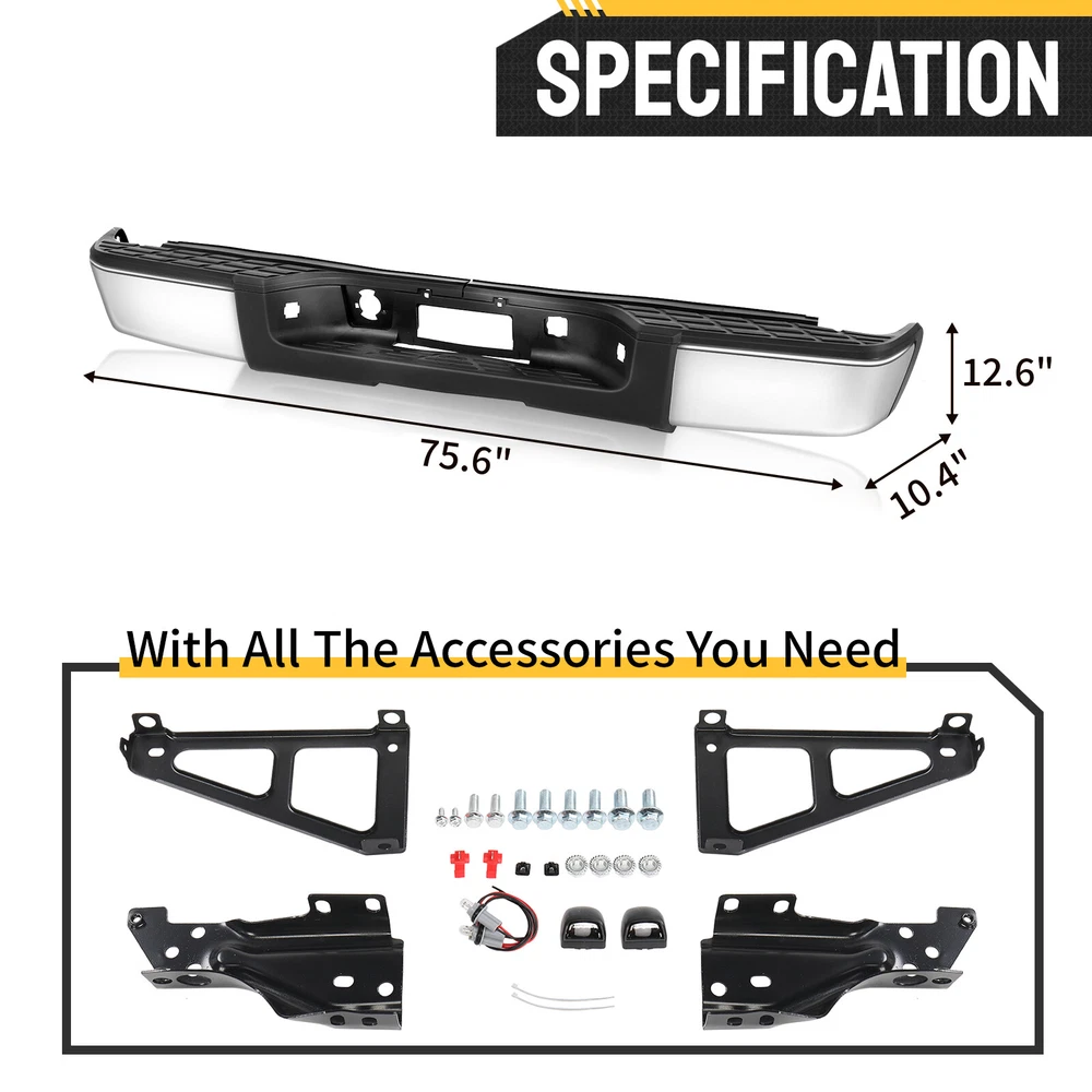 listing template VISIT OUR STORE SIGH UP FOR EMAIL Complete- Chrome Rear Bumper for 2007-2013 Chevy Silverado GMC Sierra 1500 Truck Features: 1. Crashworthiness 2. Rust Prevention Specifications: 1. Material: Steel 2. Color: Sliver 3. Dimensions: (78.15 x 13.39 x 11.42)" / (198.5 x 34 x 29)cm(L x W x H) Package Includes: 1 x Pickup Rear Bumper Shipping Policy 1. Ship worldwide from New Jersey by reliable shipping companies -- USPS, UPS, FEDEX, DHL, etc., and only to VERIFIED PAYPAL ADDRESS. Transport Delivery ETA. Package handling only takes 1 business day at our warehouse, so please make sure entering correct payment and shipping information before checking out. Once your payment is completed, we are not going to accept any more changes to your order. 2. International Buyers – Please Note: a. Import duties, taxes and charges are not included in the item price or shipping charges. These charges are the buyer's responsibility. b. Please check with your country's customs office to determine what these additional costs will be prior to bidding/buying. 3. Please check your shipping address carefully before checkout, it can't be changed if order completed. 4. Orders placed on weekend will be shipped within 2 days.Notification of shipment with tracking number will be sent to buyers. 5. Standard shipping: 2-7 business days Expedited Shipping: 2-3 business days One-day Shipping: 1 business day International shipping: Varies 6.Ship within 1 business day once payment completed. Notification of shipment with tracking No. will be sent to buyer. 7.We offer discounts for combine shipping. Please contact us first if you need combine shipping, and an invoice with discount will be sent to you. 8.Please allow 5 business days for delivery to US destinations on any eBay orders and 14 business days for delivery to any International destinations. We highly recommend our buyer choose priority/expess mail for international delivery which is much more stable. Return Policies 1. Refunds given only if item DOA and cannot be replaced via PAYPAL . If so, Please contact us with 5 days since you receive the item and and return to us within 30 days from the delivery date for exchange or refund. 2. If you need return, please contact our customer service representative, let us know the detailed problem and send us some pictures for confirmation. Payment Payment should be sent within 8(EIGHT) days of auction closing. Feedback If you are dissatisfied for any reason, please do not be quick to leave negative/neutral feedback. We work hard to make sure EVERY CUSTOMER 100% SATISFIED and resolve any problem for you. Work Time Work Time: Monday to Saturday About Us | Newsletter| Feedback| Contact Us Copyright © 2022 LikeDeal. All rights reserved. 无标题文档 Complete- Chrome Rear Bumper for 2007-2013 Chevy Silverado GMC Sierra 1500 Truck Features: 1. Crashworthiness 2. Rust Prevention Specifications: 1. Material: Steel 2. Color: Sliver 3. Dimensions: (78.15 x 13.39 x 11.42)" / (198.5 x 34 x 29)cm(L x W x H) Package Includes: 1 x Pickup Rear Bumper Shipping + 1. Ship worldwide from New Jersey by reliable shipping companies -- USPS, UPS, FEDEX, DHL, etc., and only to VERIFIED PAYPAL ADDRESS. Transport Delivery ETA. Package handling only takes 1 business day at our warehouse, so please make sure entering correct payment and shipping information before checking out. Once your payment is completed, we are not going to accept any more changes to your order. 2. International Buyers – Please Note: a. Import duties, taxes and charges are not included in the item price or shipping charges. These charges are the buyer's responsibility. b. Please check with your country's customs office to determine what these additional costs will be prior to bidding/buying. 3. Please check your shipping address carefully before checkout, it can't be changed if order completed. 4. Orders placed on weekend will be shipped within 2 days.Notification of shipment with tracking number will be sent to buyers. 5. Standard shipping: 2-7 business days Expedited Shipping: 2-3 business days One-day Shipping: 1 business day International shipping: Varies 6.Ship within 1 business day once payment completed. Notification of shipment with tracking No. will be sent to buyer. 7.We offer discounts for combine shipping. Please contact us first if you need combine shipping, and an invoice with discount will be sent to you. 8.Please allow 5 business days for delivery to US destinations on any eBay orders and 14 business days for delivery to any International destinations. We highly recommend our buyer choose priority/expess mail for international delivery which is much more stable. Payment + Payment should be sent within 8(EIGHT) days of auction closing. Returns + 1. Refunds given only if item DOA and cannot be replaced via PAYPAL . If so, Please contact us with 5 days since you receive the item and and return to us within 30 days from the delivery date for exchange or refund. 2. If you need return, please contact our customer service representative, let us know the detailed problem and send us some pictures for confirmation. Feedback + If you are dissatisfied for any reason, please donot be quick to leave negative/neutral feedback. We work hard to make sure EVERY CUSTOMER 100% SATISFIED and resolve any problem for you and always leave positive feedback to all our customers. Contact us + Work Time:Monday to Saturday Reply + All replies will be sent to your email box, if you don't get response within 24 hours (Sat. & Sun. excluded) please check your eBay My Messages in case that our emails will be filtered automatically by your settings. Copyright © 2022 LikeDeal. All rights reserved.