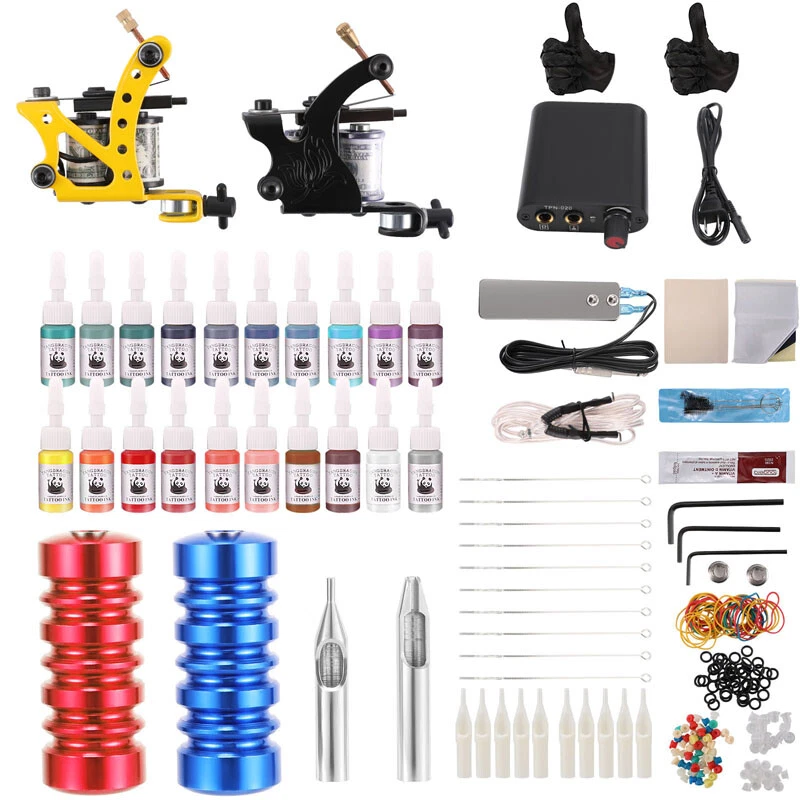 Complete Tattoo Kit 4 Machine Guns 20 Inks Power Supply Foot Pedal Needles 20 Color Dual-machine Tattoo Machine Set Feature: 1. The tattoo machine is made of copper material, quiet and stable, durable. 2. The tattoo grip is made of aluminum alloy, which is ergonomically designed and feels stable, making it easier to hold and not easy to slip off, the tattoo machine makes the tattoo process more comfortable and precise. 3. Equipped with a tattoo power supply, mini size, easy to carry, strong compatibility, suitable for various tattoo machines, and provides 20 kinds of rich color materials, non-toxic and harmless, easy to color, can be used to DIY into your favorite patterns. 4. This tattoo machine set is suitable for beginners, tattoo lovers, tattoo artists. Specification: Tattoo machine material: copper Straight handle material: aluminum alloy Power input voltage: AC 90V-265V Pigment height: 6.8cm/2.7inch Brush length: 9.7cm/3.8inch Power supply size: 9.5 (H) * 7 (L) * 2.5 (W) cm/3.7*2.8*0.98inch Disposable needles height: 5cm/1.97inch Stainless needles height: 5cm/1.97inch Tattoo needle length: 14.2cm/5.6inch White tattoo practice skin size: 19.5 (L)*14.7 (W) cm/7.7*5.8inch Transfer paper size: 29.5 (L)*20.6 (W) cm/11.6*8inch Tattoo grip size: 5 (H)*2.7 (W) cm/1.97*1.1inch Packing size: 23*13*16cm/9*5*6.3inch Package includes: 2pcs x Coil Tattoo Machine 20pcs x Tattoo Inks 1 x Mini Power Supply 1 x Power Cable 2 x Tattoo Grip (red/blue) 1 pair x Disposable Glove 1 x Transparent Hook Wire 1 x Black Foot Pedal 10pcs x Disposable Needles 2pcs x Stainless Steel Needles 10 x Tattoo Needles 1 x White Tattoo Practice Skin 1 x Transfer Paper 1 set x of Tattoo Accessories (47pc*big rubber ring+15pc*big transparent cover+15pc*small transparent cover+56pc*color small cover+49pc black rubber ring) 1 set x Brush 1 x After Cream 1 x Packing Box Payment Delivery details About us Contact us Payment Please send the payment soon, then we can ship out your order soon. Delivery details Shipped by USPS from NJ, US About us muchl_95 is a online wholesale seller for all kinds of electronic accessories. We carry a wealth of consumer electronic accessories, such as computer peripherals, laptop accessories, game consoles accessories, cell phones accessories, digital cameras accessories and other electronic. Contact us Any question, welcome to contact us.