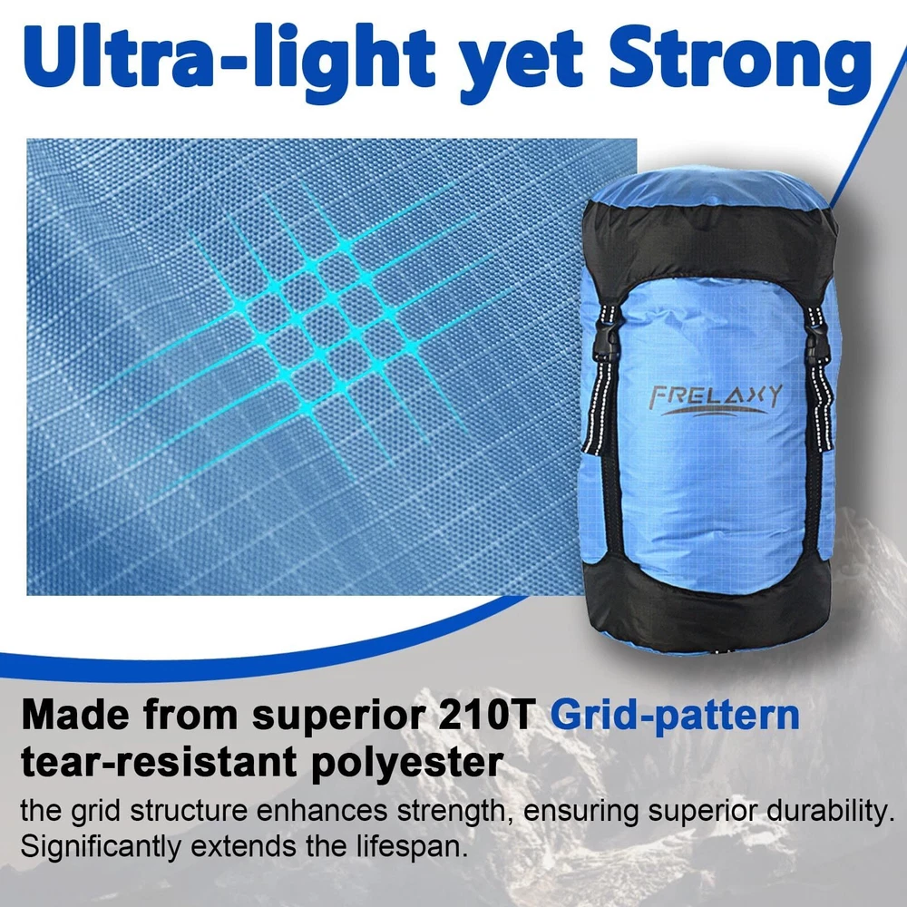 Compression Stuff Sack is an incredibly simple and practical solution to space-saving, they will give you more space to pack what you need and give you an unprecedented portable experience. ✔Made of high-quality 210T Tear Resistant Nylon Material, Effectively balances LIGHTWEIGHT (only 80g,90g,120g,140g, Size: S~XL) and DURABILITY , features a water-resistant coating to keep your valuables dry. ✔Easy Operation : Just put your items inside, close the lid, and adjust the straps. you'll be amazed at just how much you can squeeze into the sack and just how much space you can save. ✔Keep your gear organized : Available in 4 Sizes (8L/ 15L/ 25L/ 35L) for all your needs, ideal for internal pack organization, packing up whatever you feel like belongs in a bag that can be compressed, eg clothes, blankets, sleeping bags, pillows, hats, gloves. Professional Features : 1. Comes with 4 adjustable straps for even compression (2 Strong compression straps & 2 Quick-Release Buckle Straps) 2. Reflective trim on the straps, it helps you spot & retrieves your stuff sack in the dark. 3. Pull handle on the bottom for easy carry. Size Chart: S: 8L (7x13 Inches) M: 15L (8x16 Inches) L: 25L (10x19 Inches) XL: 35L (11x20 Inches) (Please check more detail in the size chart in the 4th picture.) FREE Exchange size if not match without RETURNING & WORRY-FREE 12-MONTH & SAVE 40% MORE SPACE: Compression Stuff Sack is an incredibly simple and practical solution to space-saving, they will give you more space to pack what you need and give you an unprecedented portable experience. Made of high-quality 210T Tear Resistant Polyester Material, Effectively balances LIGHTWEIGHT (only 80g,90g,120g,140g,160g Size: S~XXL) and DURABILITY, features a water-resistant coating to keep your valuables dry. Considerate Design: 1. Comes with 4 adjustable straps for even compression (2 Strong compression straps & 2 Quick-Release Buckle Straps) 2. Pull handle on the bottom for easy carry. Keep Your Gear Organized: Available in multicolor and 5 Sizes (11L/ 18L/ 30L/ 45L/52L) for all your needs, ideal for internal pack organization, packing up whatever you feel like belongs in a bag that can be compressed, eg clothes, blanket, sleeping bag, tent, pillow, hat, gloves. ❤️ FREE Exchange size if not match WITHOUT RETURNING (Simply Go to Your Orders, Select Seller to get convenient exchange service ) & WORRY-FREE 12-MONTH