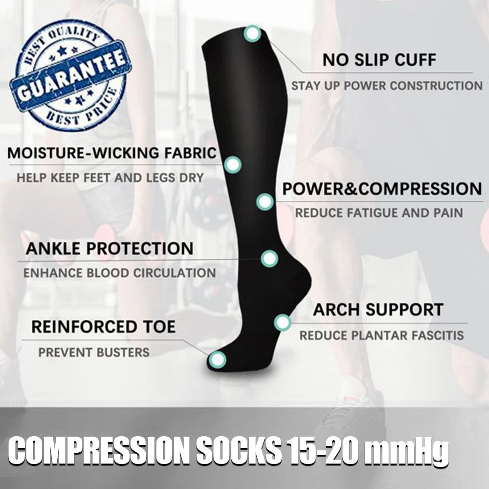 Opacity: Opaque Features: Arch Support, Breathable, Cushioned, Moisture Wicking, Non-Slip, Compression, Elastic, Pain Relief, Anti Fatigue, Promote Blood Circulation Number in Pack: 3 Pairs Compression: 15-20 mmHg Sock Length: Knee High Material: Nylon Occasion: Activewear, Business, Casual, Clubwear, Everyday, Glamour, Travel, Wedding, Workwear Department: Women Brand: SXY-GA® Style: Compression Compression Level: Mild Toe Style: Full Toe Character: Compression Socks for Men Women, Knee High Compression Socks, Medical Compression Stockings, Compression Socks for Pregnant, Suitable for Running, Sports Personalize: No Performance/Activity: Baseball, Basketball, Bodybuilding, CrossFit, Cross Training, Cycling, Dance, Football, Golf, Gym & Training, Hiking, Hunting, Riding, Running & Jogging, Skiing, Soccer, Tennis, Volleyball, Walking, Weightlifting, Yoga Season: All Seasons Type: Socks Theme: Compression Socks Pattern: Solid