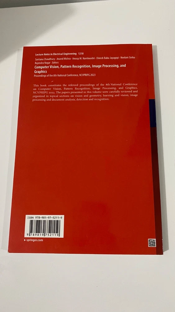 9819752116 ISBN-13 9789819752119 Title Computer Vision, Pattern Recognition, Image Processing, and Graphics Author Santanu Chaudhury, Anand Mishra, Anoop M. Namboodiri, Dinesh Babu Jayagopi, Neelam Sinha, Rajendra Nagar Format Paperback Year 2025 Pages 174 Edition 2024th Publisher Springer Verlag, Singapore Constitutes the refereed proceedings of NCVPRIPG 2023 Offers a reference guide for researchers and practitioners in academia and industry Presents research works in the field of computer vision, pattern recognition, image processing, and graphics