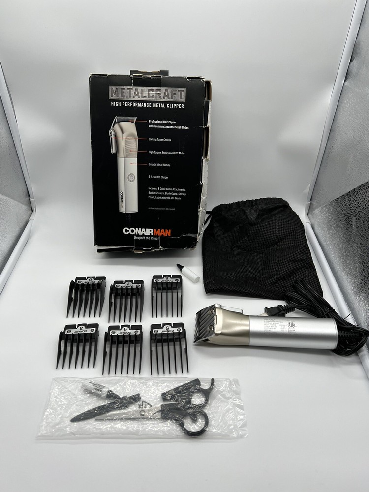 CONAIR Professional Hair Clippers High Performance Metal ConairMan Metalcraft. Used,Damaged blade,missing #1 Guards. Item: I6