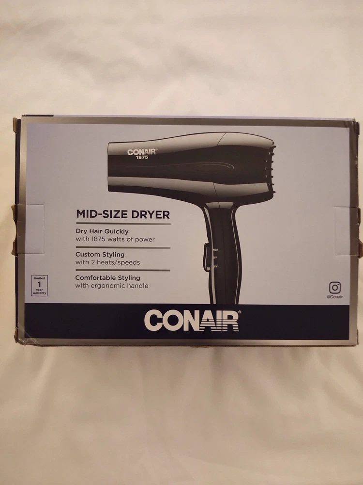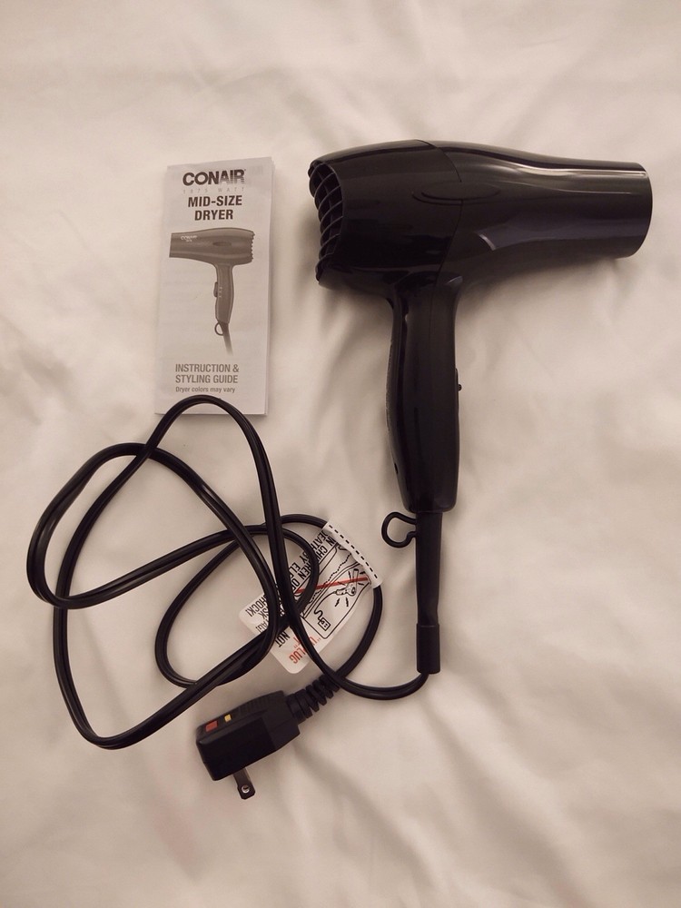 Conair 1875 Mid-Sized Hair Dryer Black Ergonomic Handle 2 Speed 2 Heat Setting Used in excellent condition Tested Works