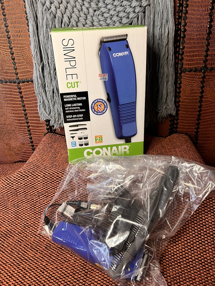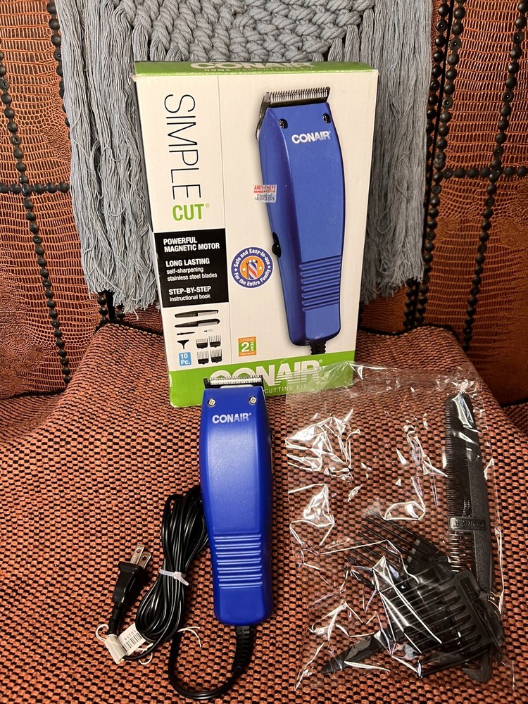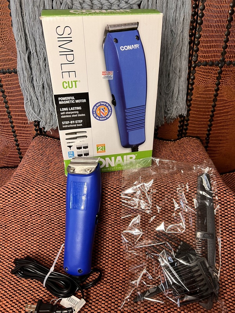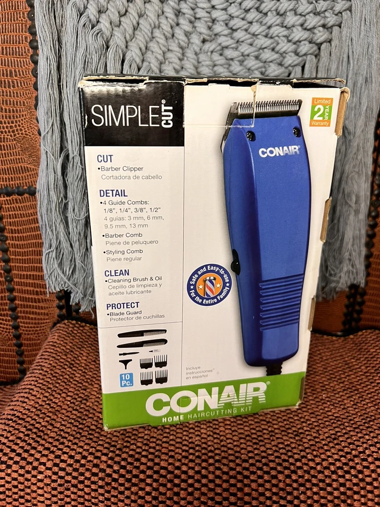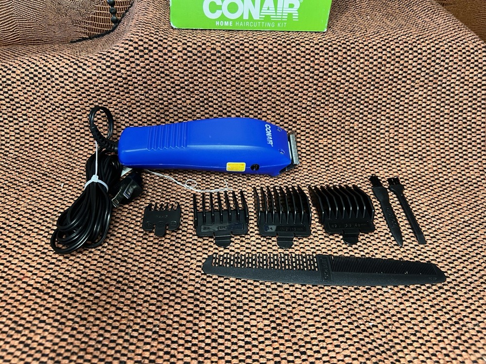 BASIC CUT CONAIR HOME HAIRCUTTING KIT~10 PIECES WILL HIP QUICK PRIORITY~ SAFE & EASY TO USE FOR THE ENTIRE FAMILY~THANKS FOR LOOKING ~WILL SHIP QUICK PRIORITY. CONAIR HOME PRODUCT! INSTRUCTIONS INCLUDEDBARBER CLIPPER 4 GUIDES 1/8", 1/4", 3/8 " , 1/2" BARBRR COMB STYLING COMB CLEANING BRUSH & OIL PROTECT BLADE GUARD 10 PIECES SAFE & EASY TO USE FOR THE ENTIRE FAMILY